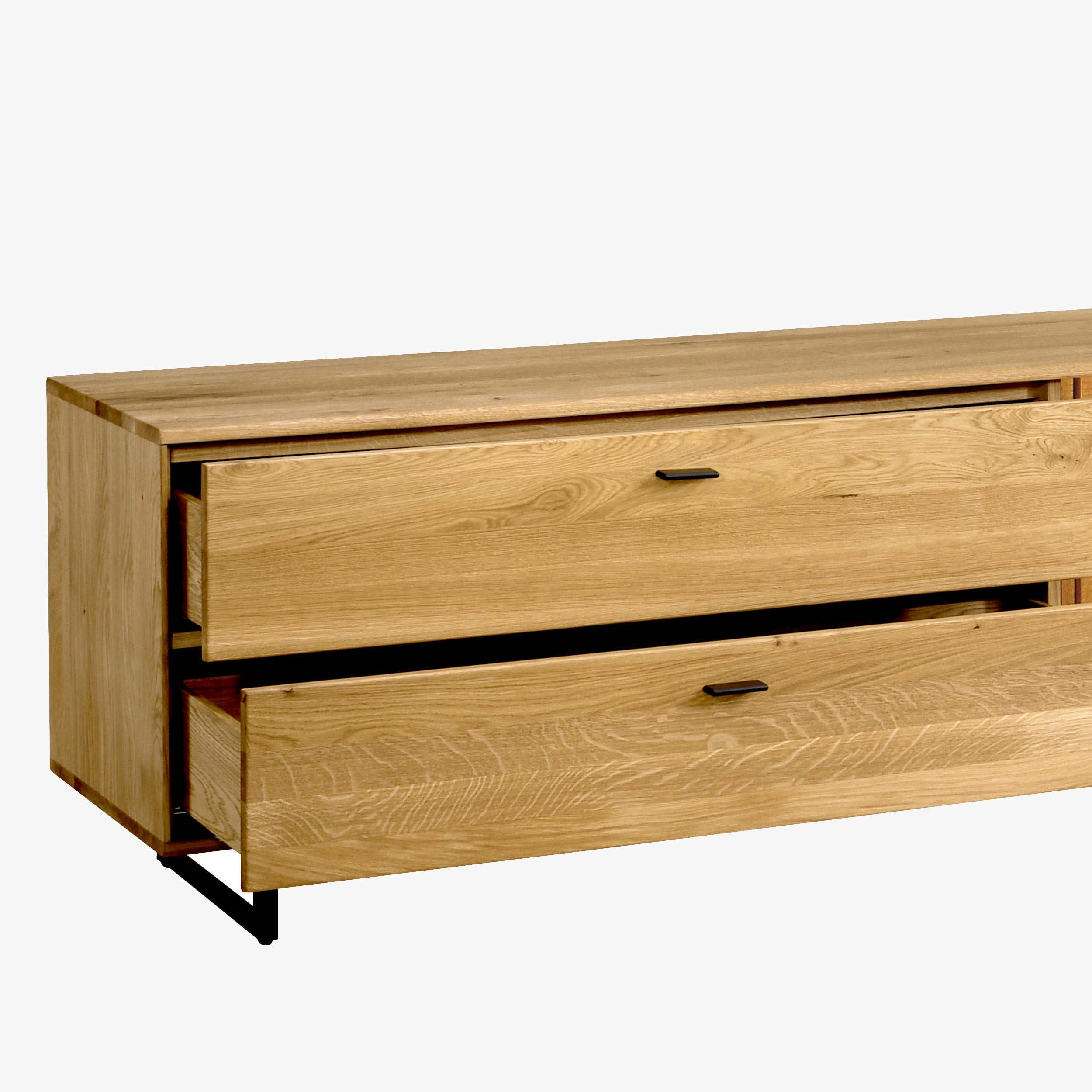 Moderne TV-Kommode Eichenholz mit schwarzen Metallbeinen