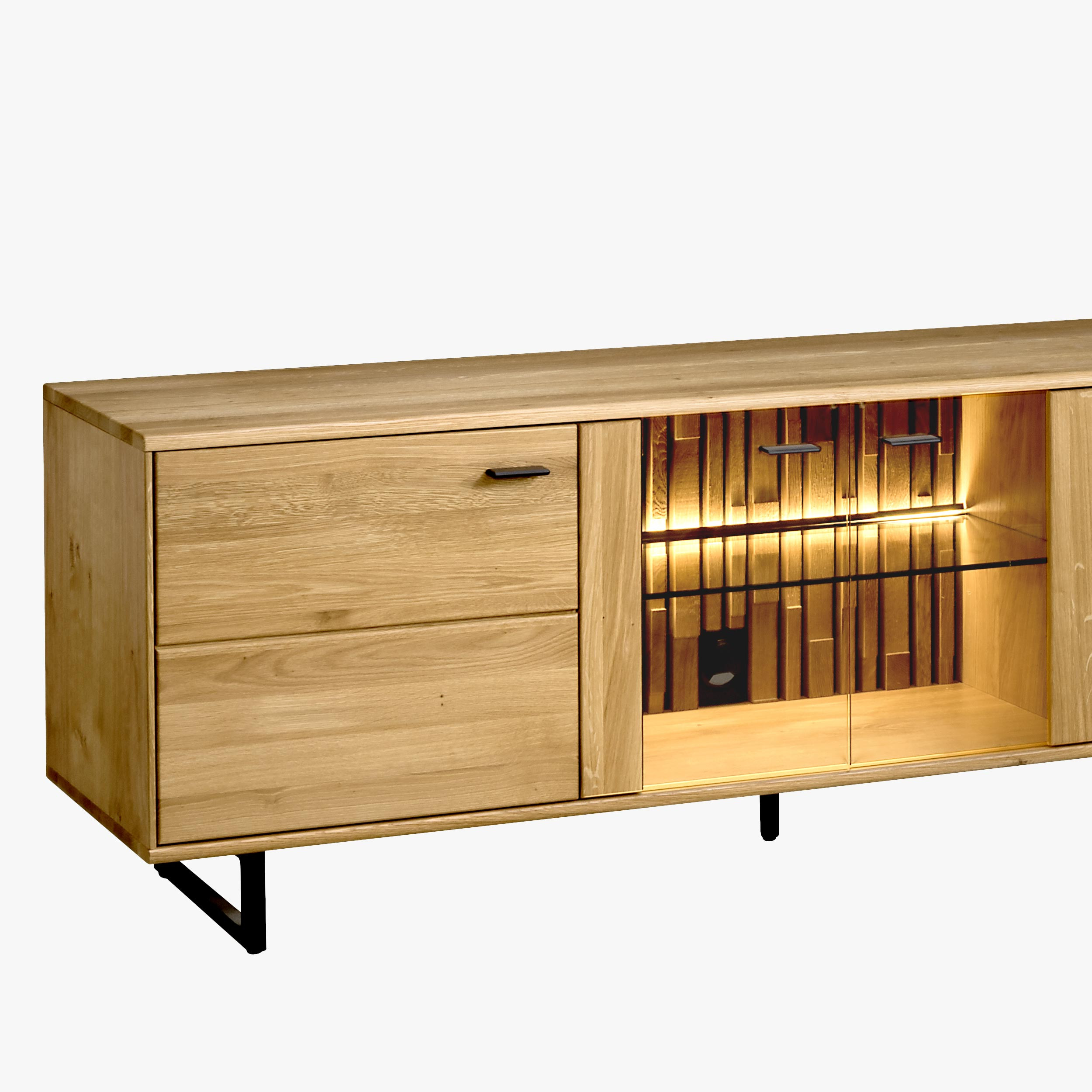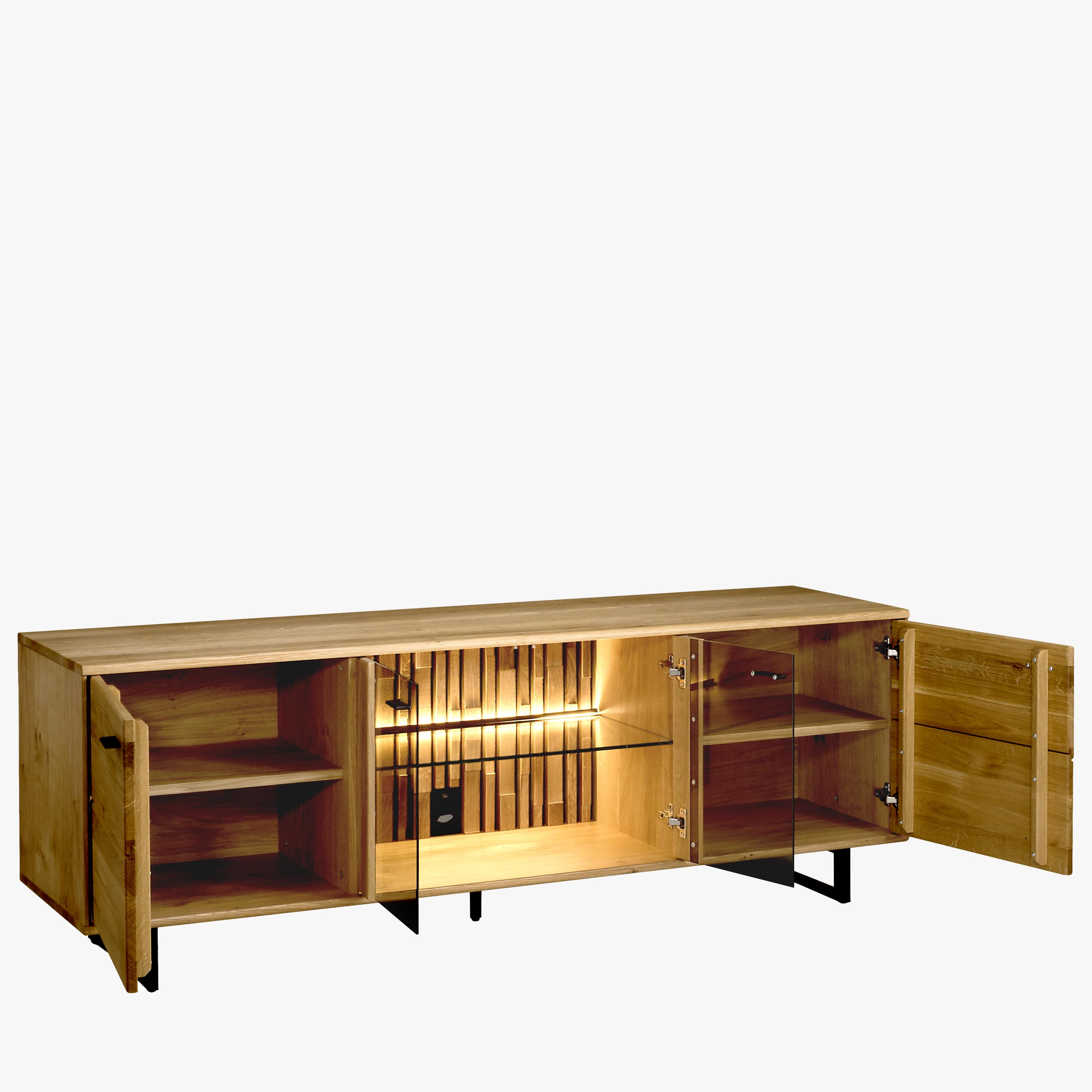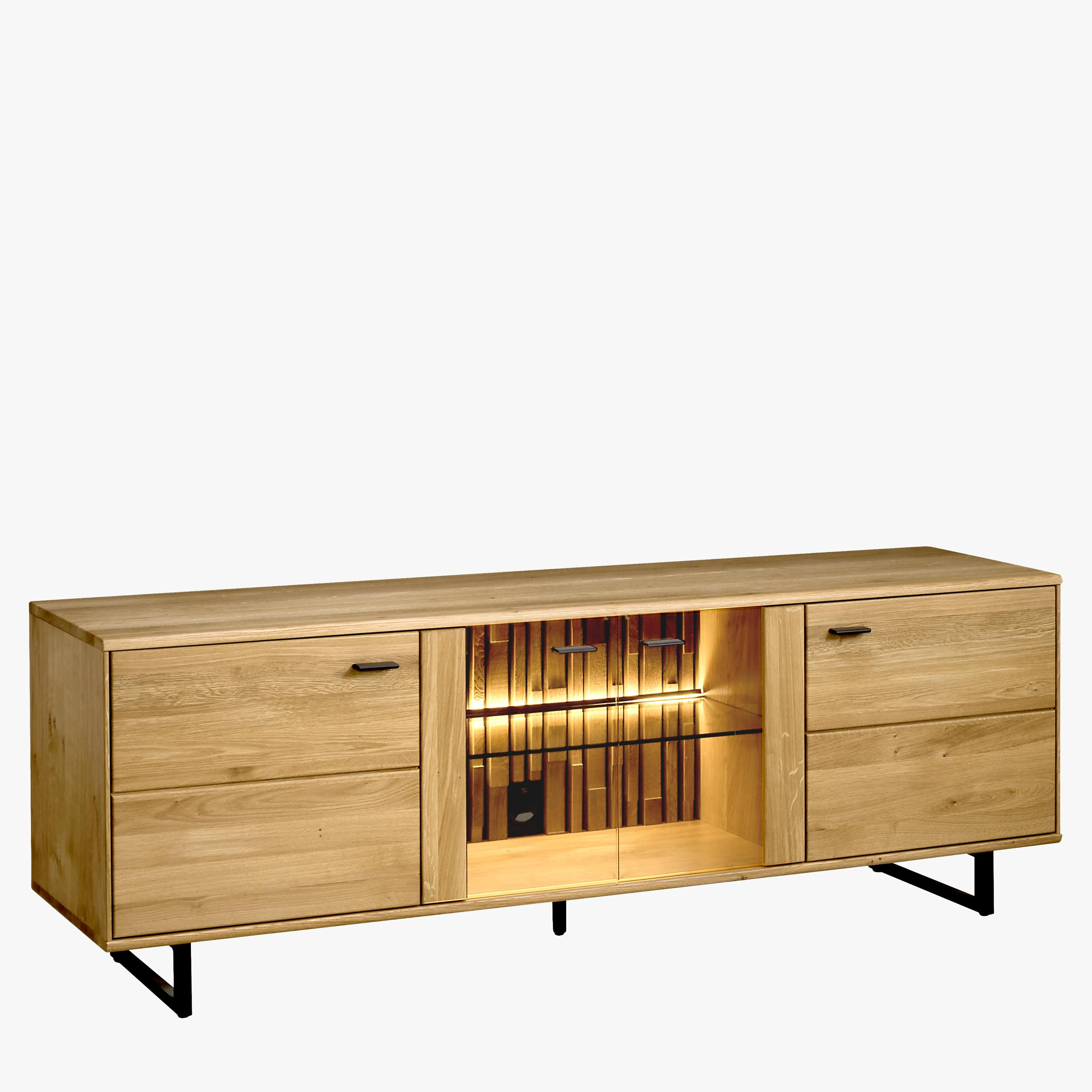 TV-Kommode Eiche massiv mit schwarzen Metallbeinen 180 cm