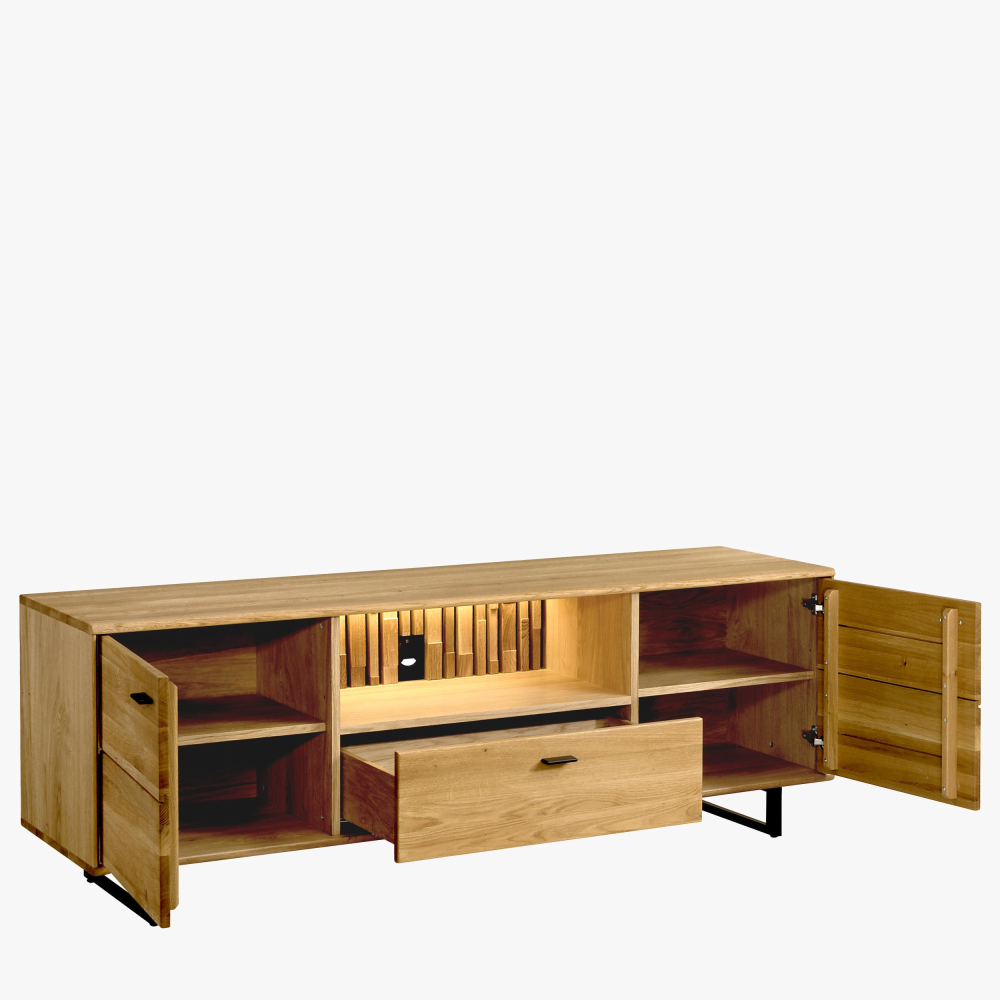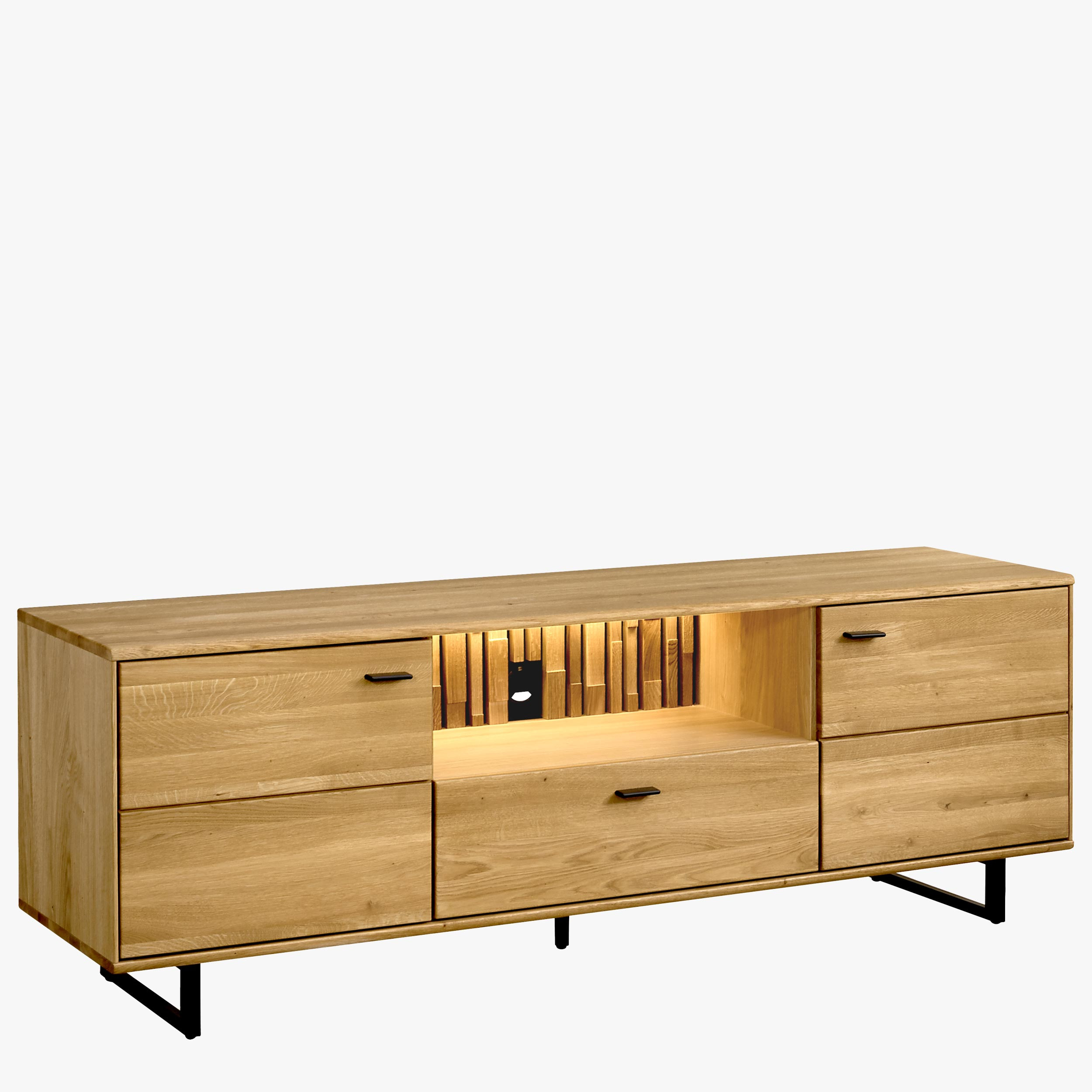TV-Kommode Eichenholz mit schwarzen Metallbeinen, modern