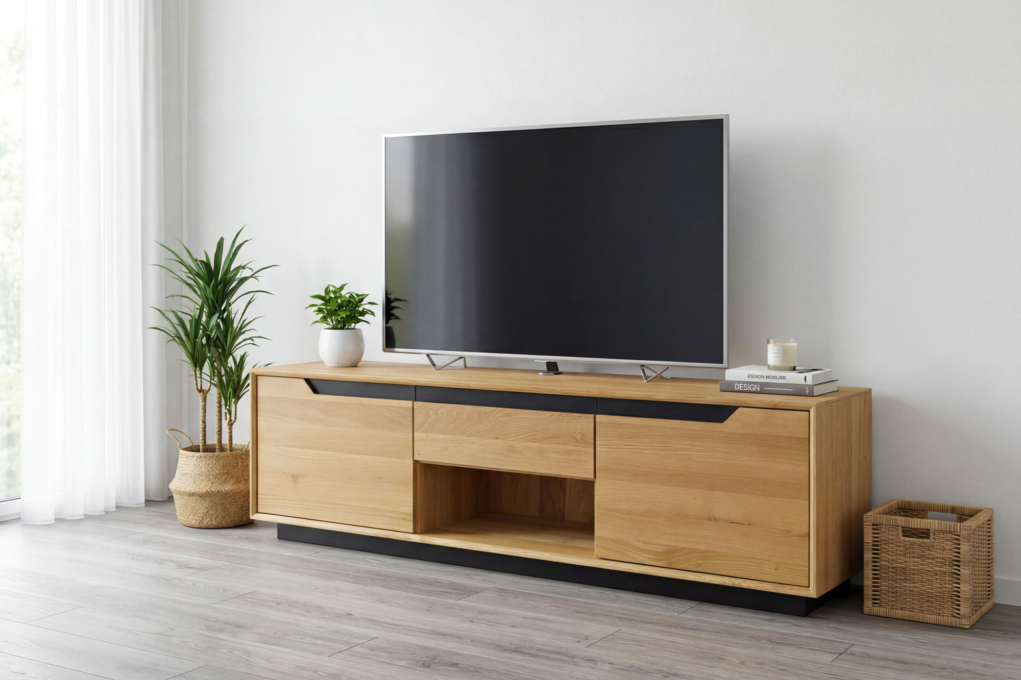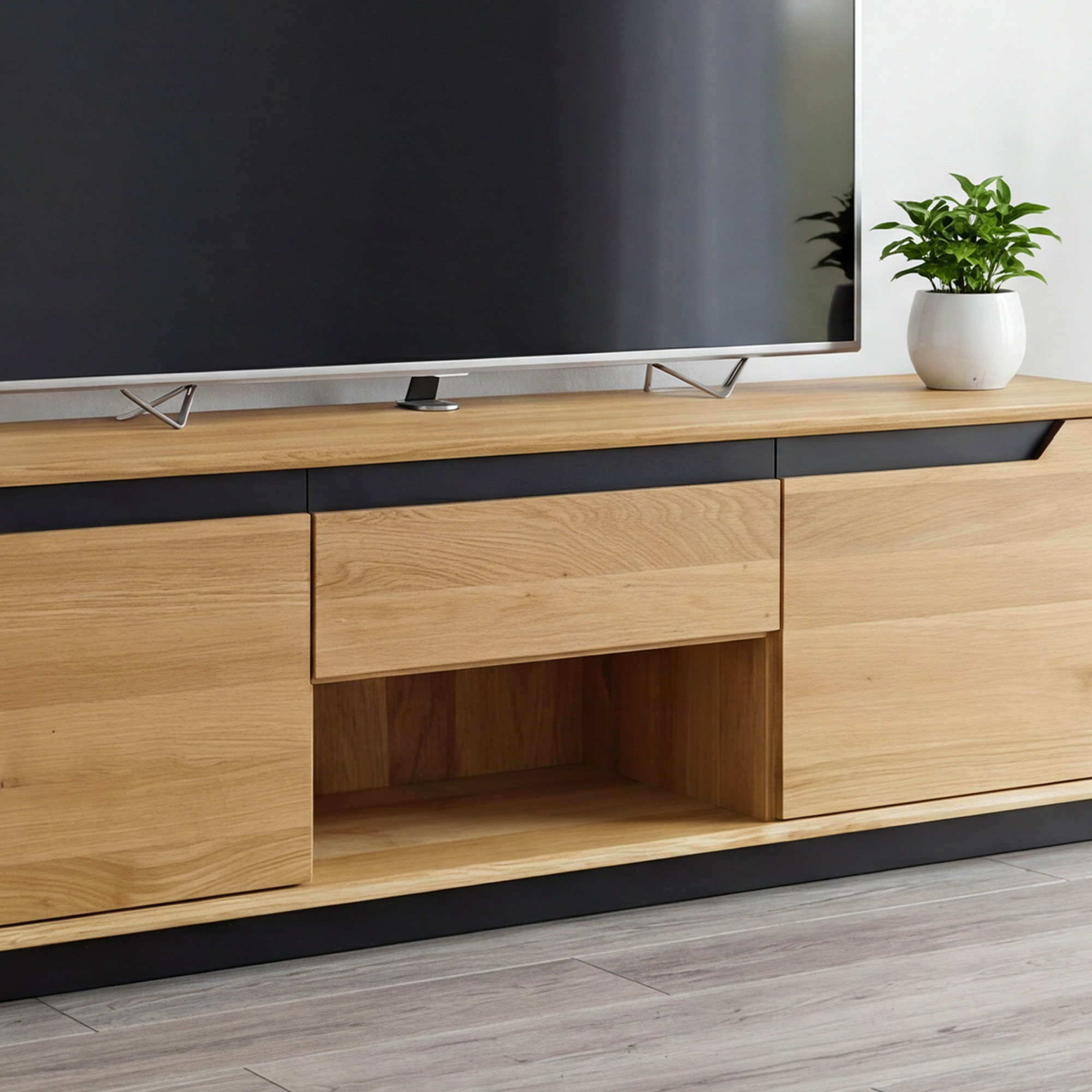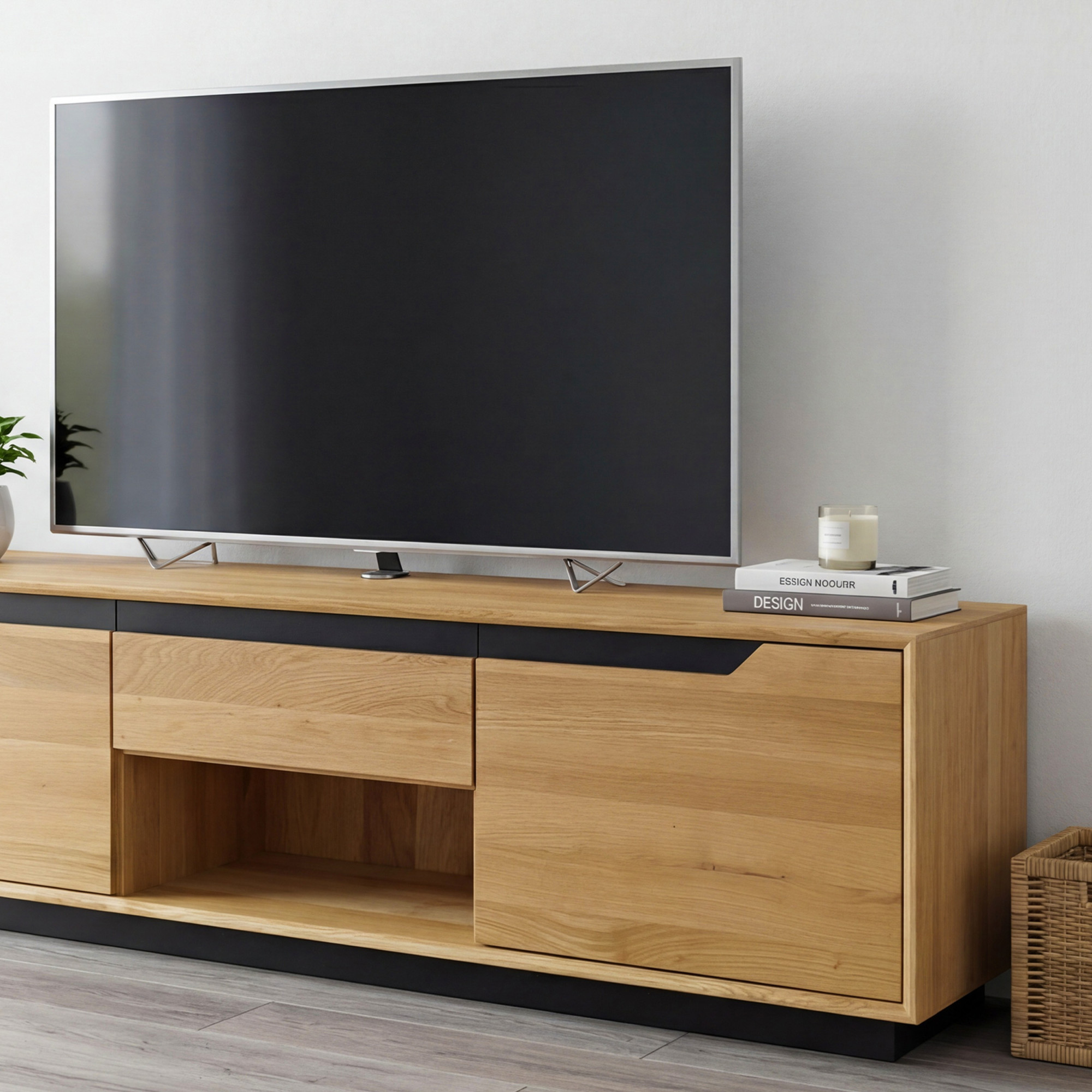 Massive Eiche TV-Kommode natur mit Türen und Schublade