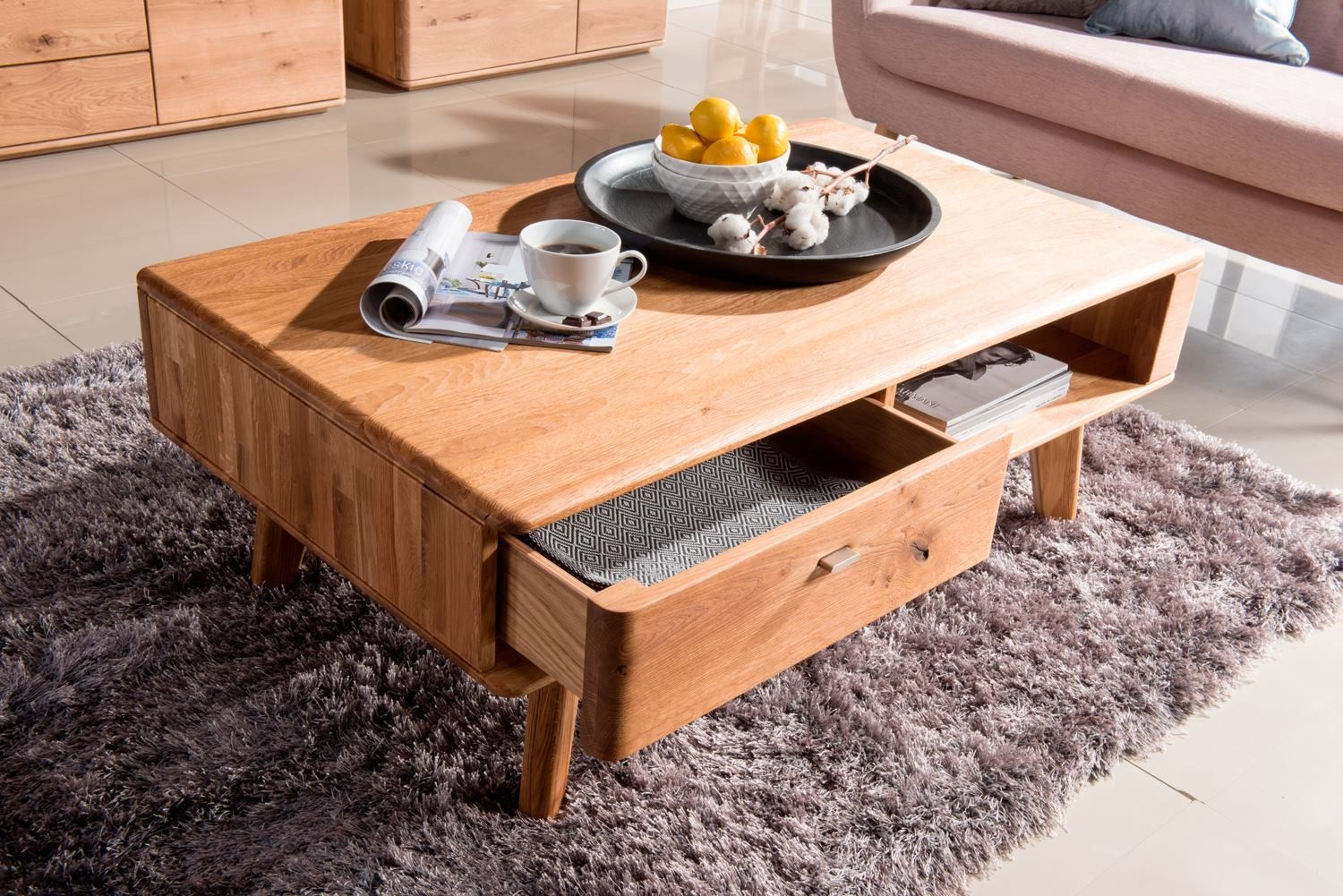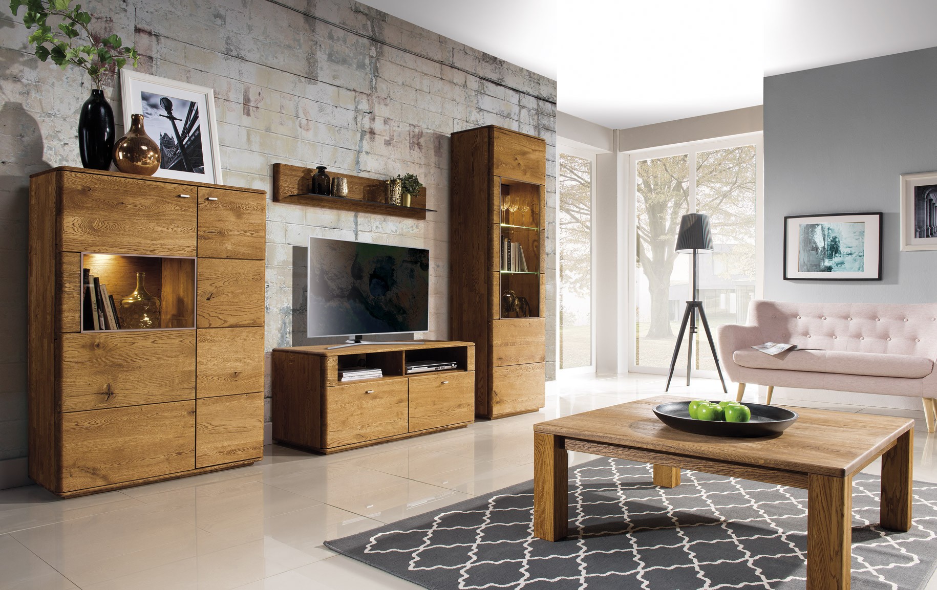 Ein Stück Natur in Ihr Wohnzimmer bringen Sie, wenn Sie sich von der Neuheitenkollektion Texas verzaubern lassen. Neben anderem Sortiment kann sie Ihnen den Fernsehschrank Texas aus natürlichem Eichenholz in zwei Farbausführungen anbieten - Naturöl, gebrannte Eiche. Er bringt nicht nur ein designorientiertes Flair, vor allem aber Praktikabilität und lange Lebensdauer mit sich. Am besten kommt der Fernsehschrank Texas im Wohnzimmer zusammen mit weiterem Eichenmöbel zur Geltung. Er schafft aber auch alleinstehend ein Highlight im Raum.