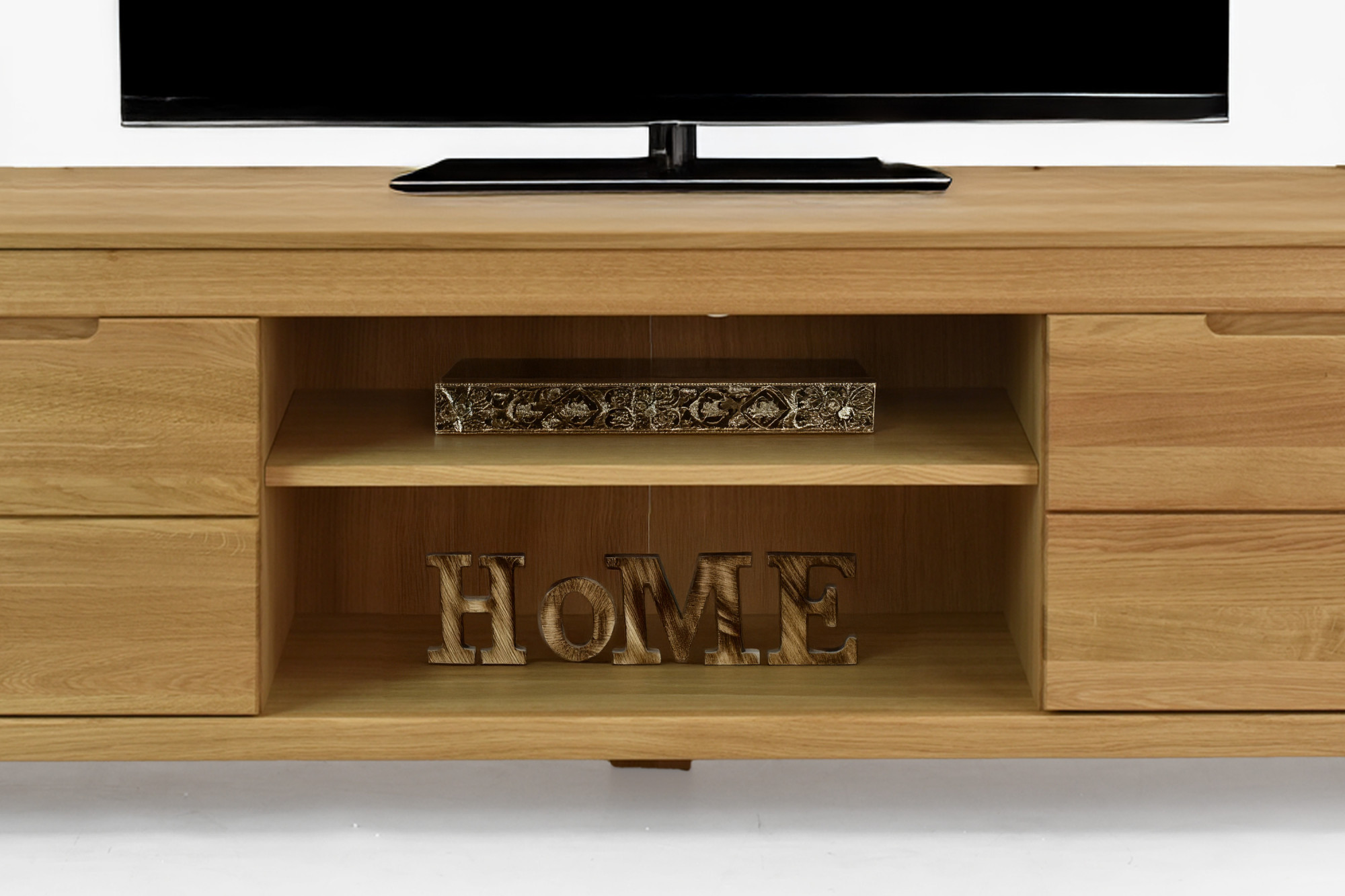 Eichen-TV-Kommode 200 cm breit mit Schubladen und Türen
