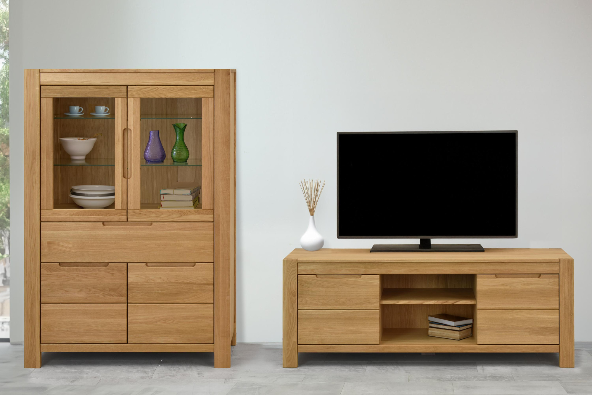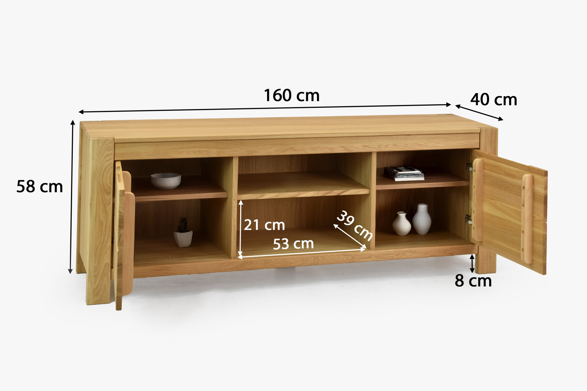 Wählen Sie die Eichen-TV-Kommode Napoleon und genießen Sie täglich den Hauch von Natur sowie erstklassige Handwerkskunst. Massives Eichenholz, elegante eingebaute Griffe und sanftes Schließen machen das Fernseherlebnis zum Designhighlight. Durch den direkten Einkauf beim Hersteller erhalten Sie Premiumverarbeitung zu einem fairen Preis und die Sicherheit einer schnellen Lieferung mit eigenem Transport. Wir sind ein tschechisches Familienunternehmen, das seit 1993 tätig ist und jährlich über 50 000 Kunden in der gesamten EU bedient.