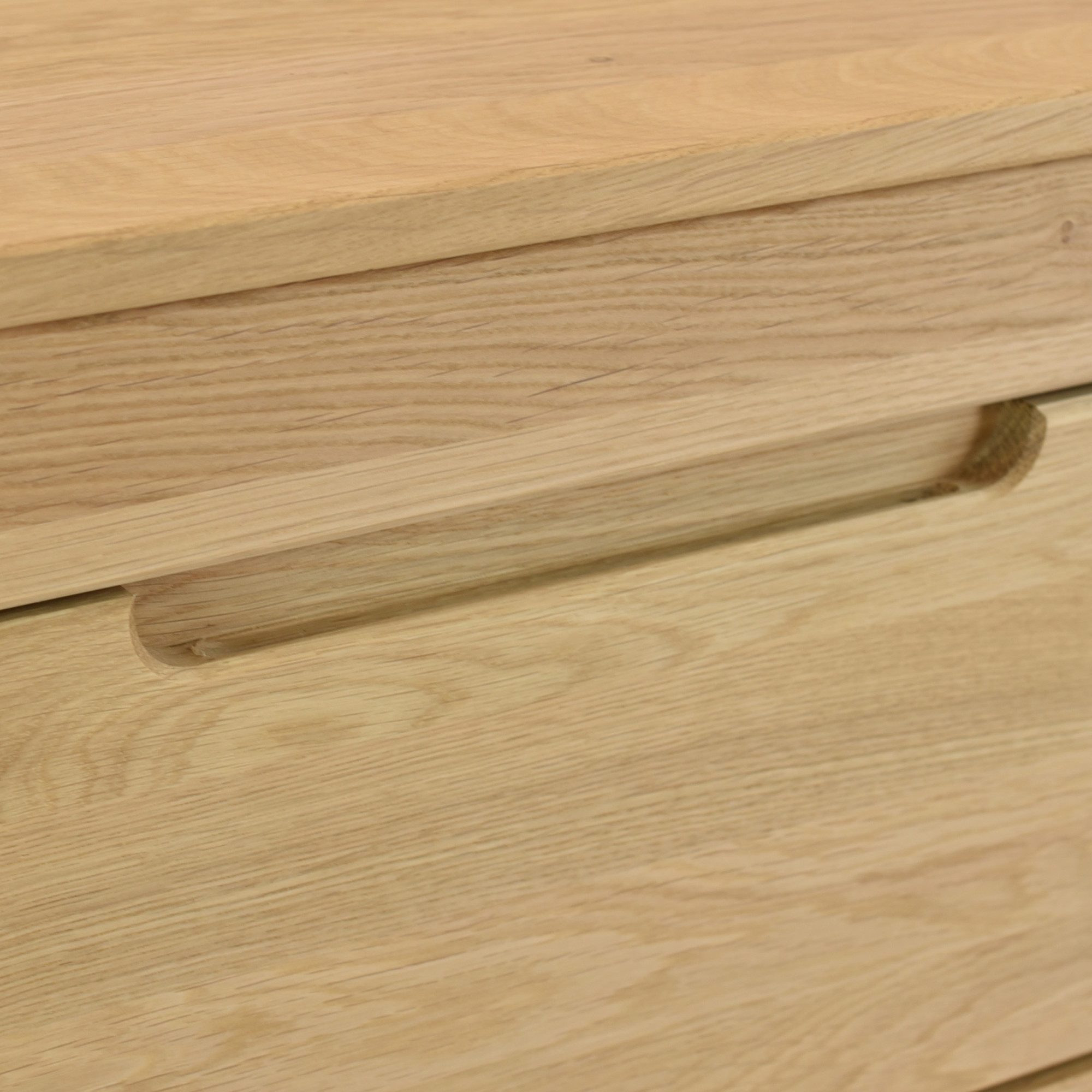 Massive Eichenfront und Beine für hohe Stabilität