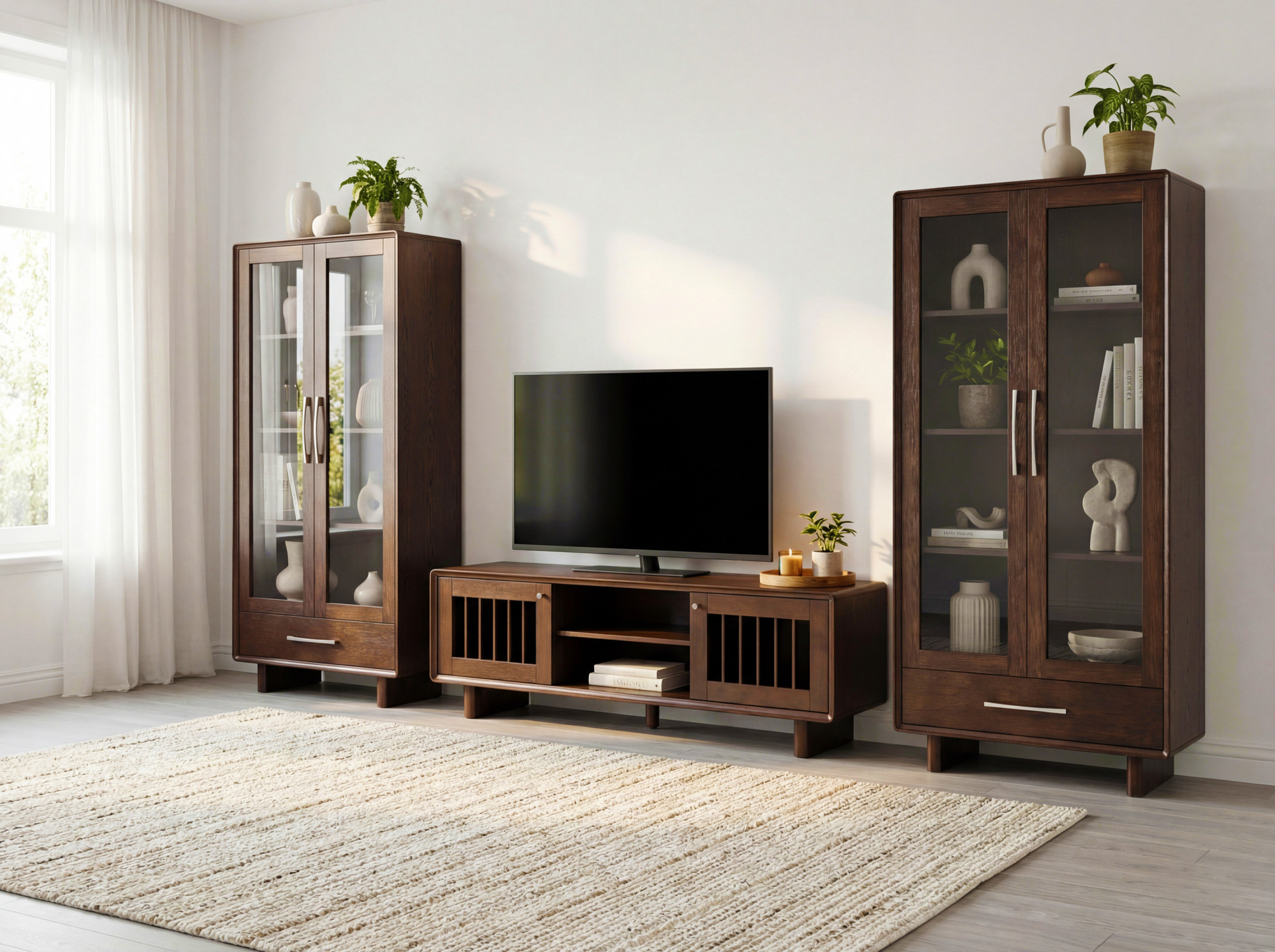 Dieser design-TV-Tisch ist ein Garant für erstklassige Verarbeitung und zeitlose Eleganz. Die Kombination aus Premium-Eichenfurnier, massiven Kanten, einzigartigen Lamellen-Türen und modernem Soft-Close-System macht ihn zur idealen Wahl für anspruchsvolle Kunden. Der TV-Tisch ist Teil der Koper Kollektion, daher können Sie ihn problemlos mit weiteren Möbelstücken im gleichen Stil kombinieren – Kommoden, Vitrinen oder Konsolentische. Unser Unternehmen ist seit 1993 am Markt tätig und bedient jährlich über 50.000 zufriedene Kunden in der gesamten EU. Wir verfügen über eigene Transportmittel – die Möbel werden in unserem Lager verladen und direkt bei Ihnen zu Hause ausgeladen. Bestellen Sie noch heute und gönnen Sie Ihrem Wohnzimmer ein Stück zeitloser Eleganz!