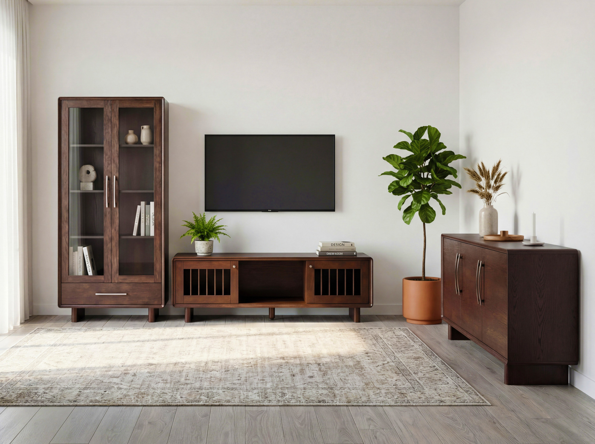 Design-TV-Tisch Koper mit Schiebetüren in Nussbaumfarbe – 180 cm