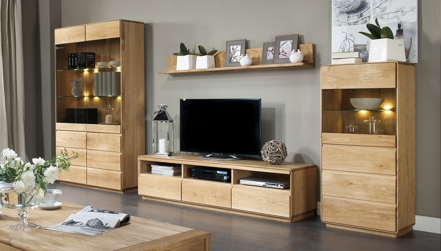 Wir bieten die Möglichkeit, zwischen zwei Farbvarianten der TV-Kommode zu wählen: Eiche geölt oder geräucherte Eiche. Die erste Variante spricht Liebhaber von Naturholz und ökologischem Aussehen an. Die dunklere Variante Geräucherte Eiche wirkt sehr elegant! Die Endbehandlung erfolgt mit renommiertem Öl und Beize des deutschen Herstellers Livos.