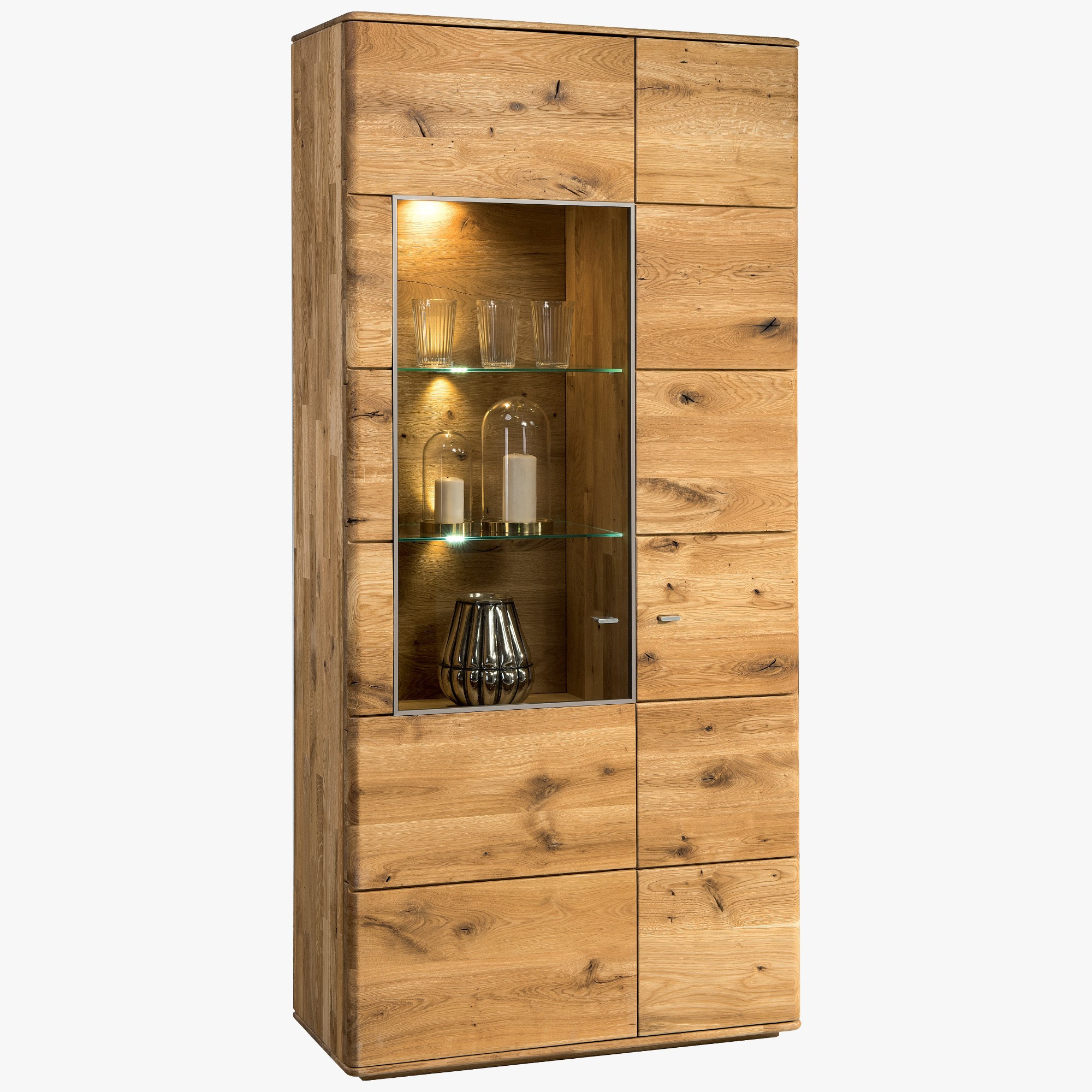 Hohe schmale Kommode Eiche massiv mit Glasfront braun