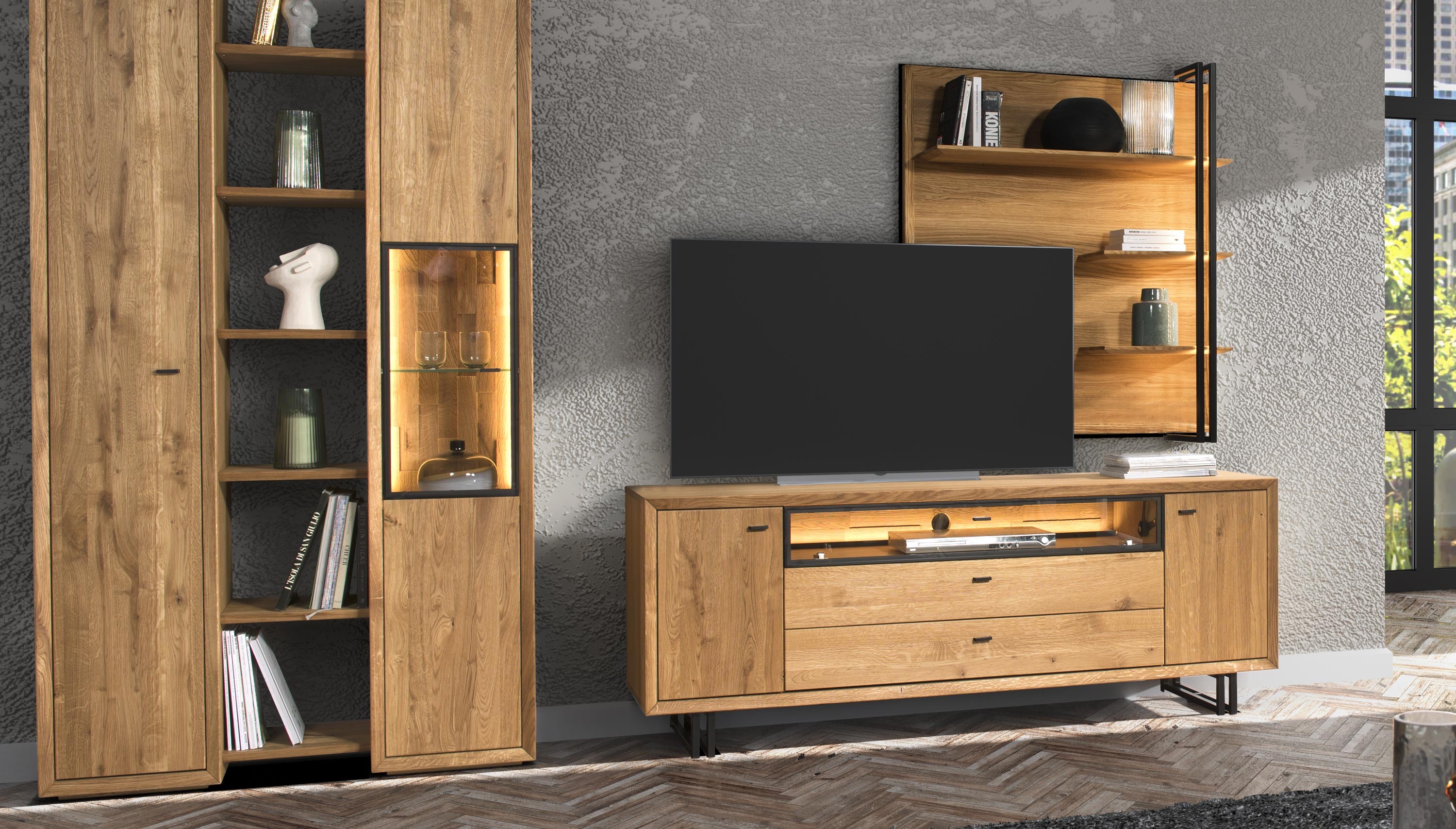 Die Kollektion Vilo 2020 bietet stilvolle Eichenmöbel, die verschiedene Möbeltypen für das Wohnzimmer umfassen – Fernsehschränke, Vitrinen, Regale und einen Designer-Couchtisch. Jedes Stück wird mit einem Augenmerk auf Details wie leises Schließen von Türen und Schubladen gefertigt, was den Luxus und Komfort bei der Nutzung erhöht.