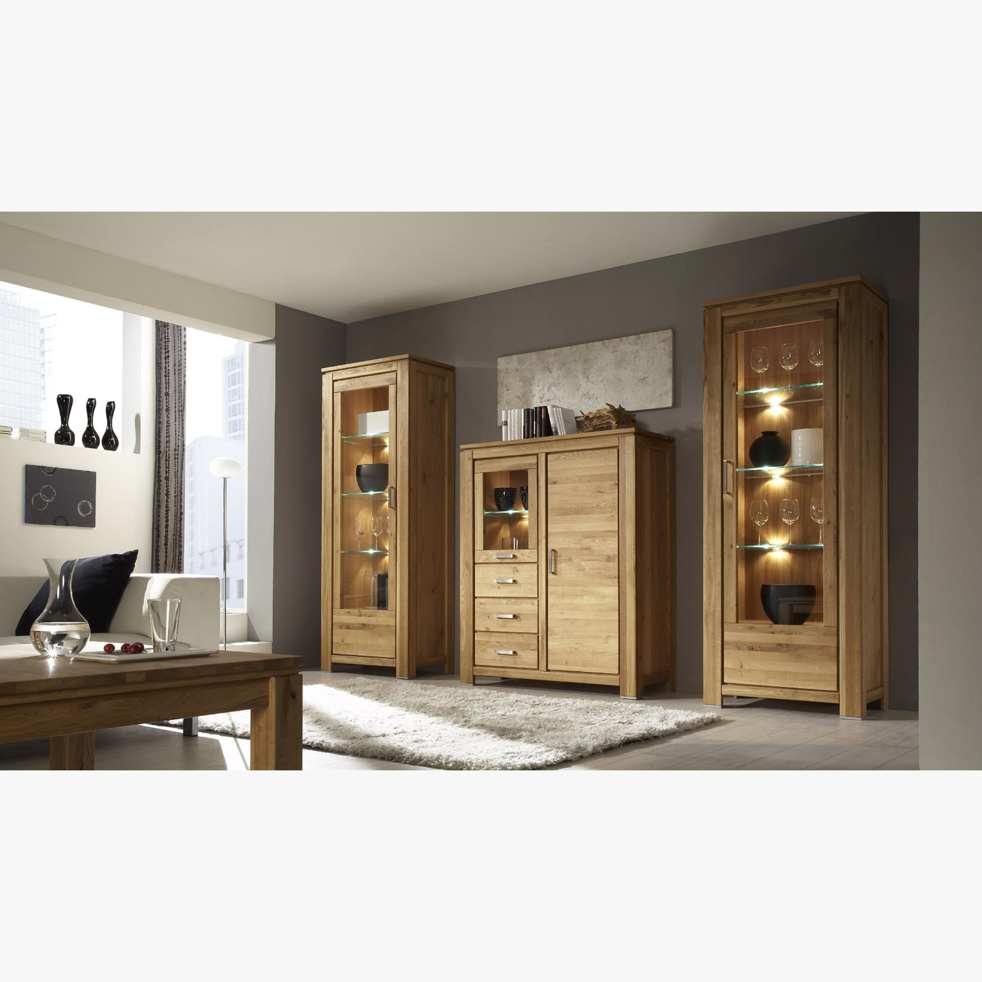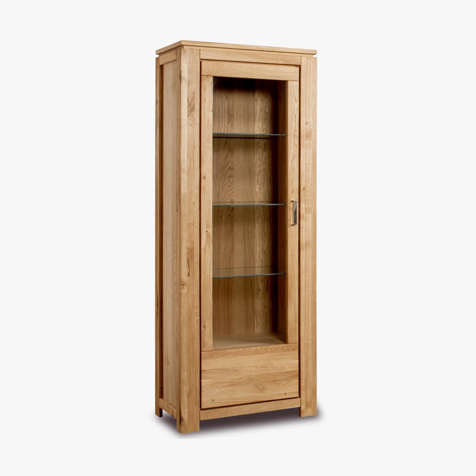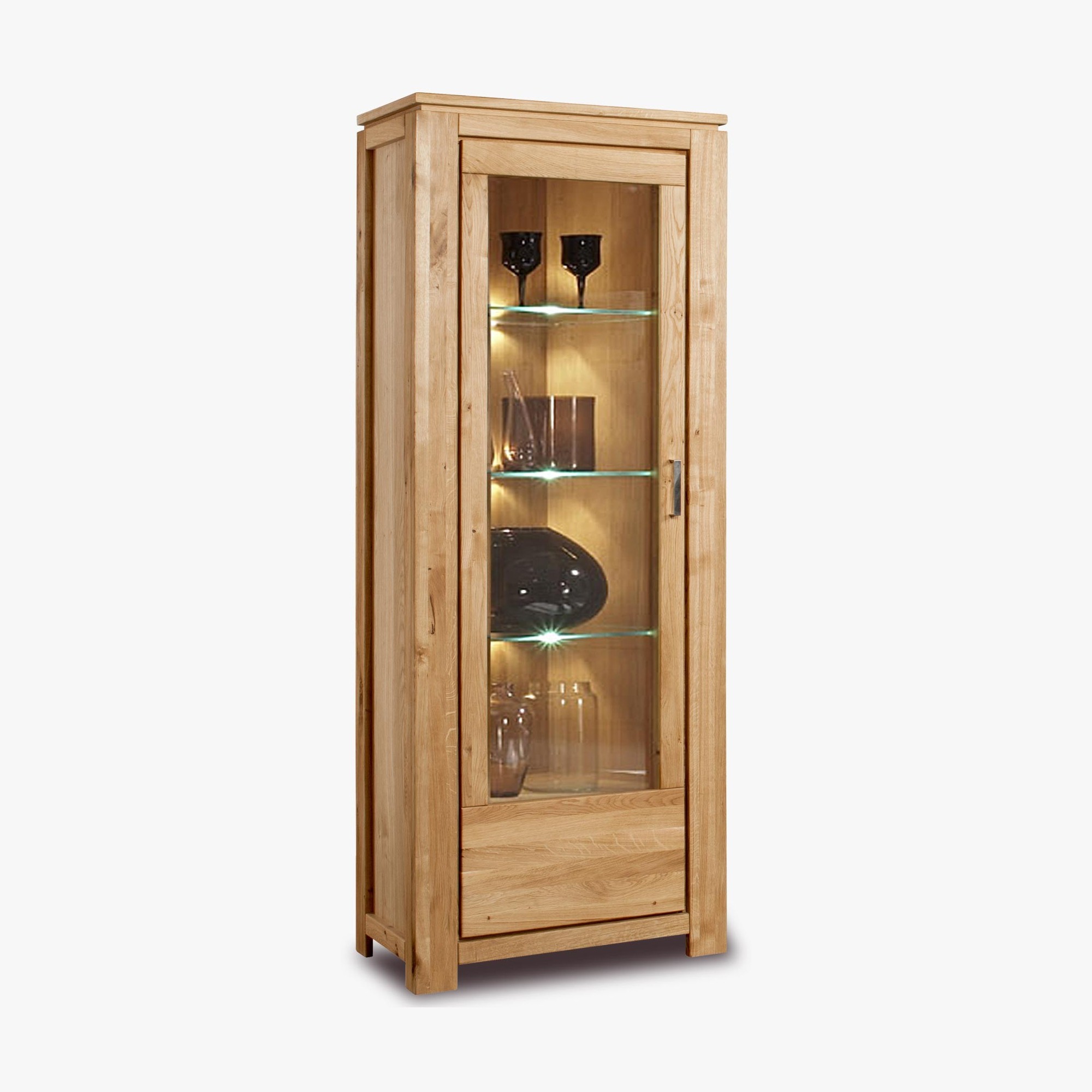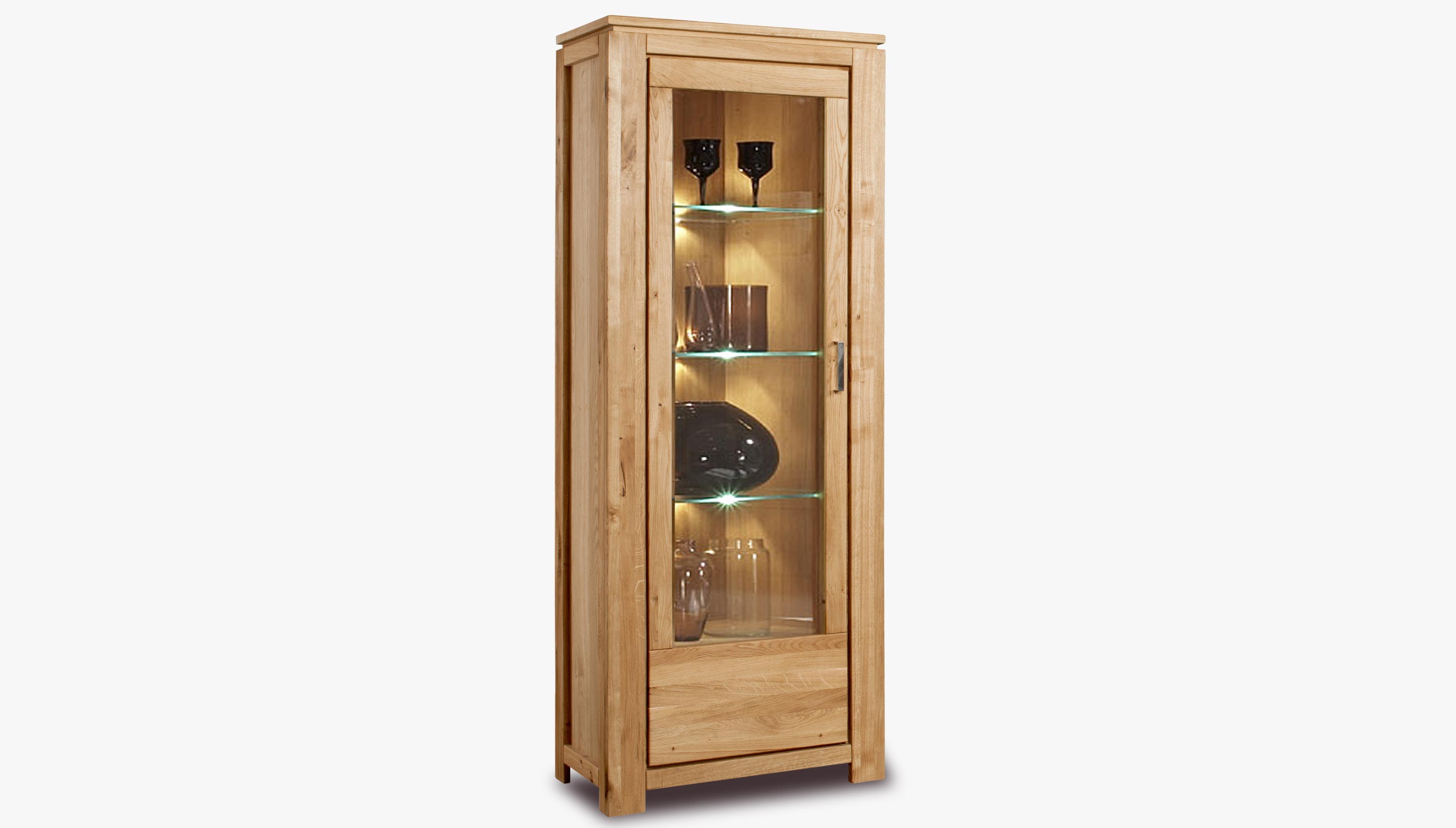 Luxusvitrine Eiche massiv mit 3 Glasscheiben, naturfarben, montiert, New Line