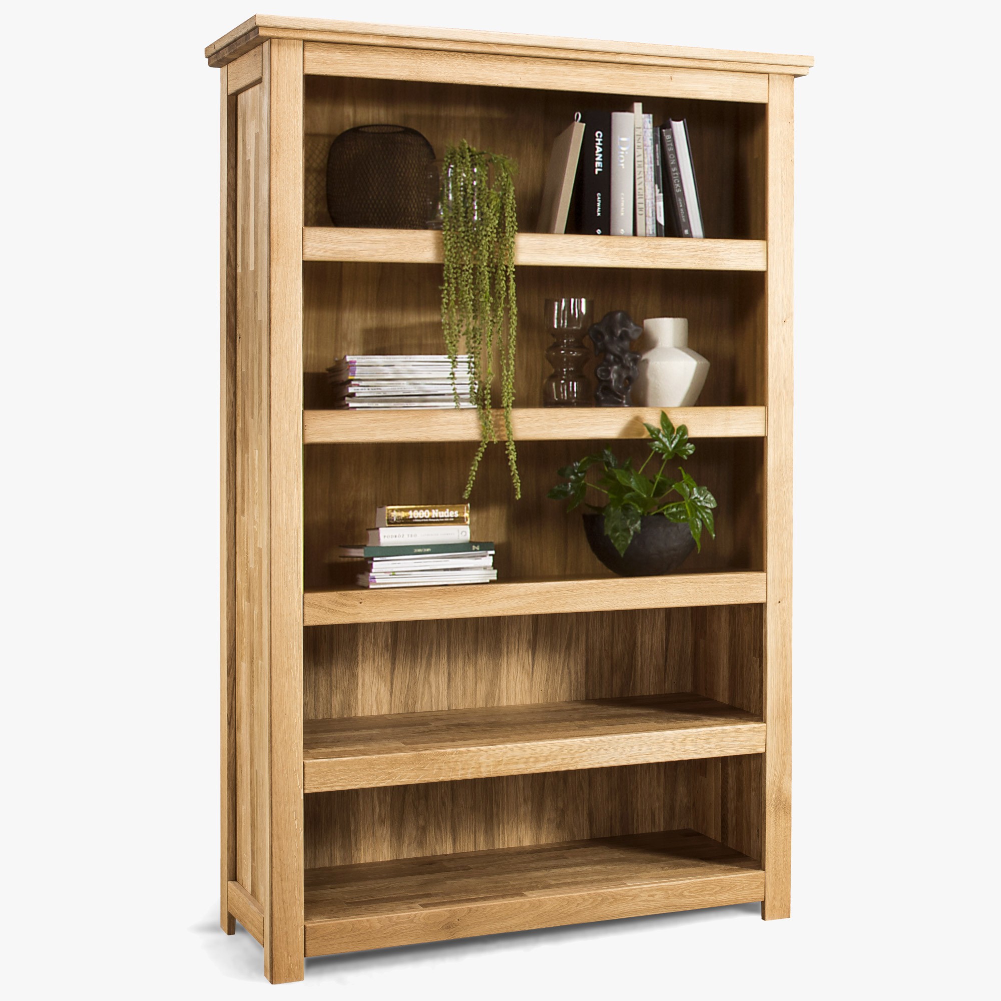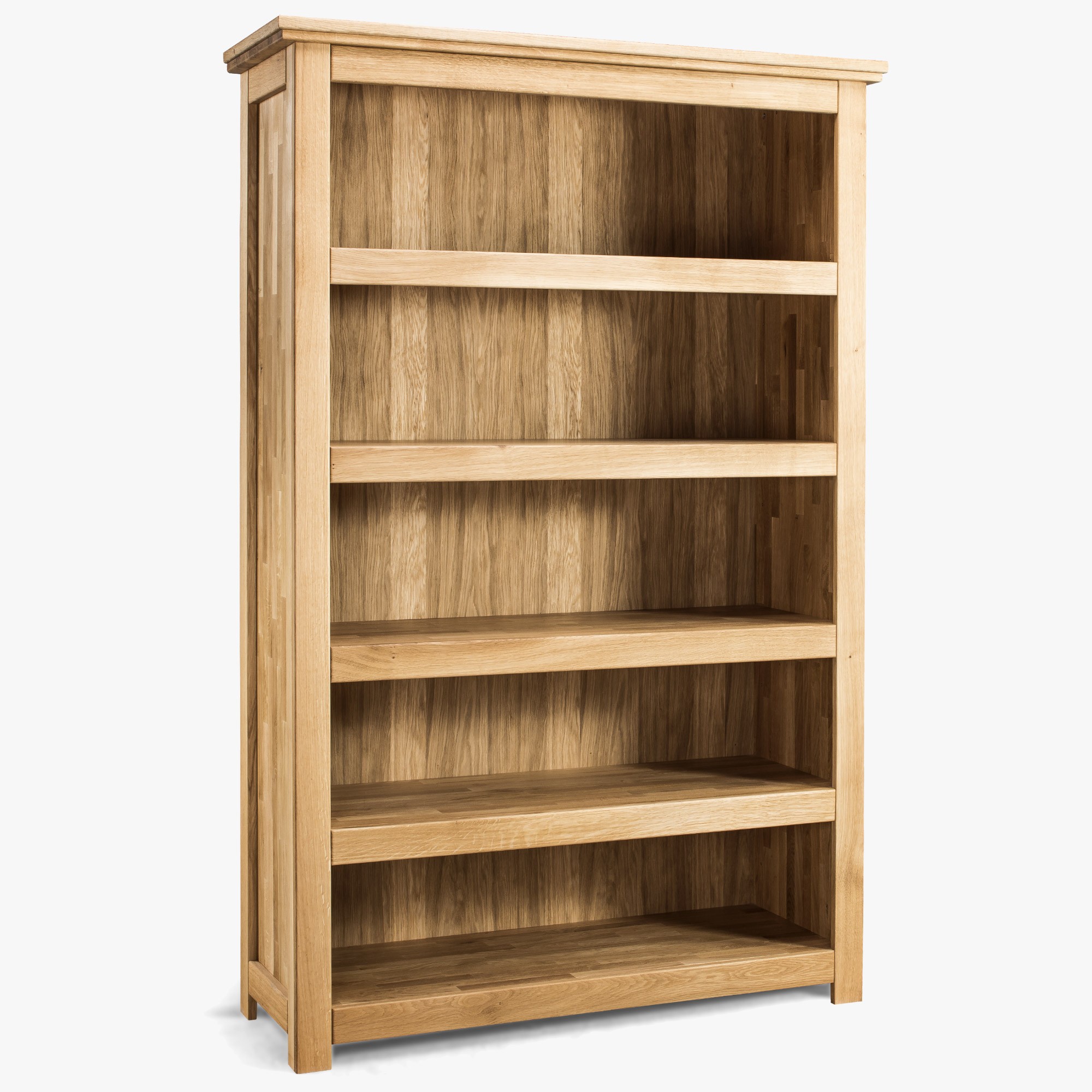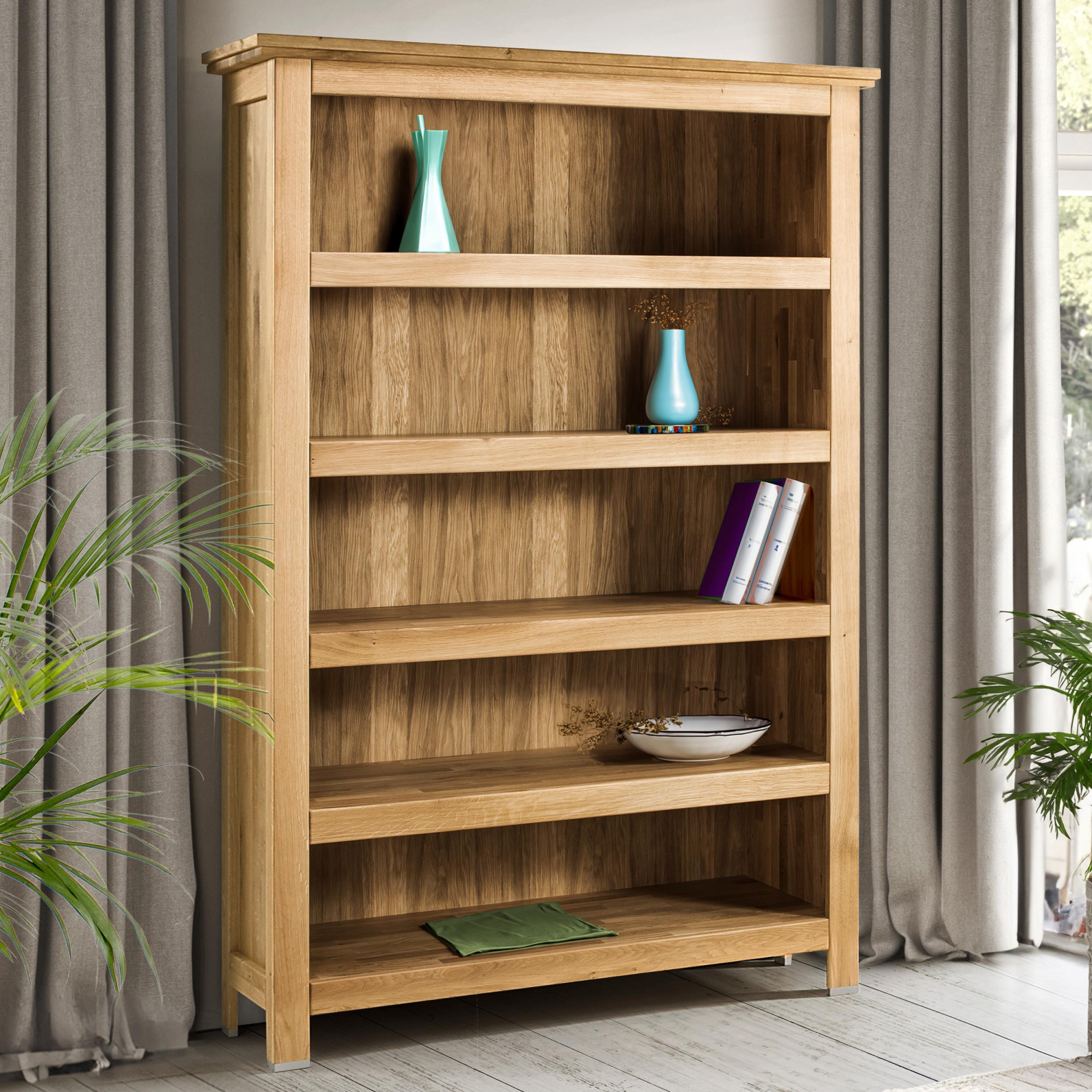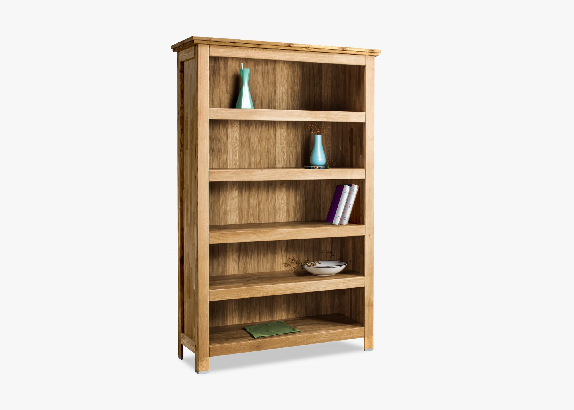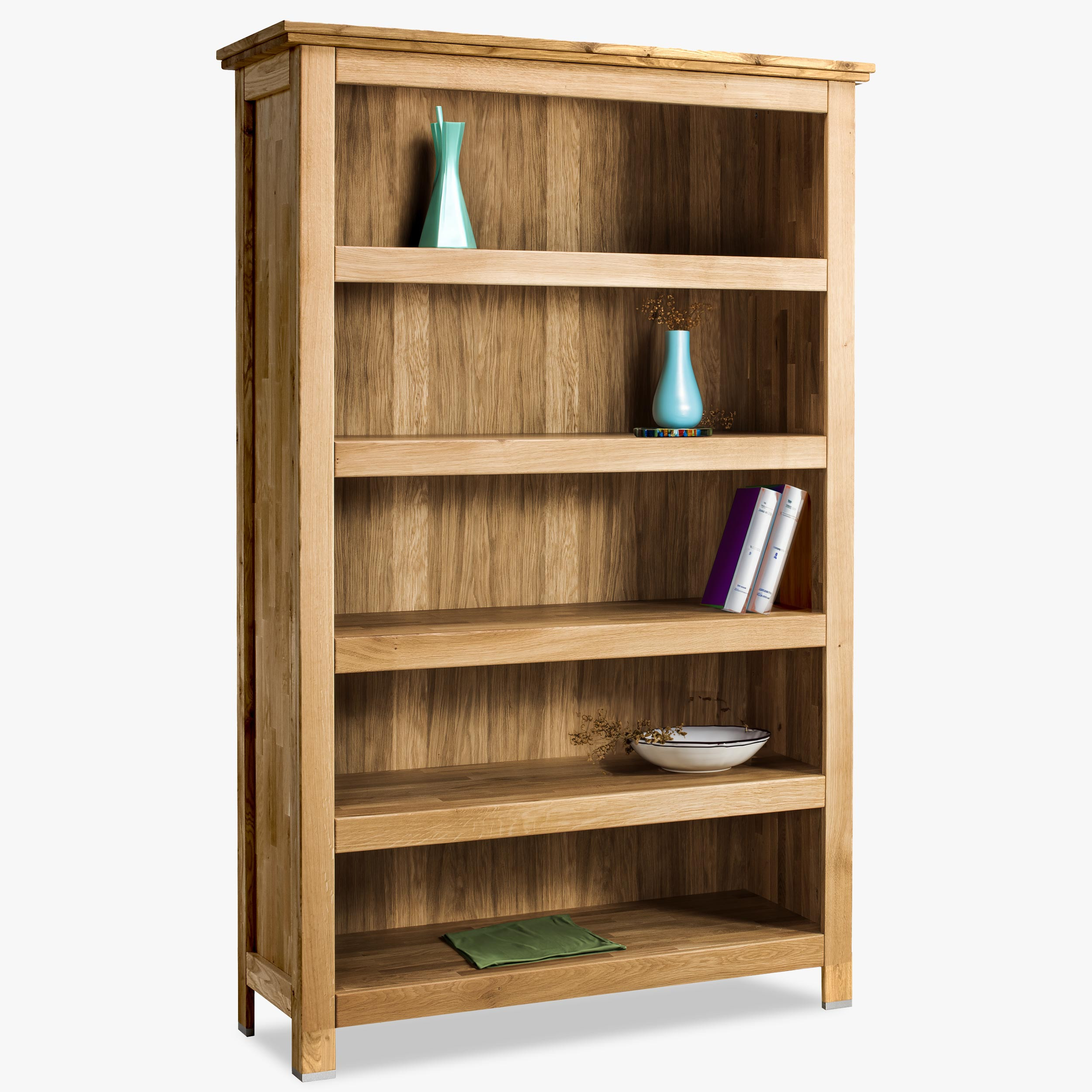 - Komplett massive Konstruktion: Das Bücherregal besteht zu 100 % aus massivem Eichenholz, einschließlich Korpus, Innenböden und ggf. Türen, was für hohe Widerstandsfähigkeit und Stabilität sorgt.
