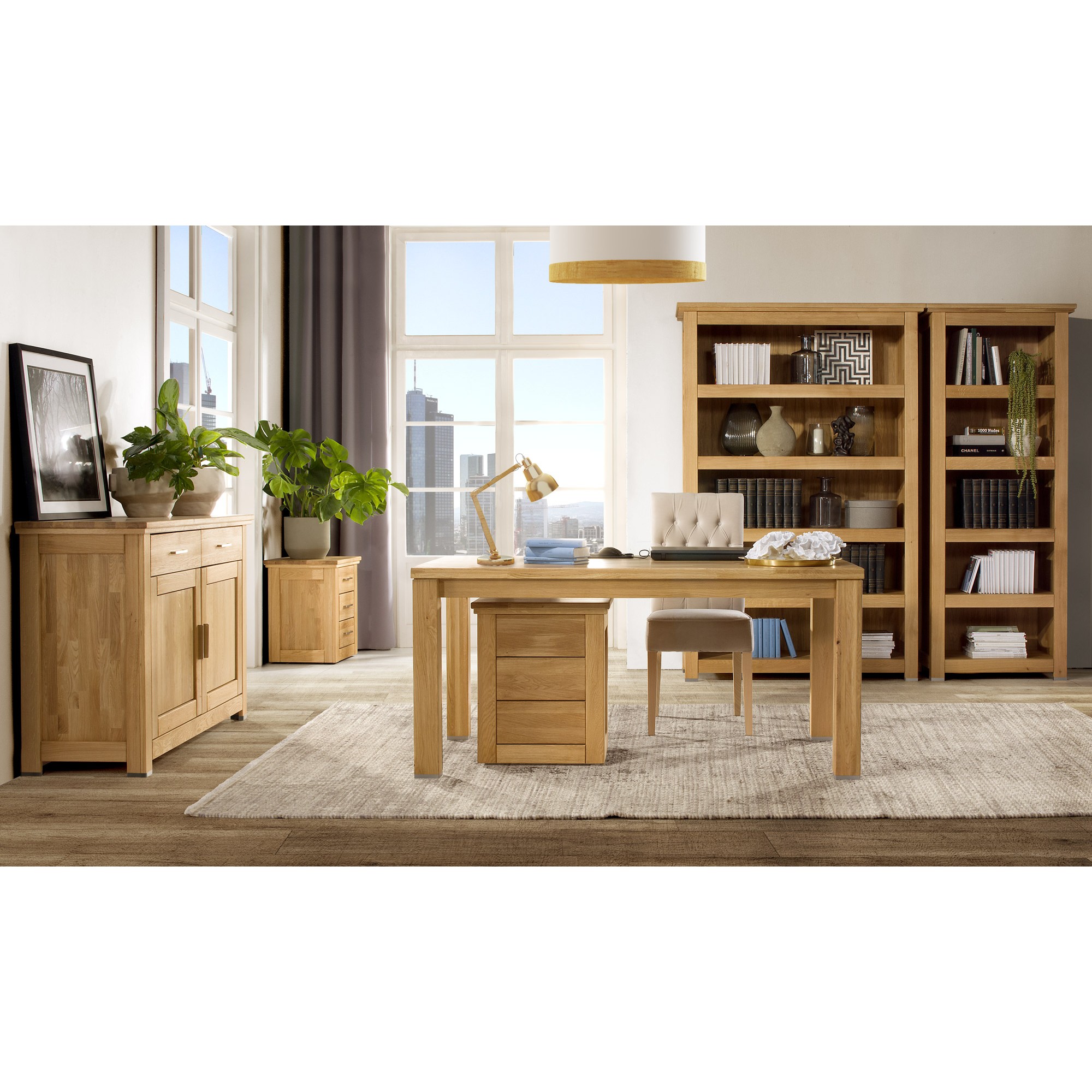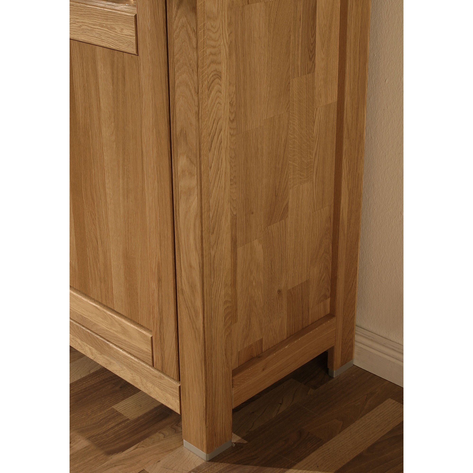 Die Eichenmöbel der Serie Alexandra sind wirklich zeitbewährt. Die Möbelserie wird bereits seit über 20 Jahren hergestellt, wobei nach und nach neue Modelle hinzugekommen sind. In der Alexandra-Kollektion finden Sie Möbel für das Wohnzimmer, die Küche, das Esszimmer und neu auch fürs Arbeitszimmer. Richten Sie auch Sie Ihr Interieur mit ehrlichen Eichenmöbeln ein, die ausschließlich aus Eichenholz gefertigt sind. Wir wissen, dass Ihre Zeit kostbar ist, deshalb werden die Möbel bereits montiert geliefert. Alle Schubladen und Türen verfügen über deutsches Beschlagmaterial mit Soft-Close-Dämpfung. Die Möbel sind mit hochwertigem deutschem LIVOS-Öl behandelt, das speziell für Eichenholz entwickelt wurde. Genießen Sie jeden Tag den Duft von Naturmöbeln in Ihrem Zuhause. Für die Herstellung wird ausschließlich Holz aus nachhaltigen Wäldern verwendet. Die Möbel werden in Zusammenarbeit mit unserem und einem polnischen Unternehmen gefertigt. Das Design ist inspiriert von der Atmosphäre luxuriöser Schweizer Chalets. Die Herstellung erfolgt auf der modernsten Fertigungslinie in der EU, wo auch traditionelle deutsche Produkte hergestellt werden. Selbstverständlich wird die Holzfeuchte täglich kontrolliert, modernste CNC-Maschinen und eine überwachgte Luftfeuchtigkeit in der Produktion sind gewährleistet. Gönnen auch Sie sich höchste Qualität zu einem erschwinglichen Preis!