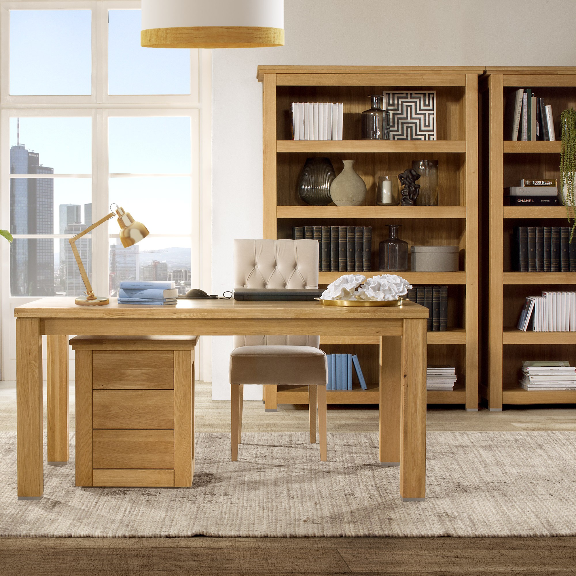 - Vollmassive Konstruktion: Das Bücherregal ist aus 100% massivem Eichenholz gefertigt, einschließlich Korpus, Innenböden und eventuell Türen, was für hohe Belastbarkeit und Stabilität sorgt.