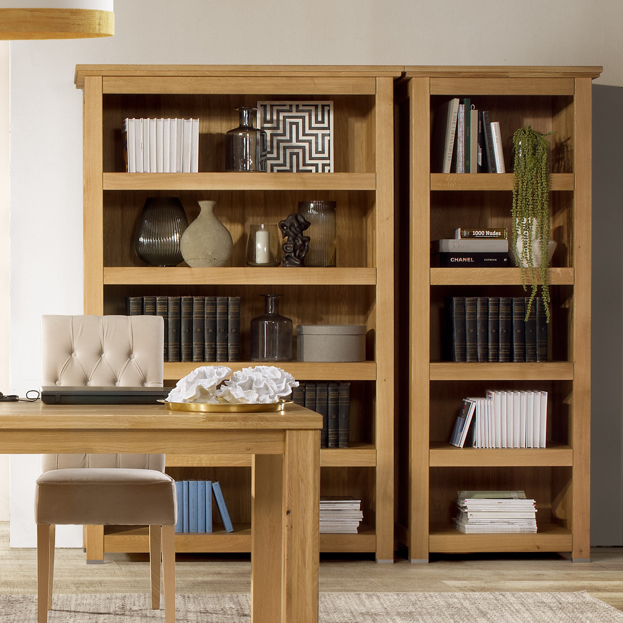 Suchen Sie ein Bücherregal für Ihr Arbeitszimmer oder Esszimmer, das aus natürlichen Materialien gefertigt ist und ein ehrliches Design sowie hohe Qualität aufweist? Sie müssen nicht länger suchen. Ein Eichenregal aus der Möbelserie Alexandra, gefertigt aus echtem Eichenholz. Wunderschönes Design, hohe Qualität und präzise Verarbeitung sind die Eigenschaften der Eichenmöbel Alexandra. Das Eichenregal verfügt über 4 Holzregalböden. Das Möbelstück ist aus Eichenholz gefertigt, einschließlich Korpus und Seiten. Perfekte Behandlung mit dem Markenöl LIVOS aus Deutschland schafft den idealen Schutz für das Eichenmöbel. Kein lästiger Aufbau, das Möbelstück wird Ihnen bereits montiert geliefert.