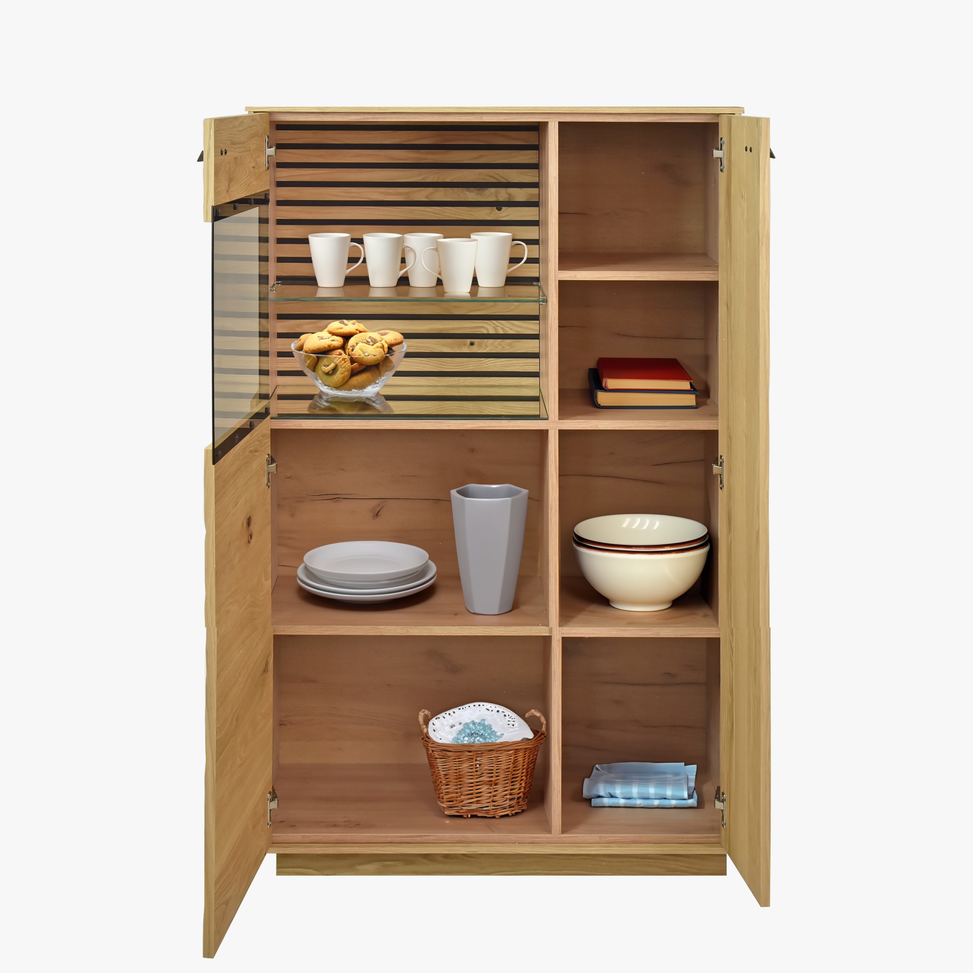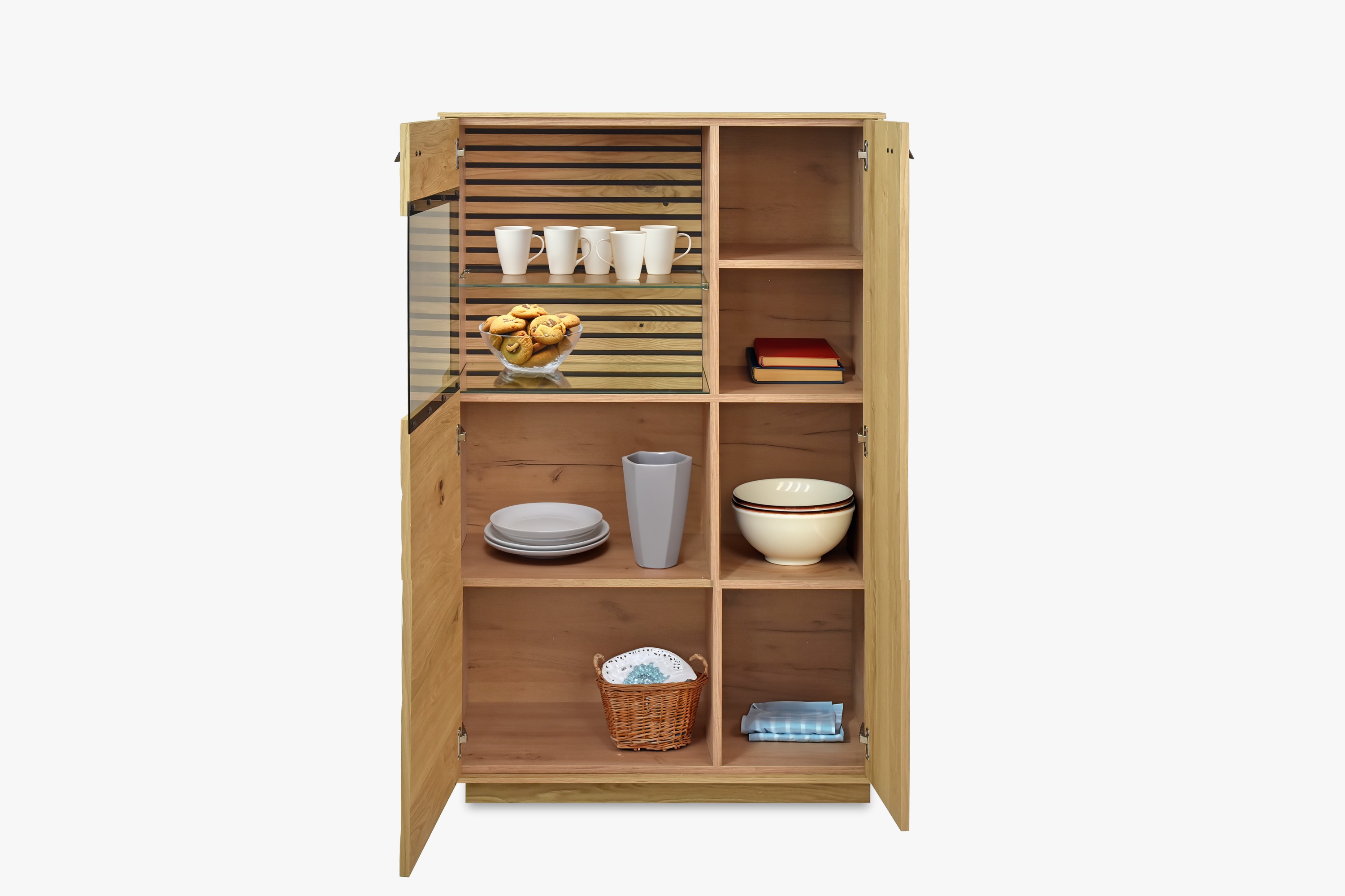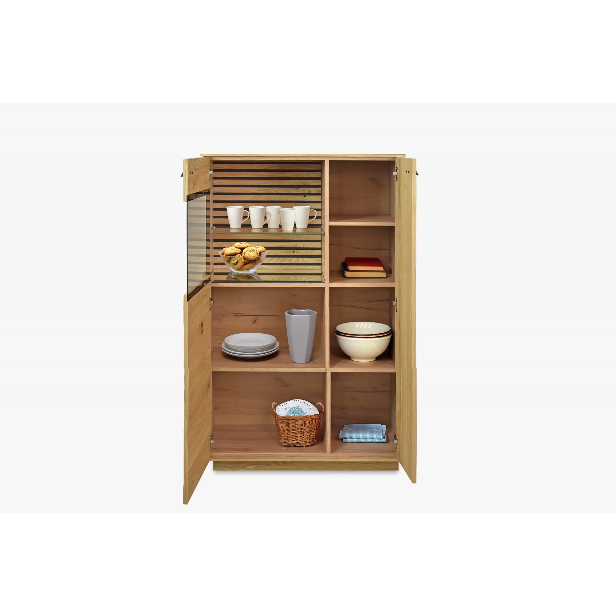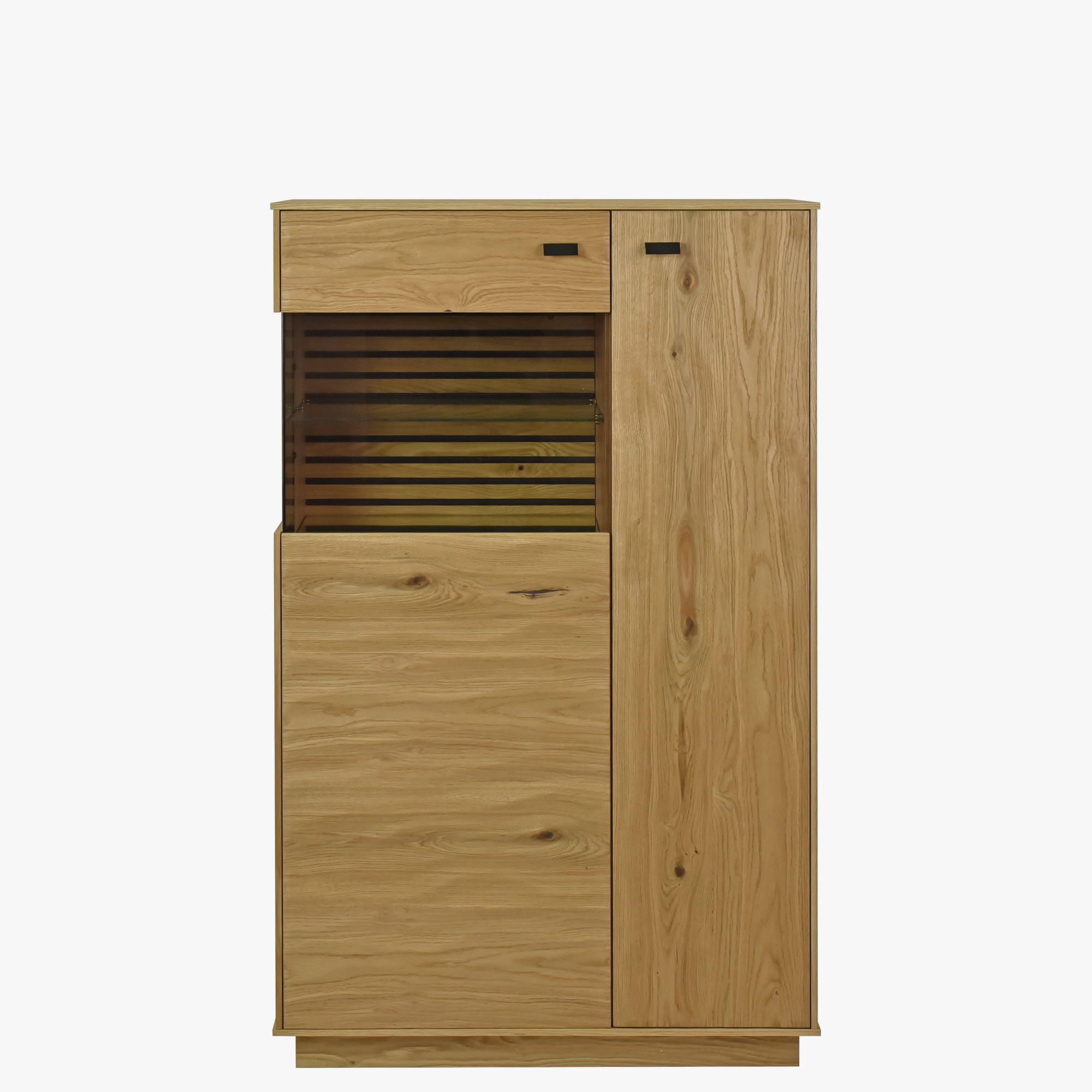 Eichenholz Vitrine Oslo mit Beleuchtung und Glasboden