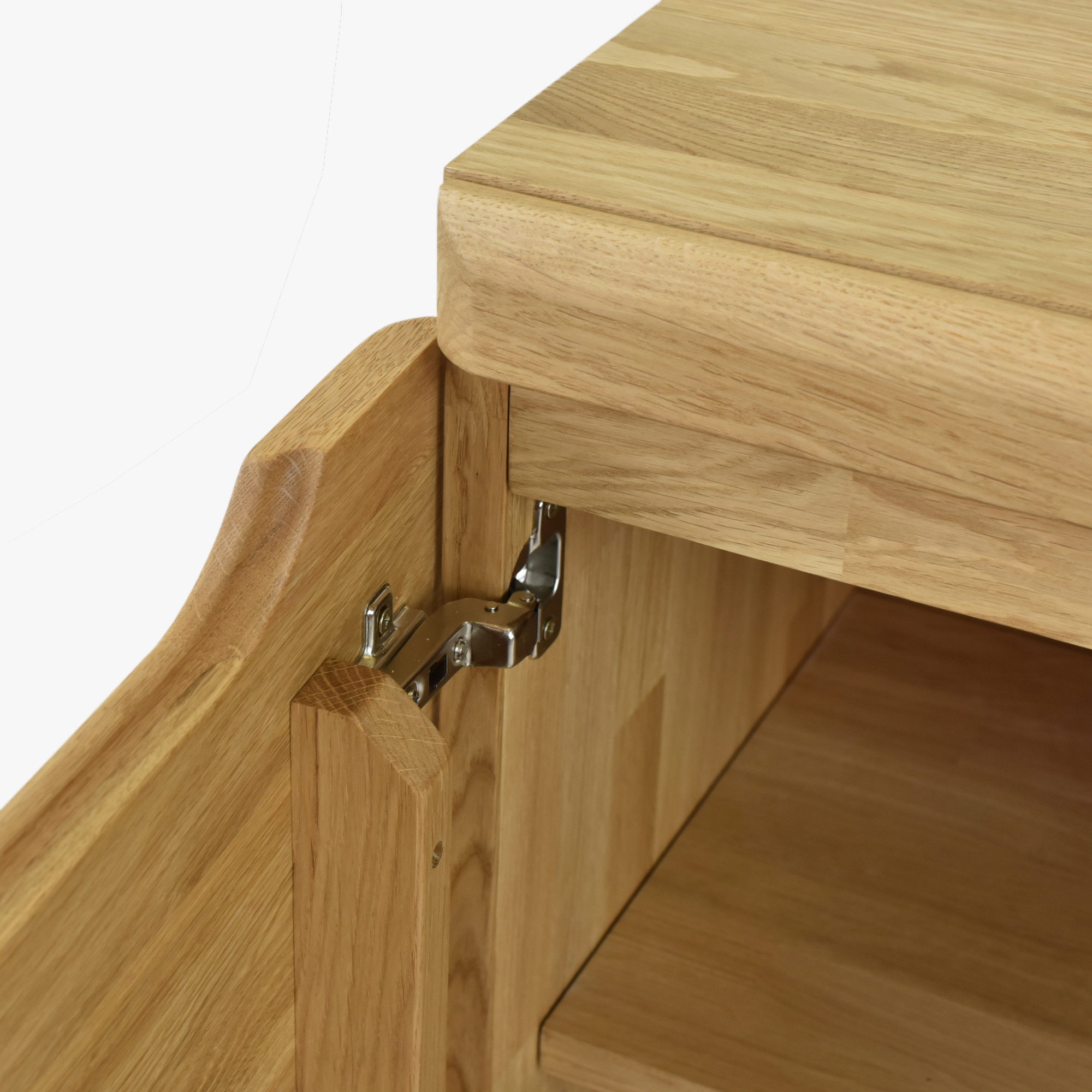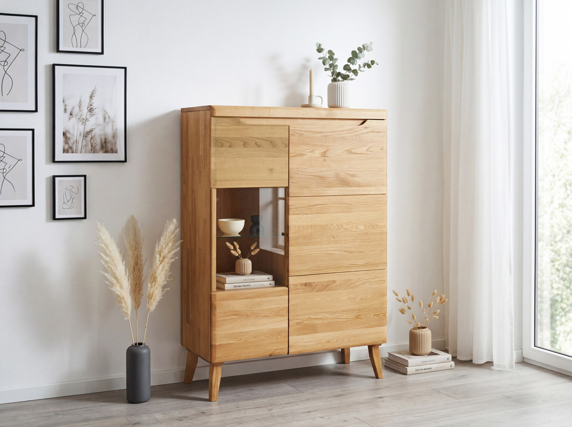Der niedrige Vitrinenschrank Praha ist der Beweis, dass hochwertiges Massivmöbel gleichzeitig schön und erschwinglich sein kann. Als Spezialisten für die Herstellung von Holzmöbeln ist es uns gelungen, moderne Herstellungsverfahren mit präziser Handwerkskunst zu verbinden, um Ihnen diesen massiven Eichen-Vitrinenschrank zu einem fairen Preis anbieten zu können. Unser Unternehmen ist seit 1993 auf dem Markt und betreut jährlich mehr als 50.000 zufriedene Kunden in der gesamten EU. Wir verfügen über eigenen Transport – die Möbel werden in unserem Lager verladen und direkt bei Ihnen zu Hause ausgeladen. Wir liefern regulär nach Tschechien, Slowakei, Ungarn, Österreich und Polen, gegen Aufpreis organisieren wir auch den Transport in höhere Stockwerke. Bestellen Sie noch heute und gönnen Sie Ihrem Interieur ein Stück skandinavische Eleganz!