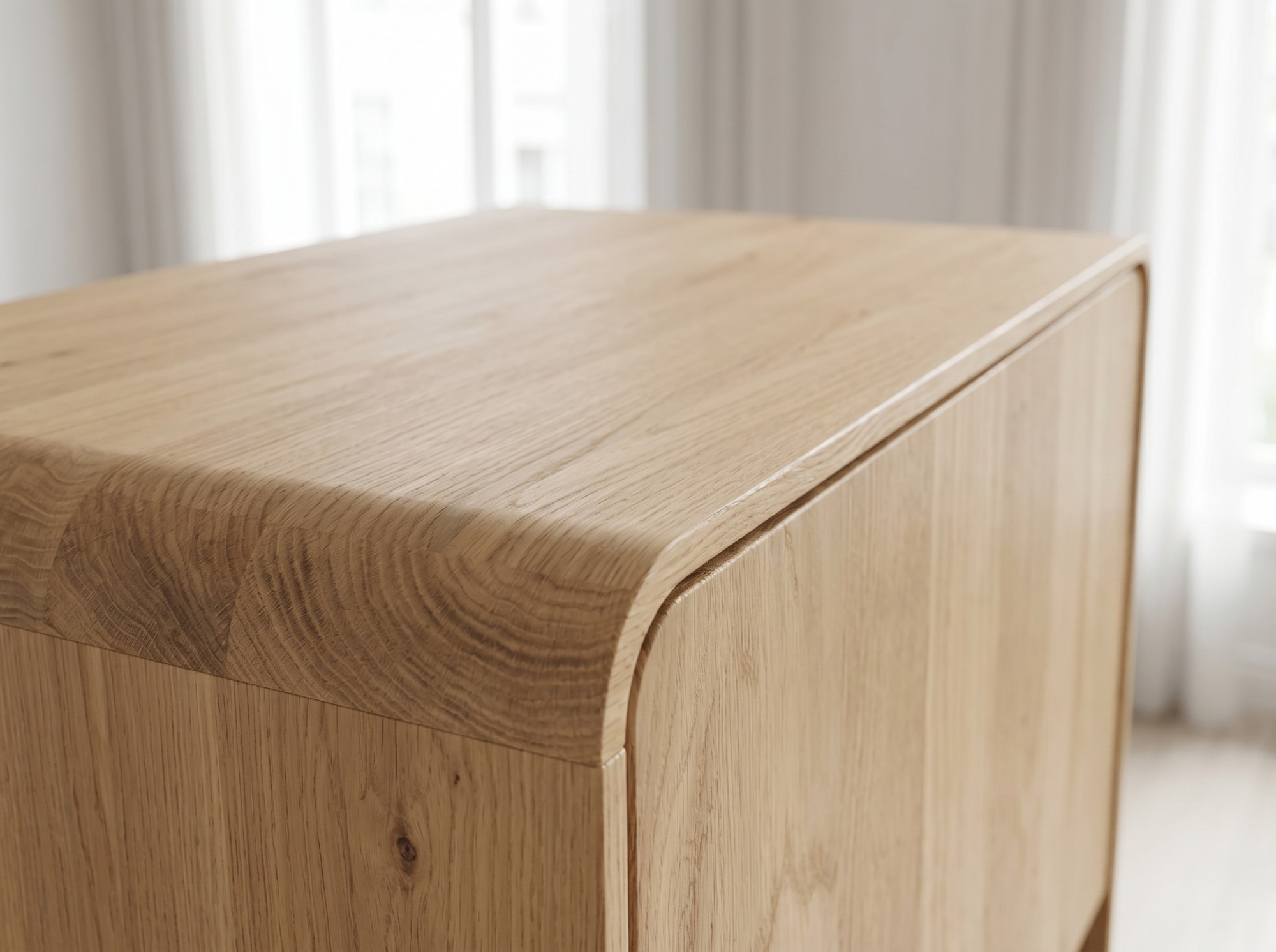 Neue Eichenmöbelkollektion 2024: Erleben Sie den Zauber modernen skandinavischen Designs mit unserer exklusiven Reihe, die 2024 auf den Markt gebracht wurde. Diese einzigartige Reihe verbindet minimalistische Ästhetik mit einer Auswahl ausschließlich natürlicher Materialien. Jedes Stück ist sorgfältig aus Eichenholz gefertigt, einschließlich der Seitenteile, inneren Rahmen, Oberplatten, Türen und Schubladen. Das Engagement für Details und Qualität zeigt sich in jedem Schritt, von sanft abgerundeten Ecken bis hin zu überdurchschnittlich starken Außenkanten von bis zu 2,5 cm, was zur außergewöhnlichen Widerstandsfähigkeit und Langlebigkeit unserer Möbel beiträgt. Besonderes Augenmerk gilt den abgerundeten Ecken, die den Möbeln einen Hauch von Luxus verleihen.