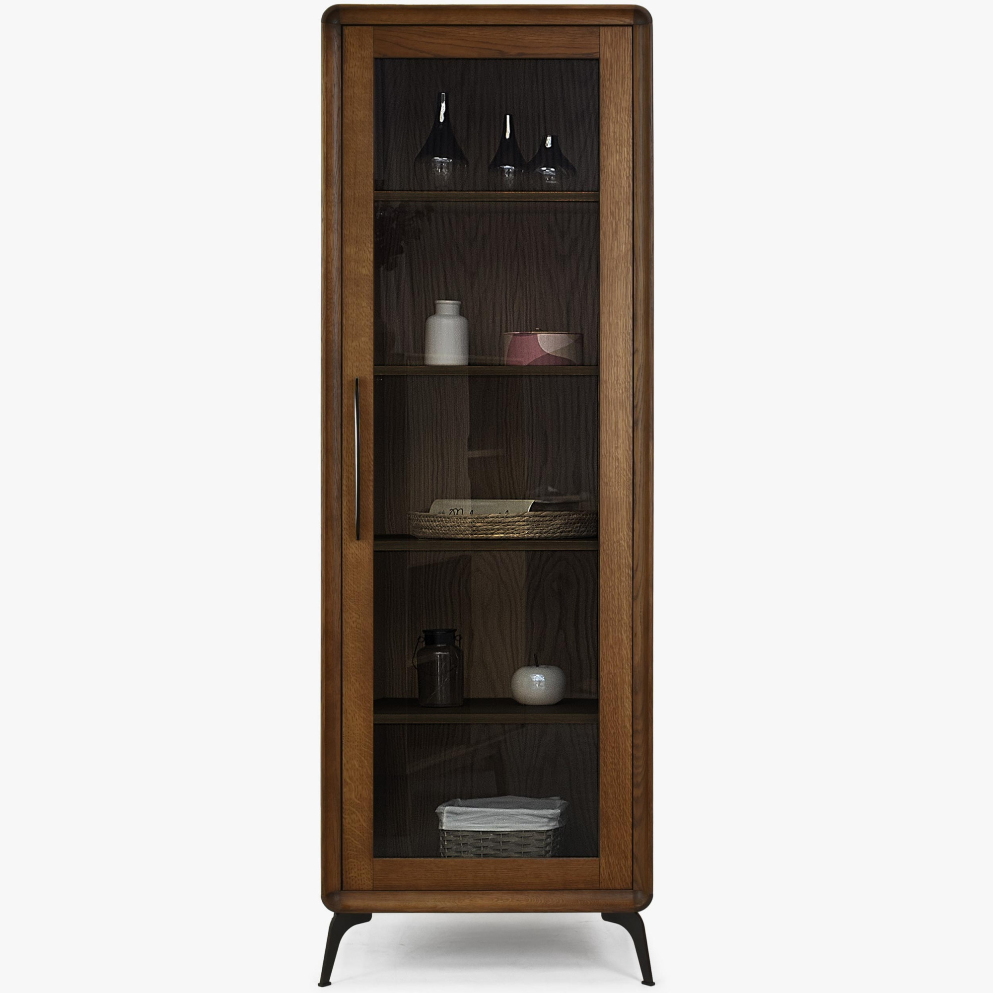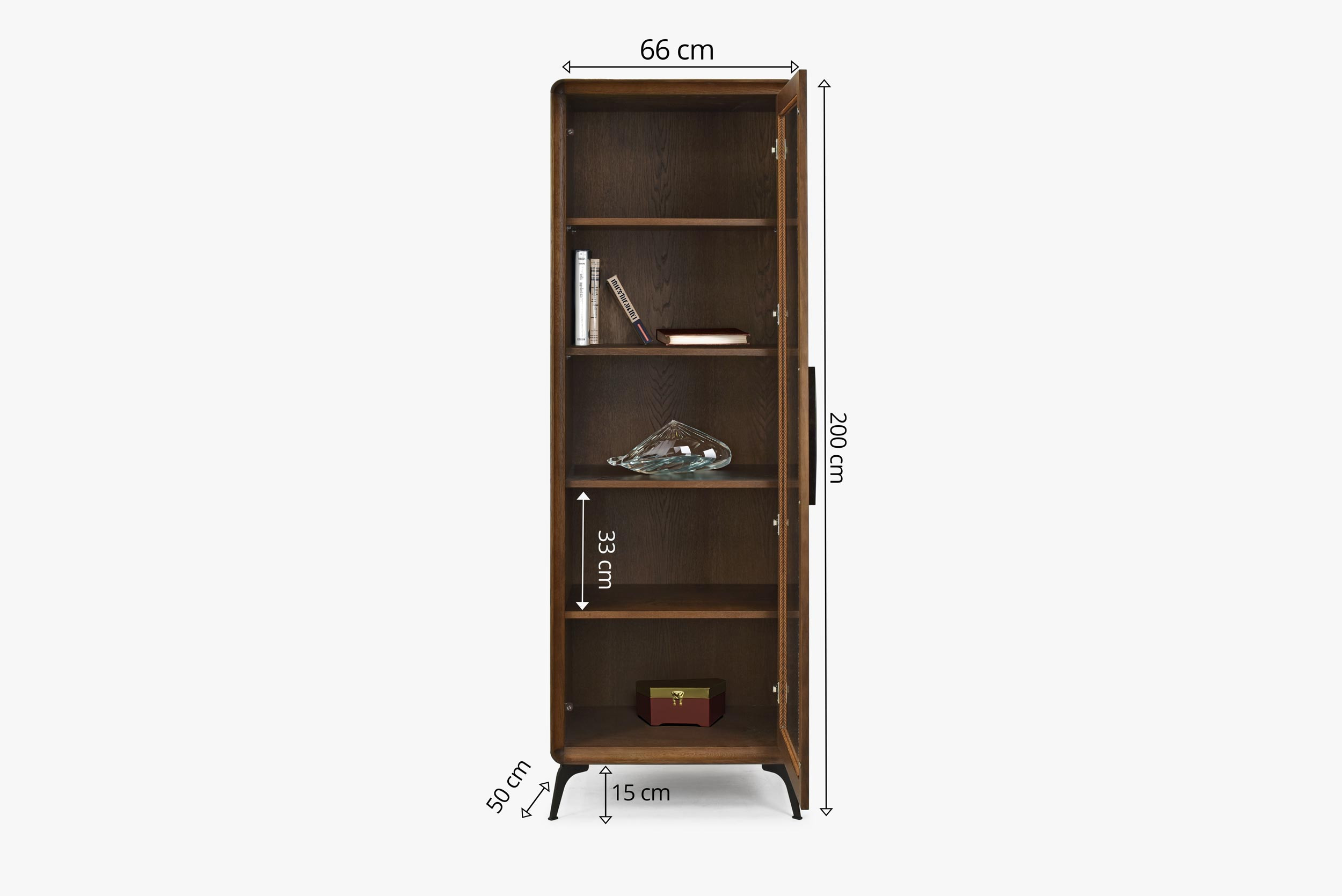 Einflügel-Vitrine aus Eichenholz Nussbaumfarben 200 cm
