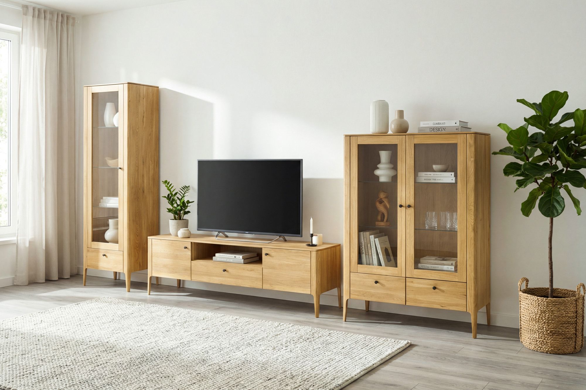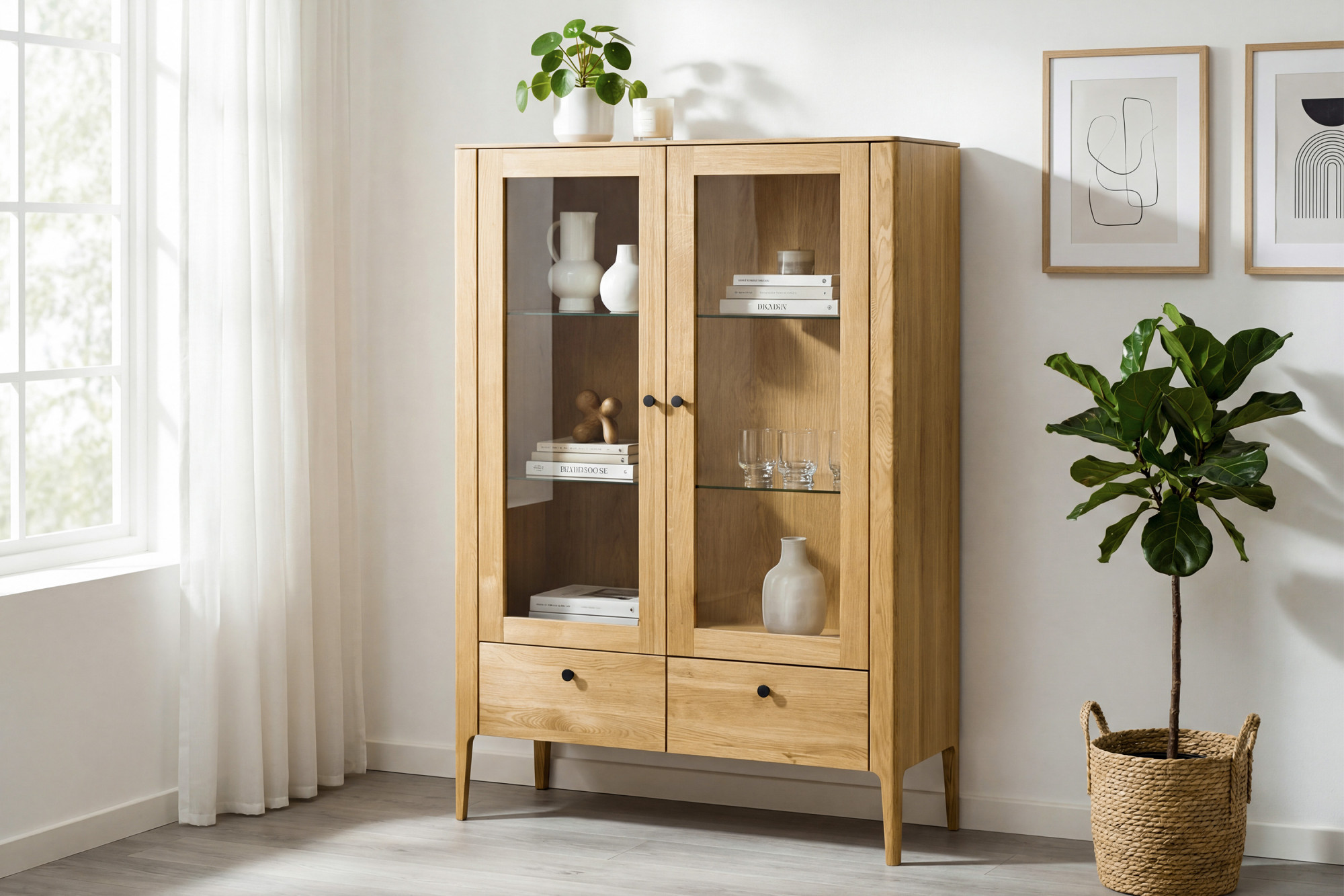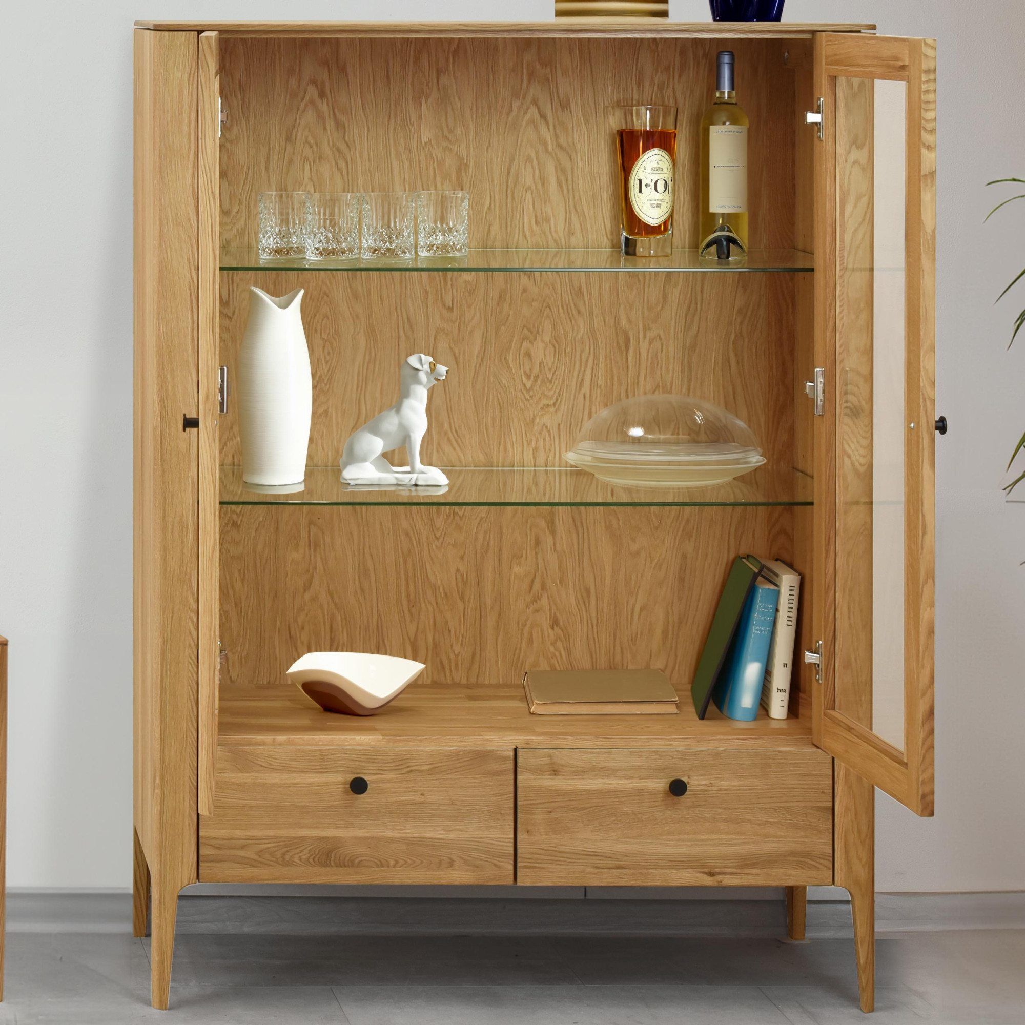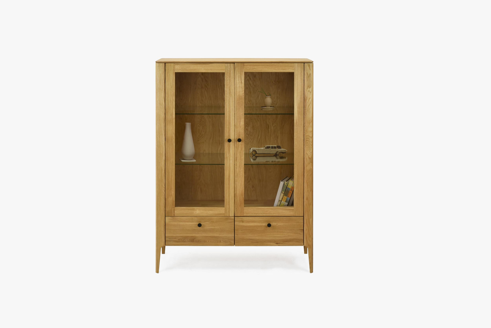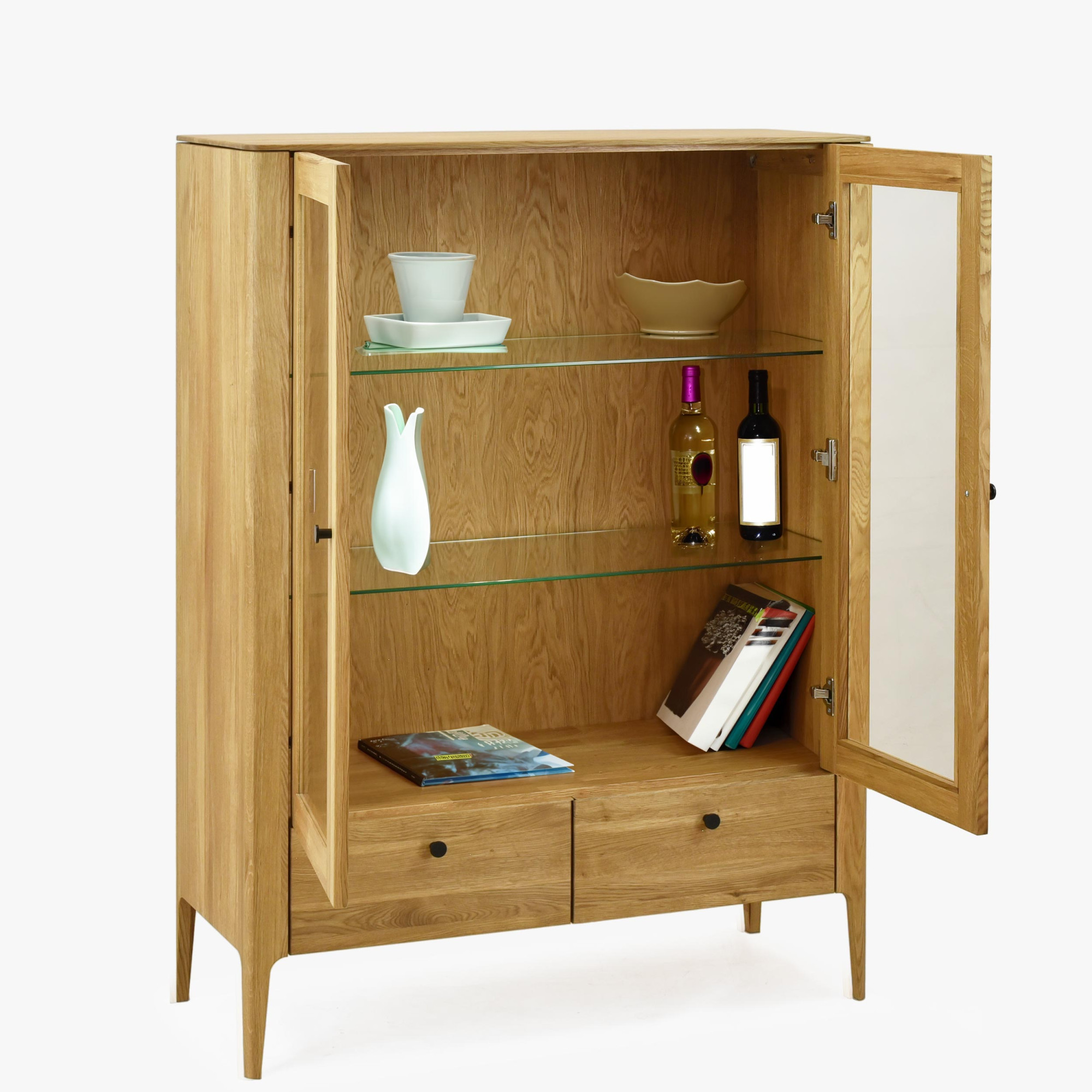 Zweittürige Vitrine aus massivem Eichenholz naturfarben