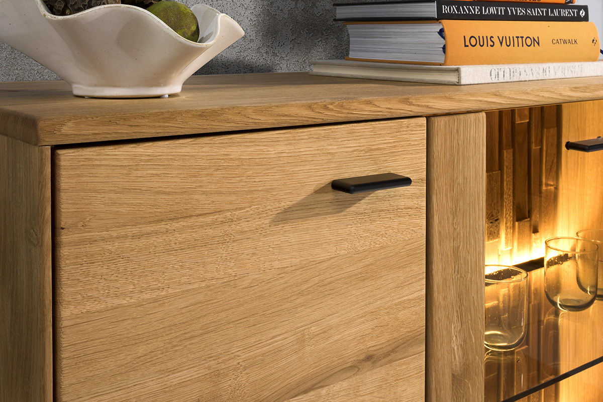 Unterbauvitrine Eiche mit Glastüren und Beleuchtung