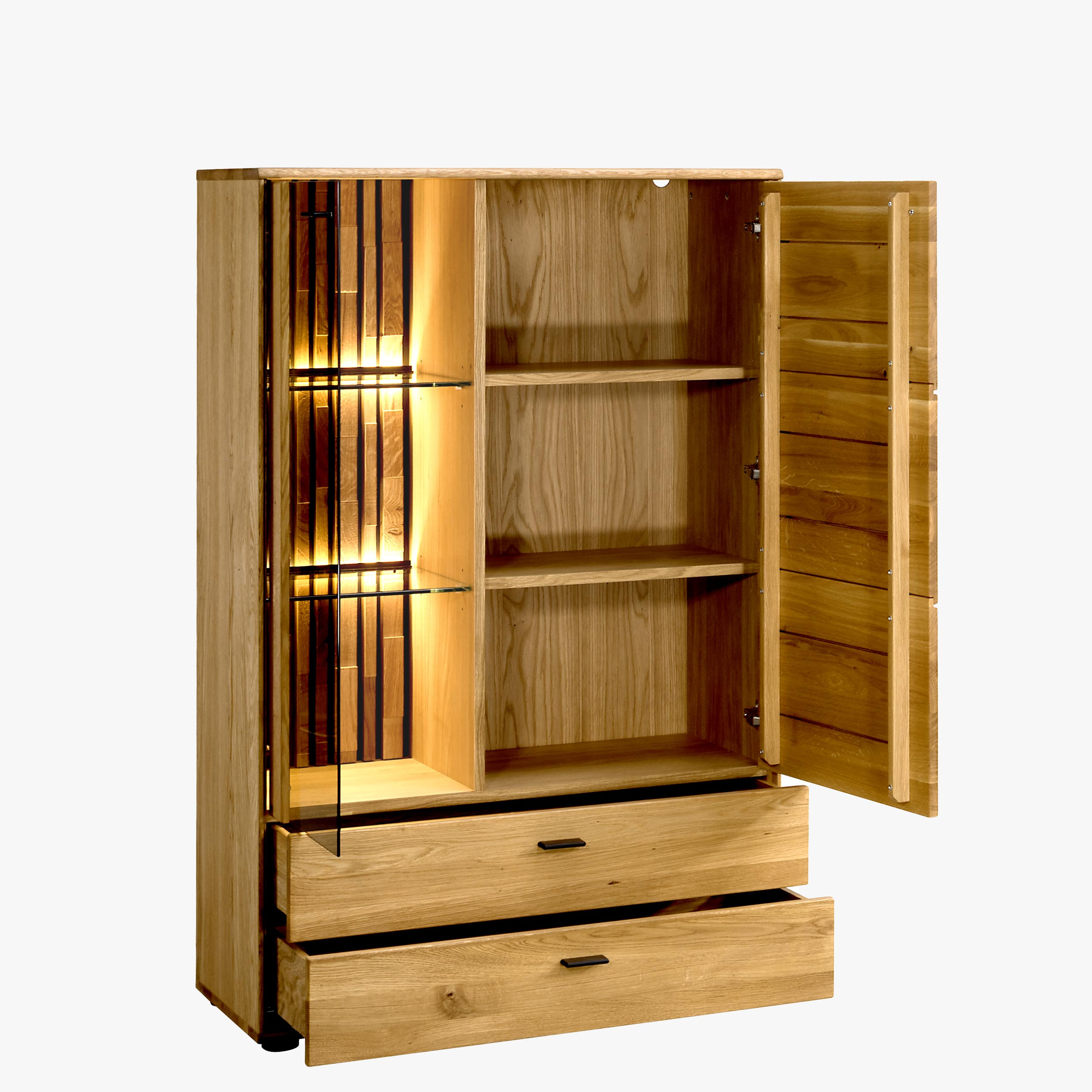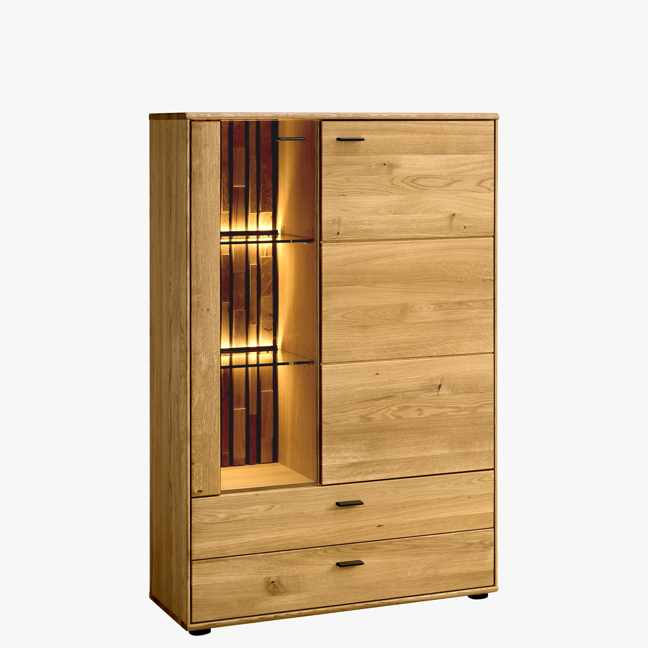 Hohe Kommode Eichenholz mit Glasfront modern 92x138x39 cm