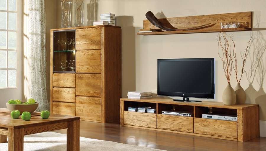 Die Möbel stammen aus der Kollektion Nice, wo Sie Kommoden, TV-Tische und Vitrinen finden. Esszimmer- und Wohnzimmermöbel sind in drei Farbtönen erhältlich: Eiche Öl natur, Eiche Bianco und Eiche in der Farbe Nussbaum. Sehen Sie sich die gesamte Kollektion hier an.