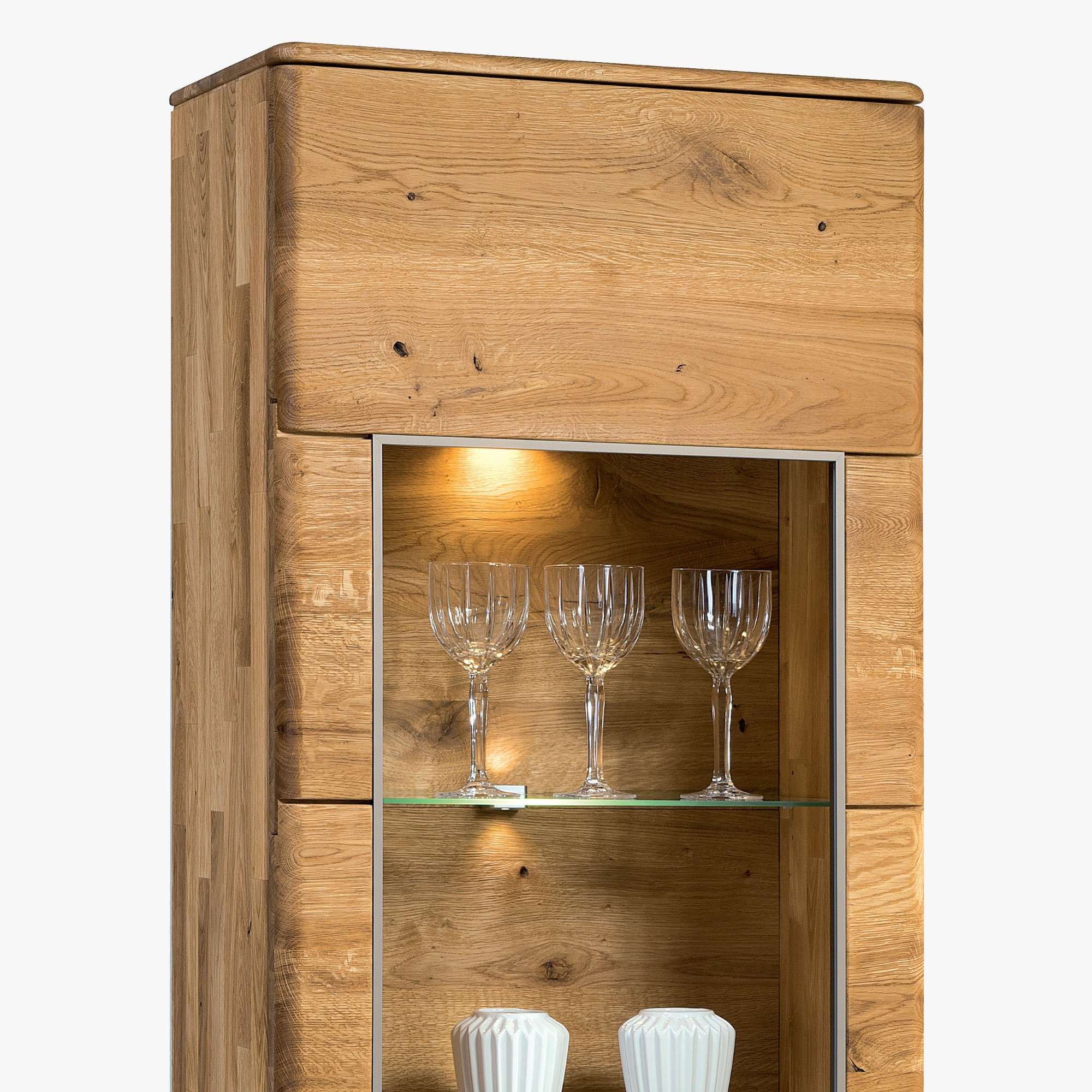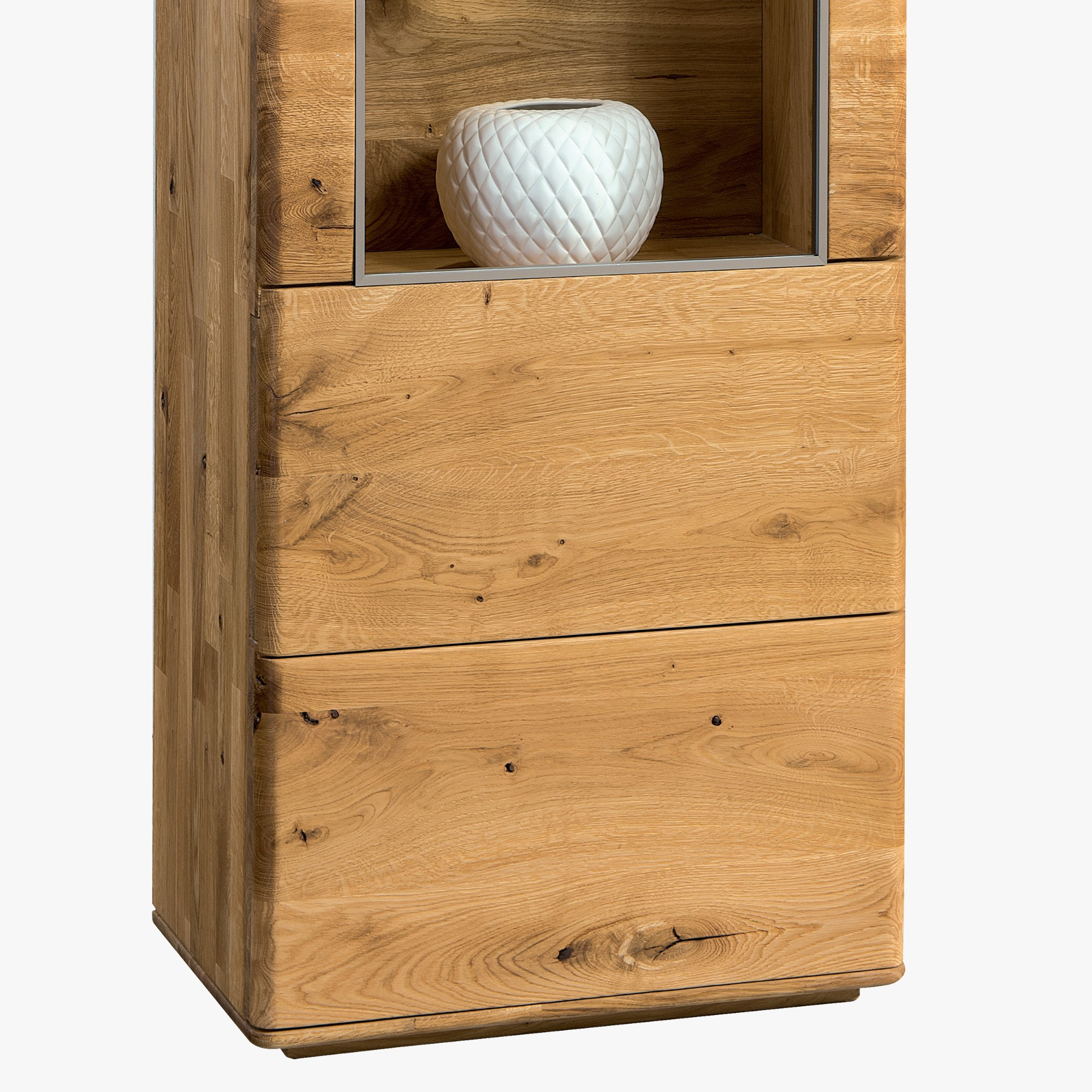 Massive Eichenholz Vitrine Modell 11 rechts naturfarben