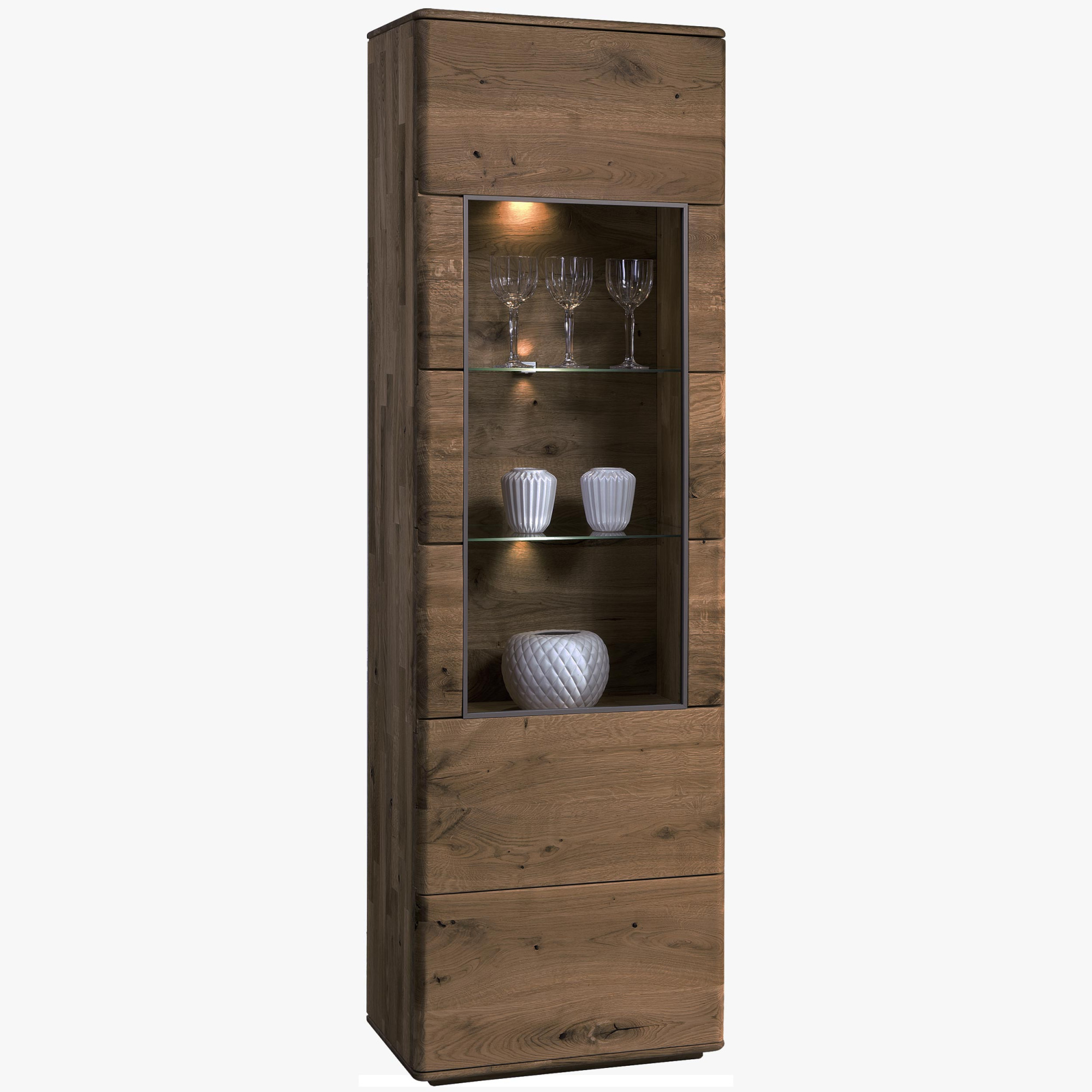 Schmale Vitrine Texas Eiche gebrannte Eiche mit Glastür