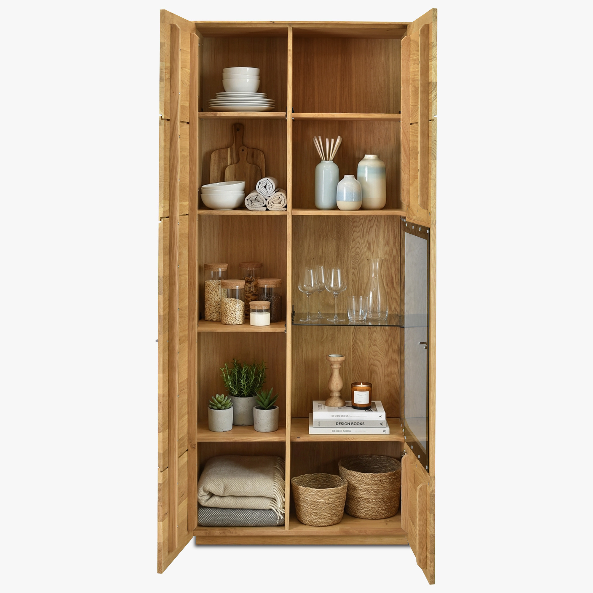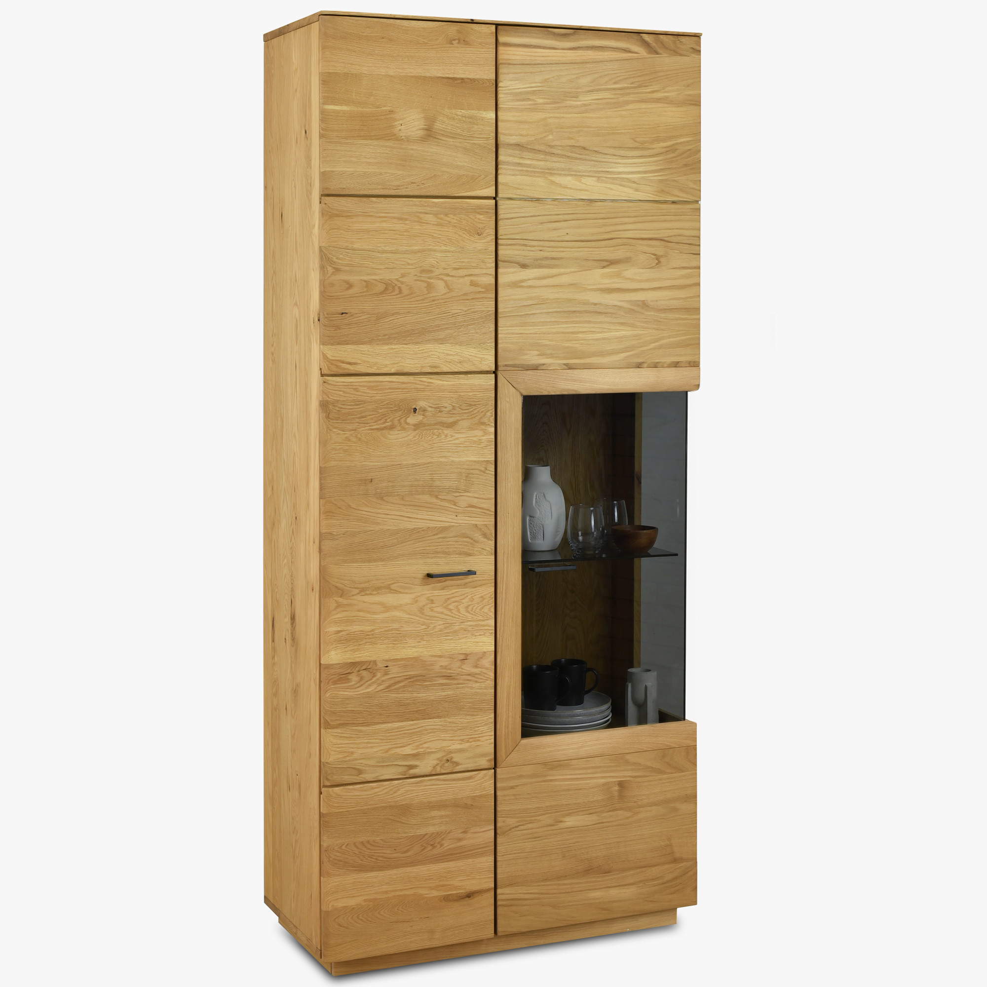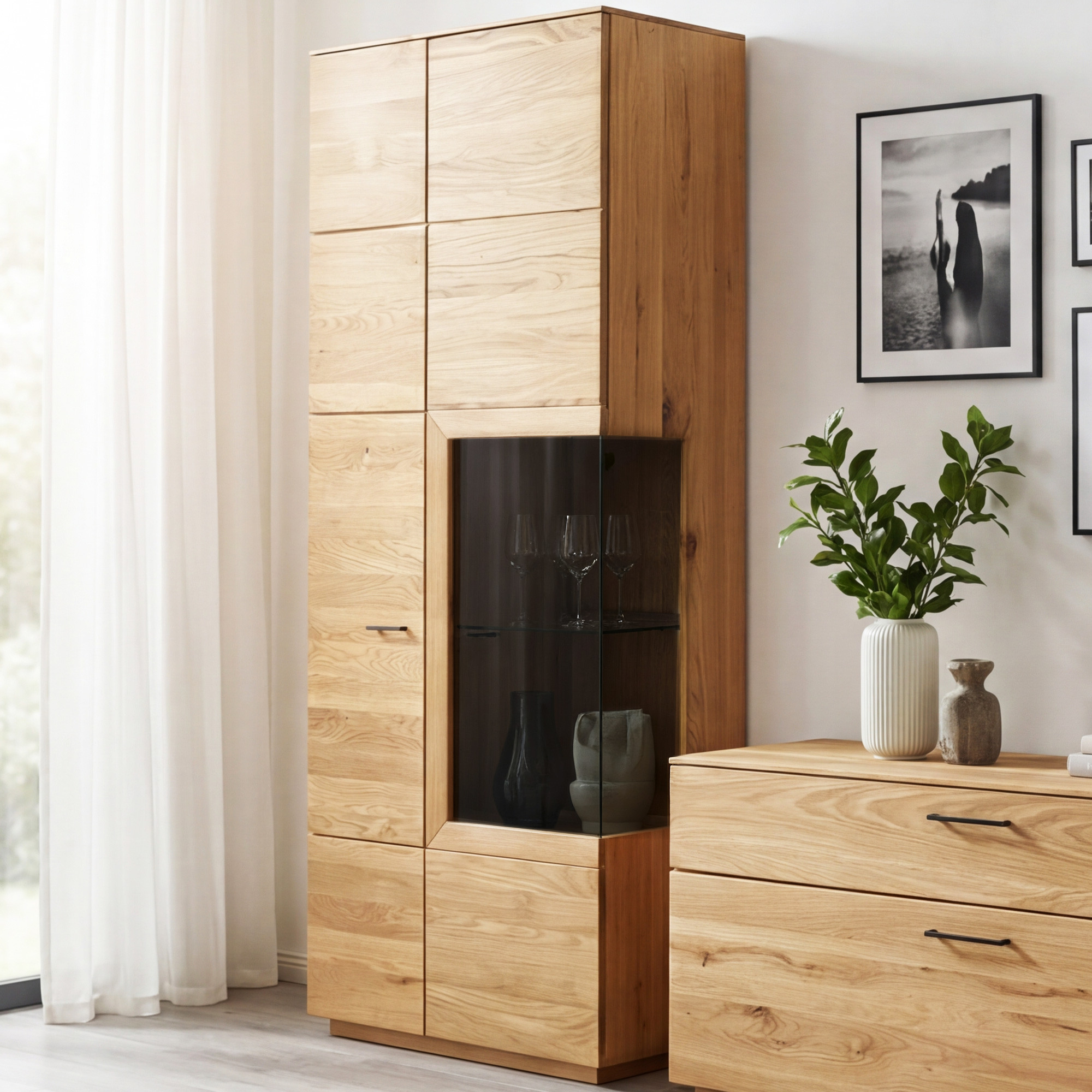 Hohe Eichenvitrine mit Glas – für Wohnzimmer oder Esszimmer