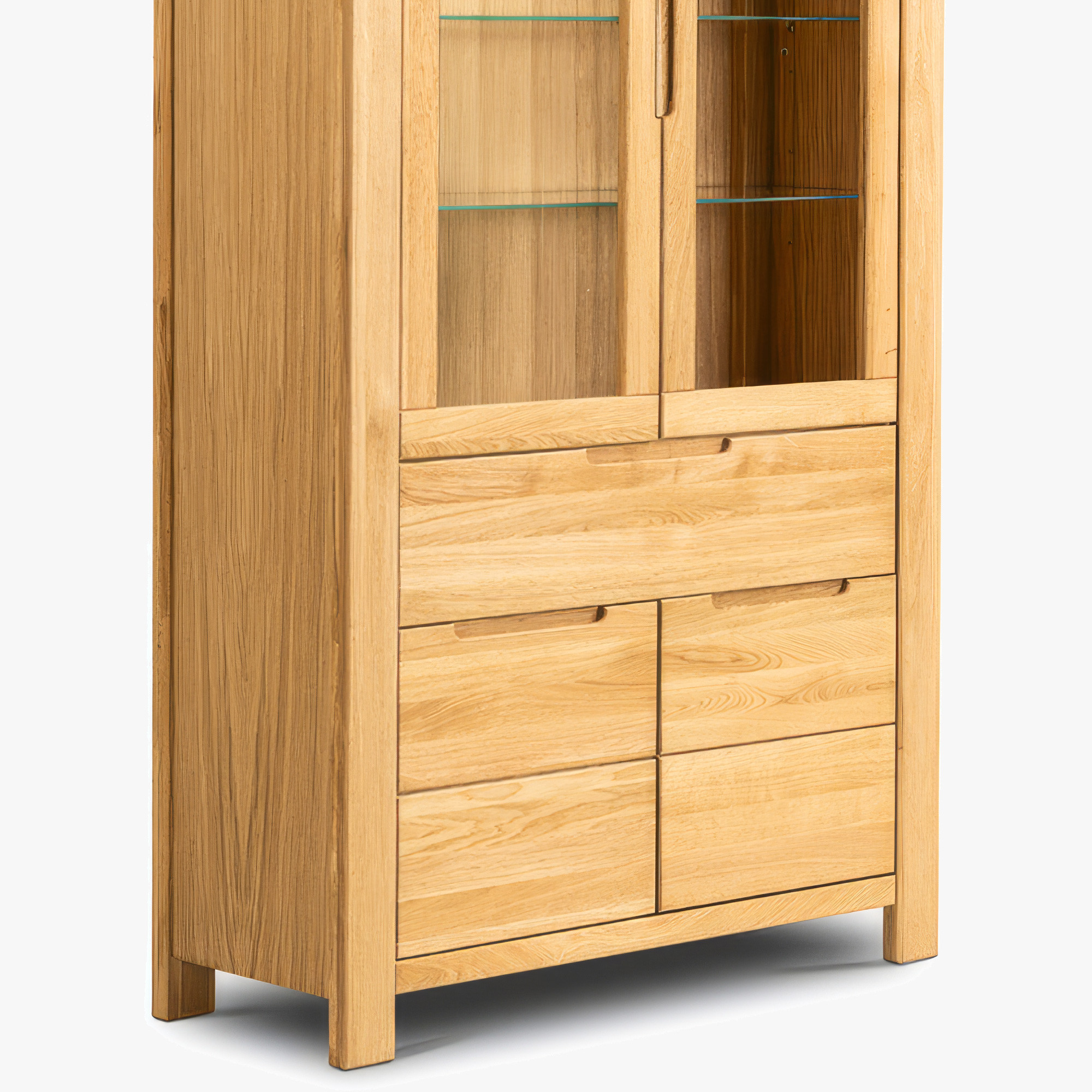 Eiche Vitrine 2D mit Glastüren und festen Türen