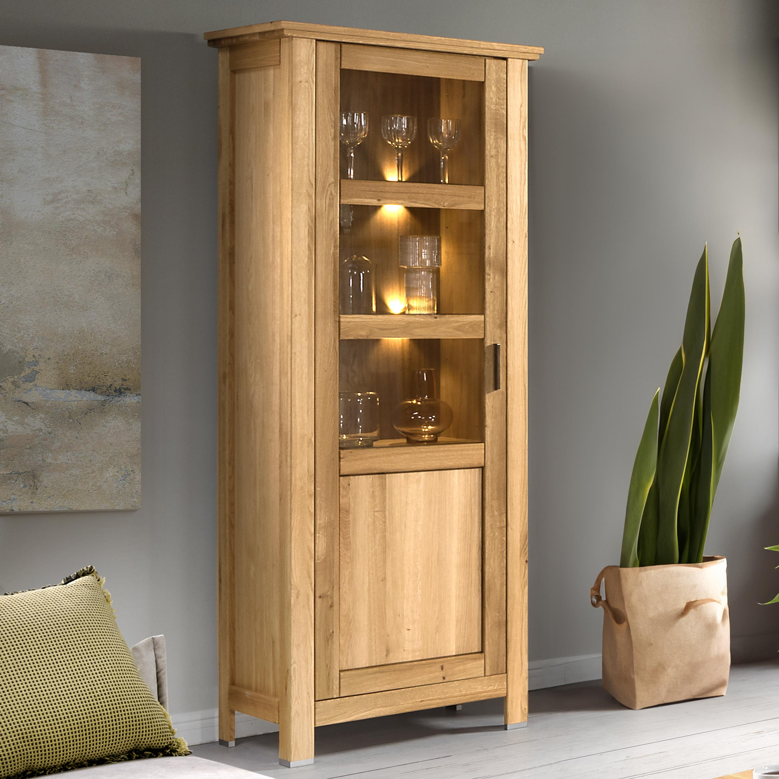 Massivholz Vitrine aus Eiche mit Tür links – robustes Holzmöbel, naturfarben