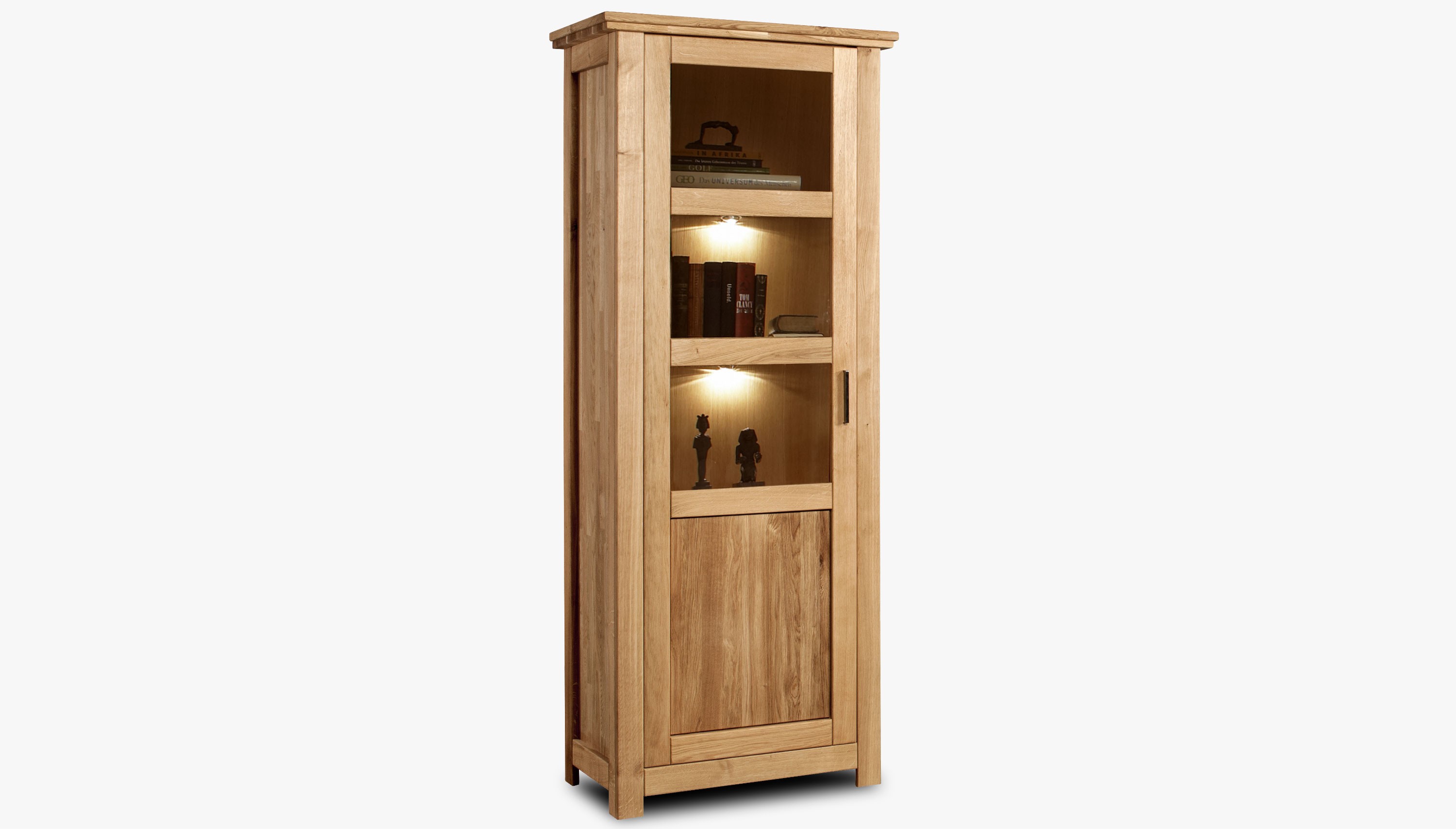 Eiche Massivholz-Vitrine mit einer Tür – links