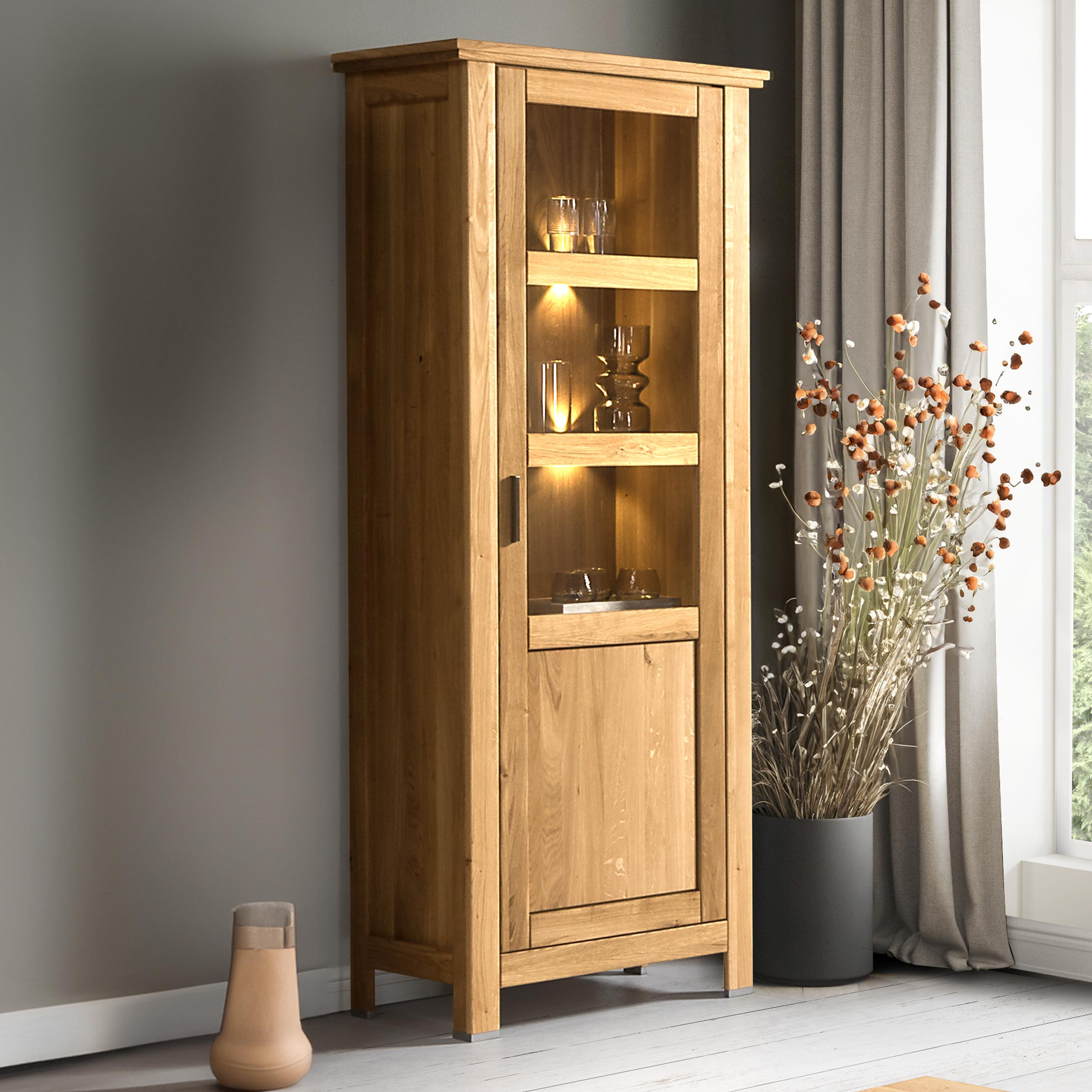 Eichen Massivholz-Vitrine eintürig - rechts