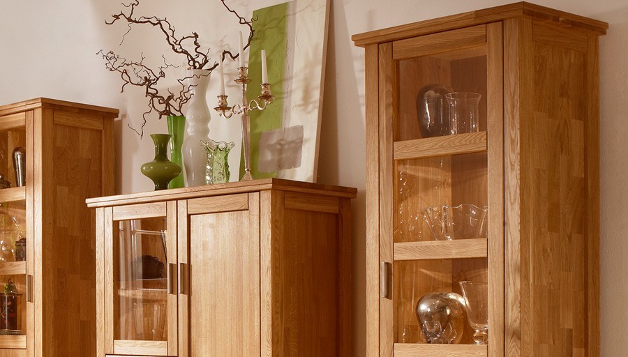 Verschönern Sie Ihr Interieur mit einer eleganten Luxusvitrine aus massivem Eichenholz! Sie erhalten nicht nur geschickt unterteilten Stauraum, sondern vor allem ein robustes Möbelstück, das sich dank seiner erstklassigen Qualität und außergewöhnlichen Eigenschaften zum Erbe für kommende Generationen entwickelt.