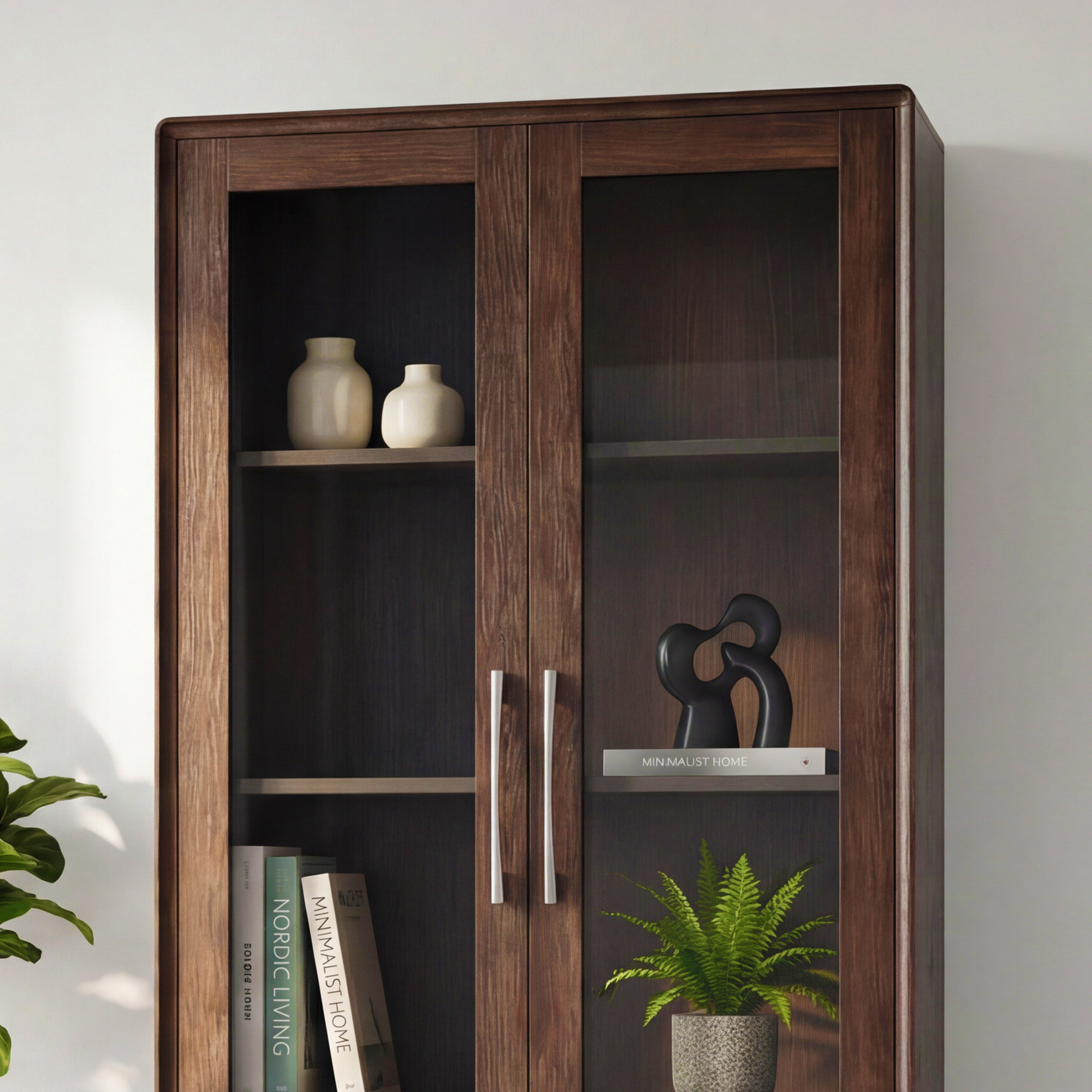 Design-Vitrine aus Eichenfurnier mit Glastüren Nussbaum 95