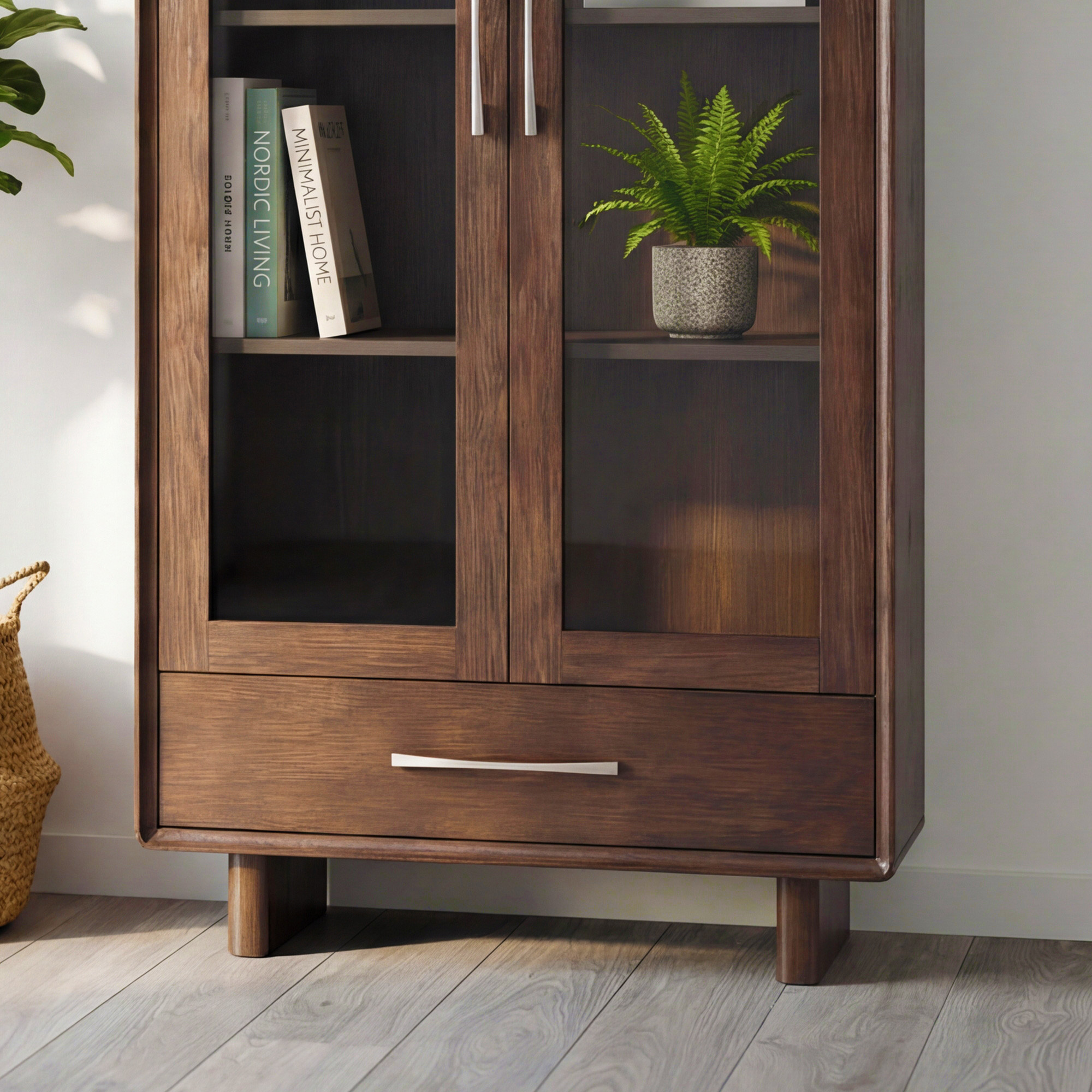 Design-Vitrine Koper mit Glastüren und Schublade in Nussbaumfarbe – 95 cm