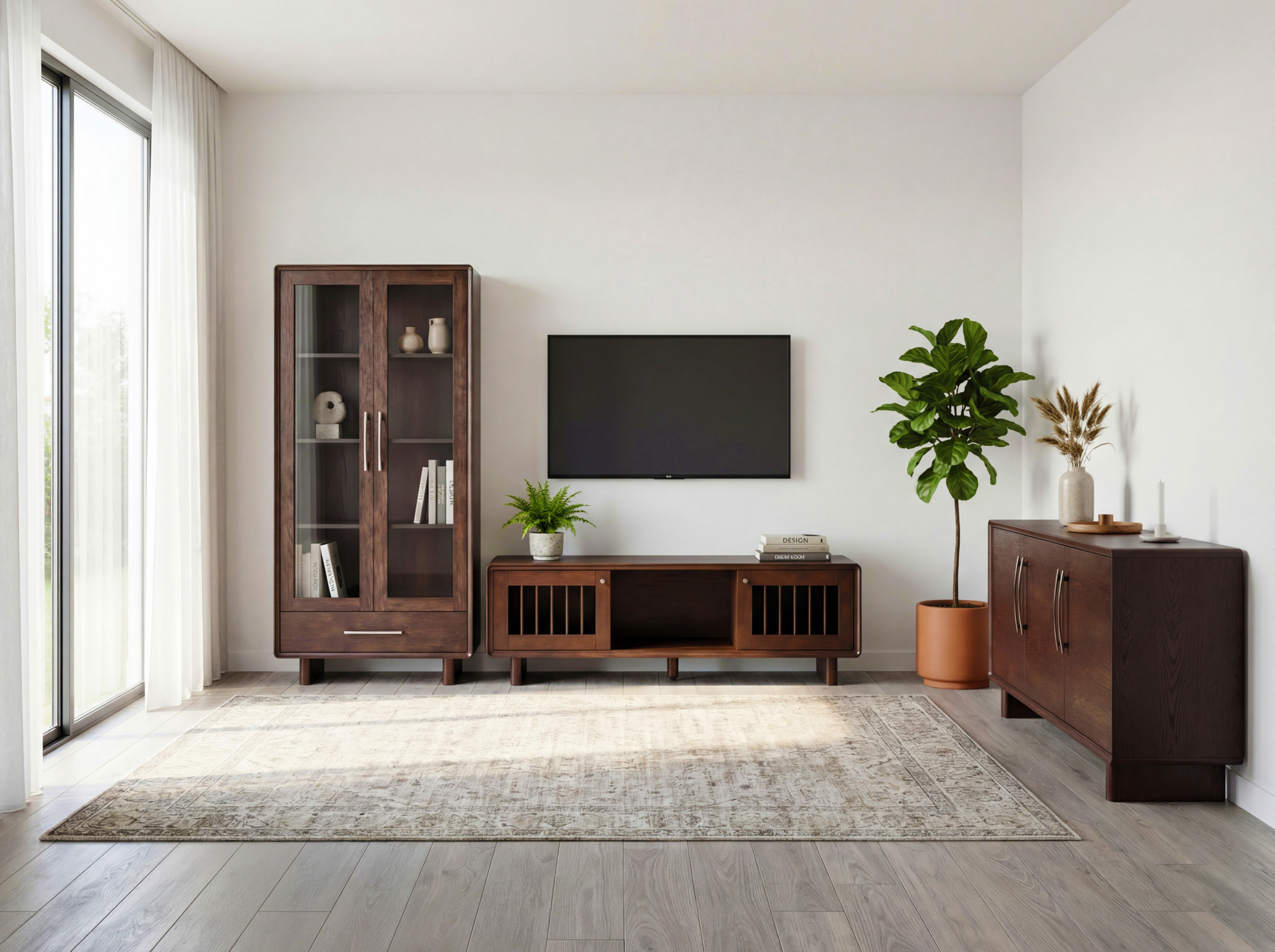 Ja, die Vitrine ist Teil der Koper Kollektion. Sie können sie hervorragend mit weiteren Stücken dieser Kollektion kombinieren – Kommoden, Konsolentische oder TV-Möbel im gleichen Design. - Wie erfolgt die Lieferung?