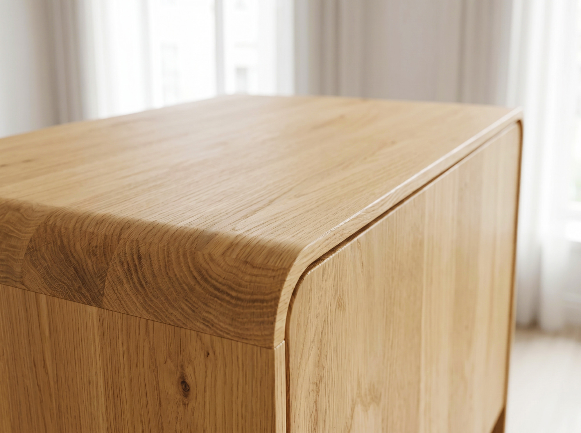- Oberflächenbehandlung mit naturbelassenem Öl, das die Maserung des massiven Eichenholzes betont