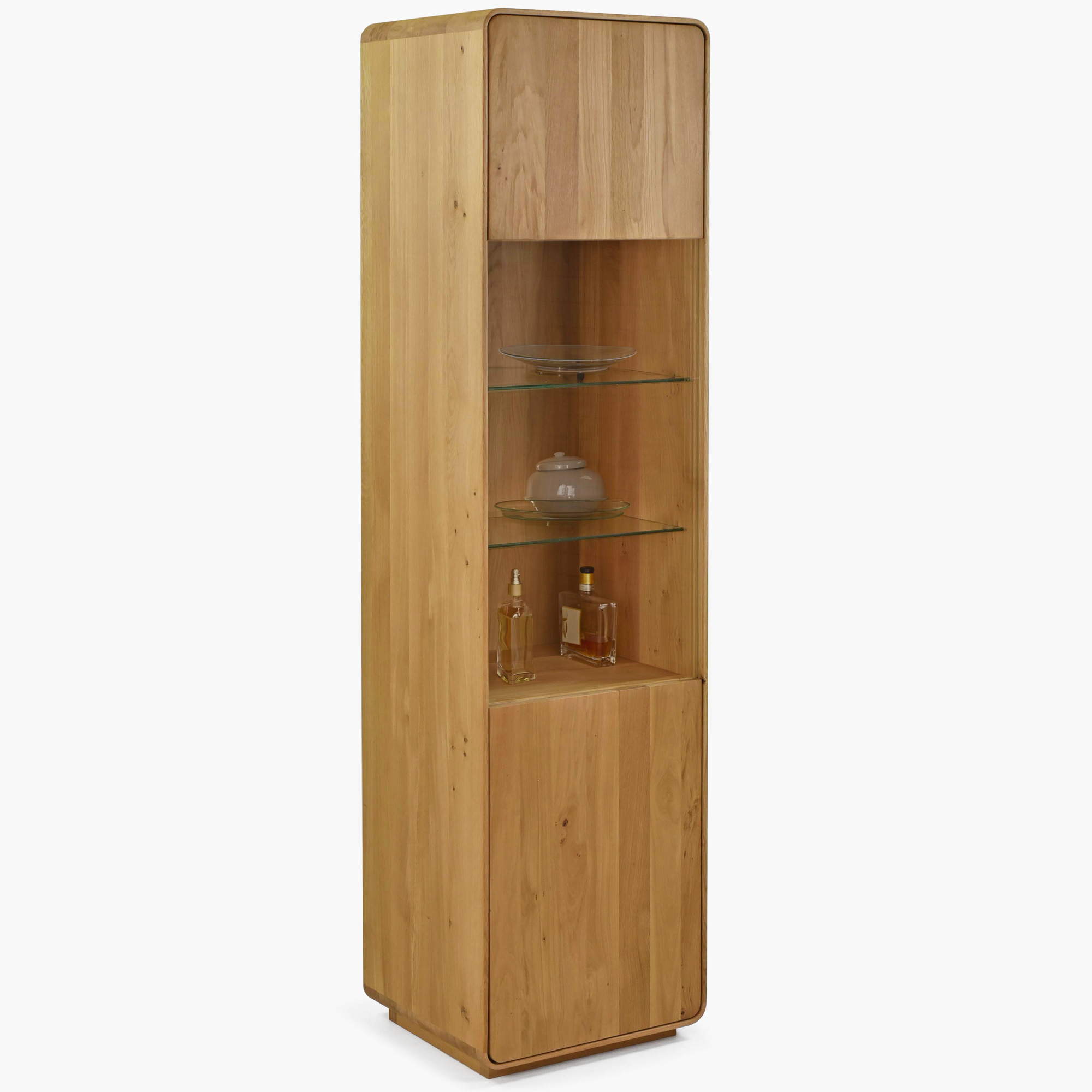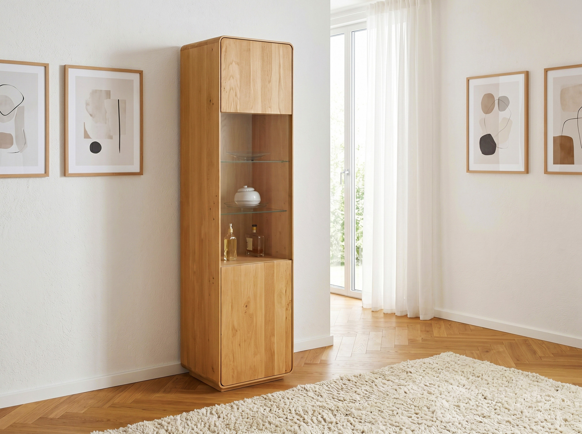 Massive Eichen-Vitrine Avalon 200 cm hoch mit Glas in Eiche Natur
