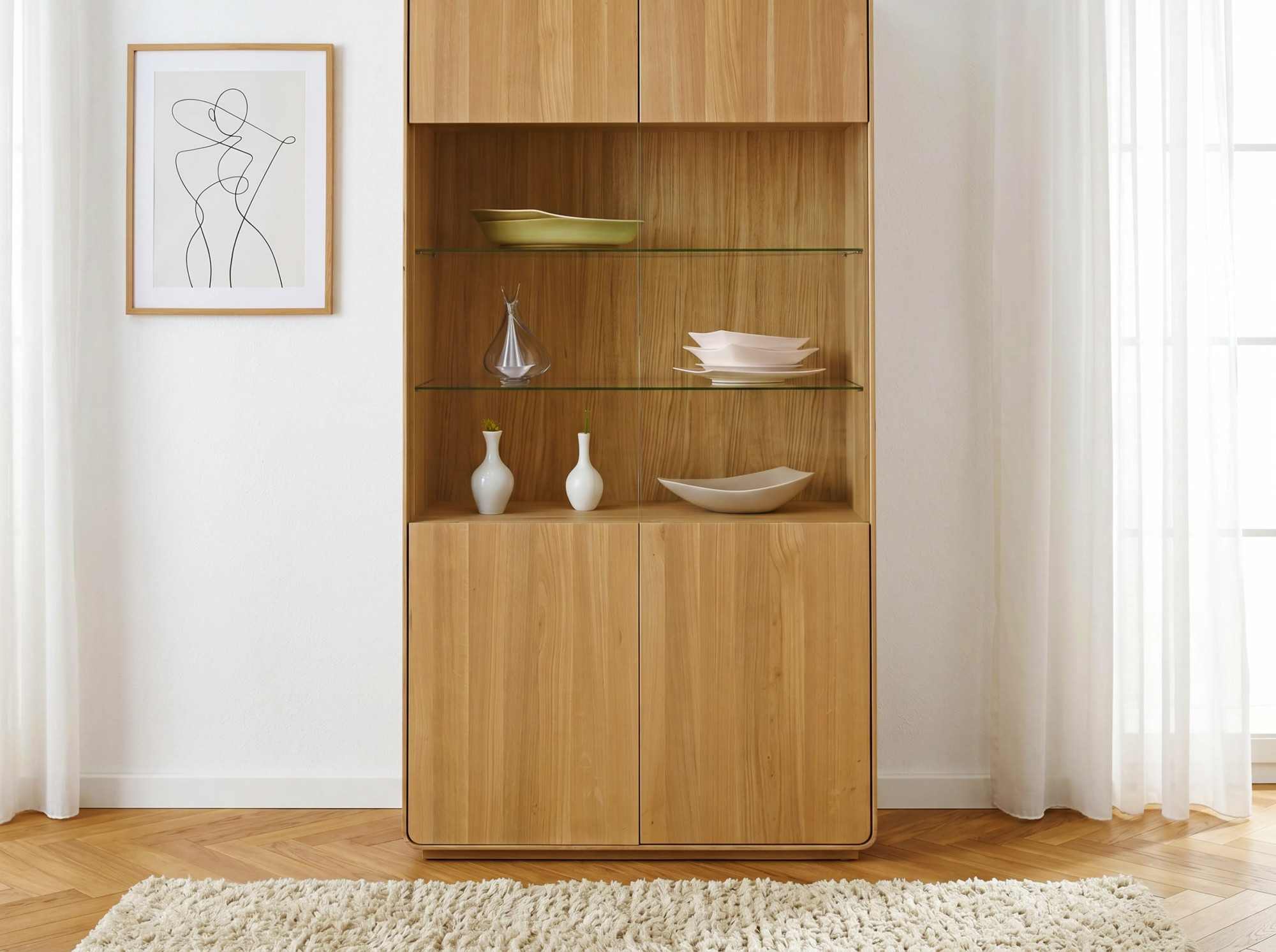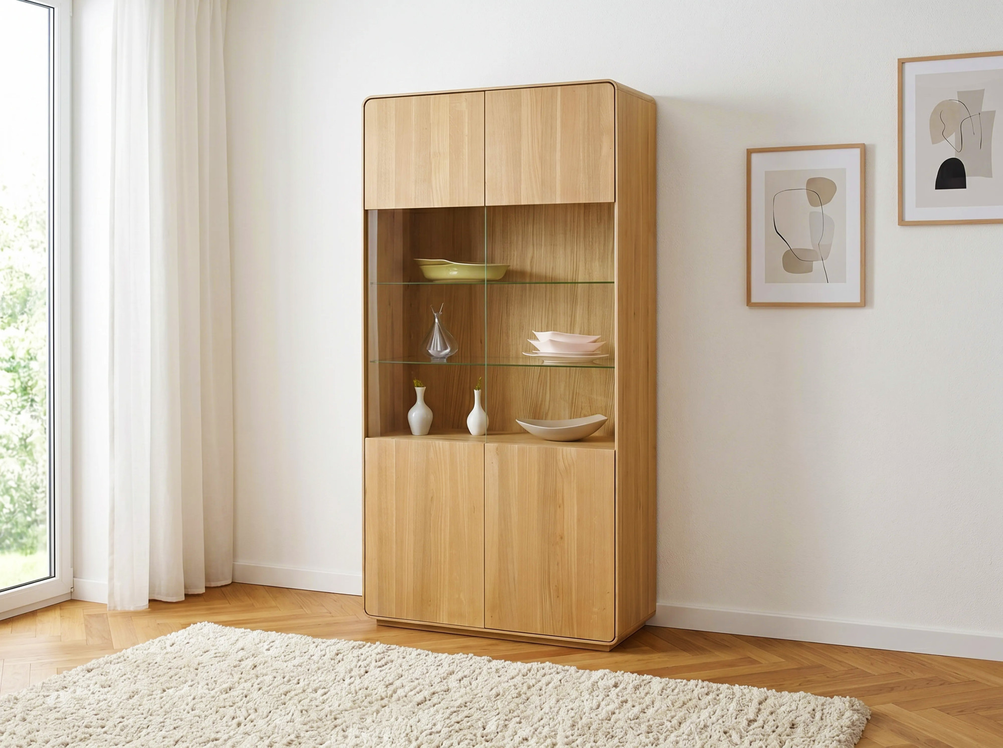 Massive Eichen-Vitrine Avalon 2-türig 198 cm mit Glas Eiche natural