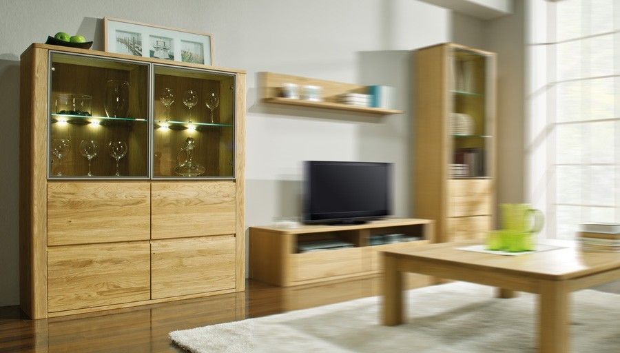 Die Möbel stammen aus der Kollektion Nice, in der Sie Kommoden, TV-Tische und Vitrinen finden. Möbel für Ess- und Wohnzimmer sind in drei Farben erhältlich: Eiche natur geölt, Eiche bianco und Eiche in Nussbaumfarbe. Hier die gesamte Kollektion ansehen.