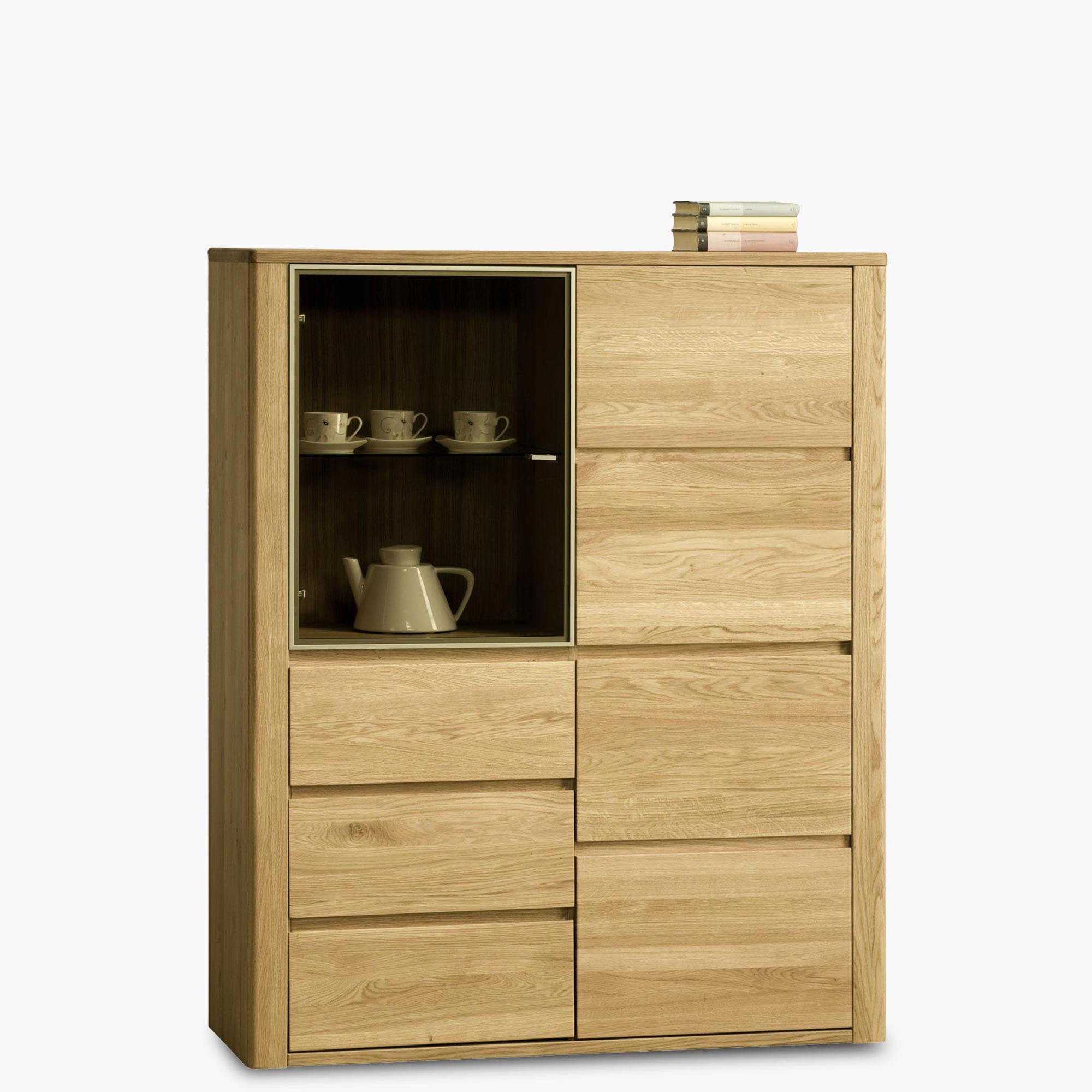 Die Möbel stammen aus der Kollektion Nice, in der Sie Kommoden, TV-Tische und Vitrinen finden. Möbel für Ess- und Wohnzimmer sind in drei Farben erhältlich: Eiche geölt natur, Eiche Bianco und Eiche in Nussbaumfarbe. Hier die gesamte Kollektion ansehen.