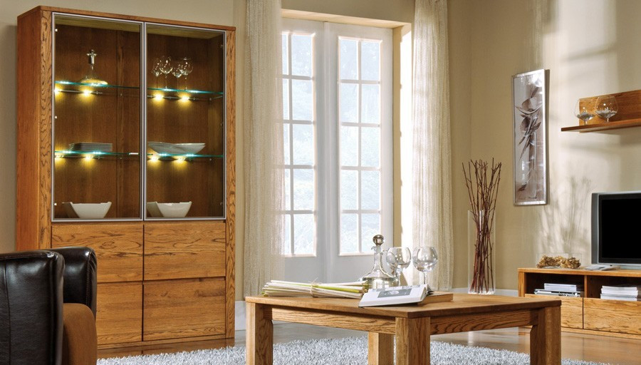Wissen Sie nicht, wohin mit dem wertvollen Essgeschirr von Ihrer Großmutter? Schaffen Sie dafür einen wirklich luxuriösen Platz und betonen Sie dessen Bedeutung in der zweiturigen Vitrine aus Eiche! So erhalten Sie nicht nur jede Menge Stauraum, der im Haushalt immer nützlich ist, sondern vor allem wirklich luxuriöse Eichmöbel, die sich dank ihrer außergewöhnlichen Qualität und Eigenschaften zum Erbe für weitere Generationen entwickeln.