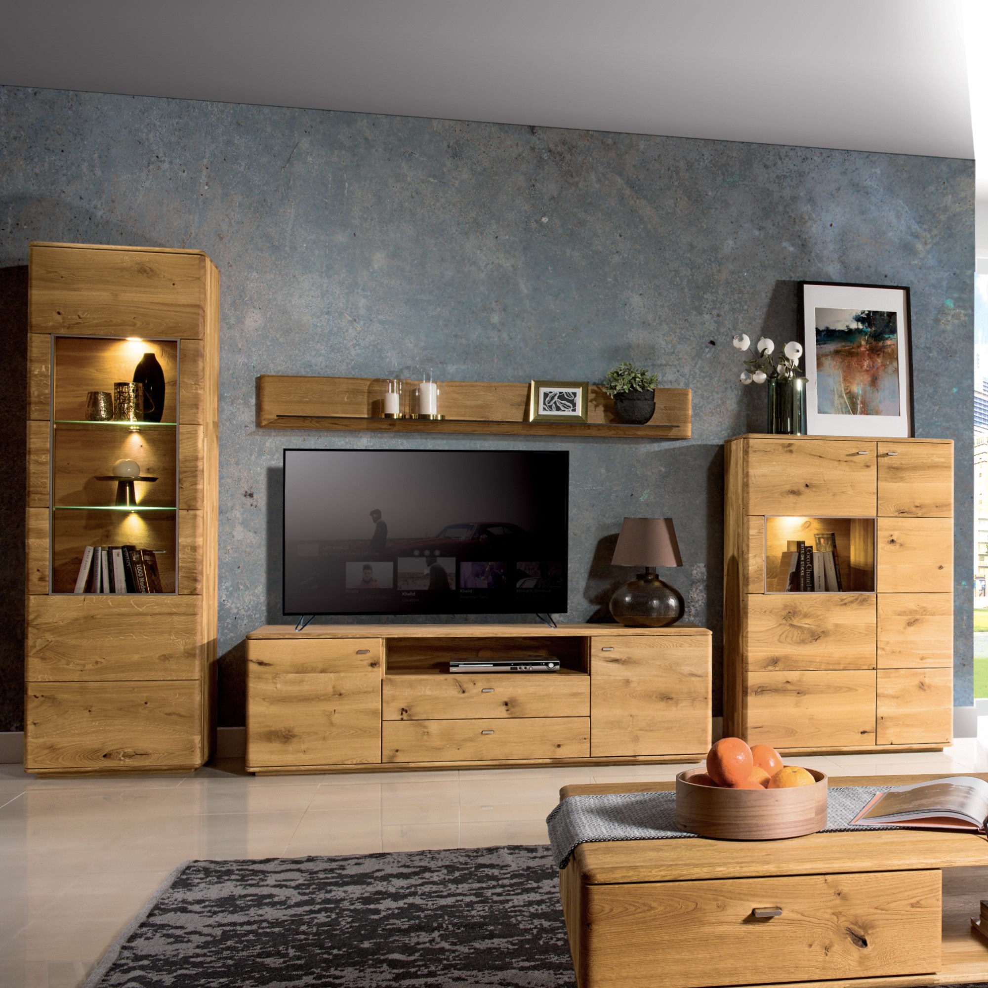 Massive Eichenholz Wohnwand Texas Retro Stil naturfarben