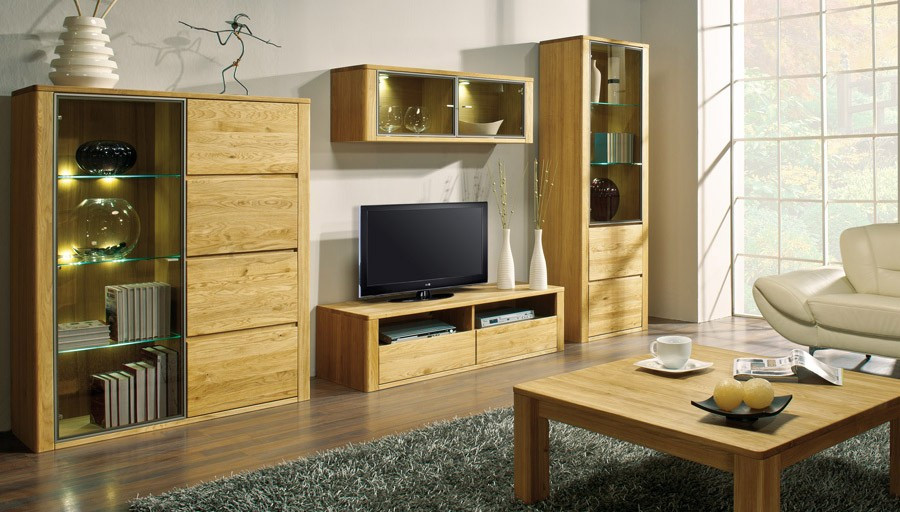 Moderner Wohnzimmerschrank Eiche massiv 4-teilig natur