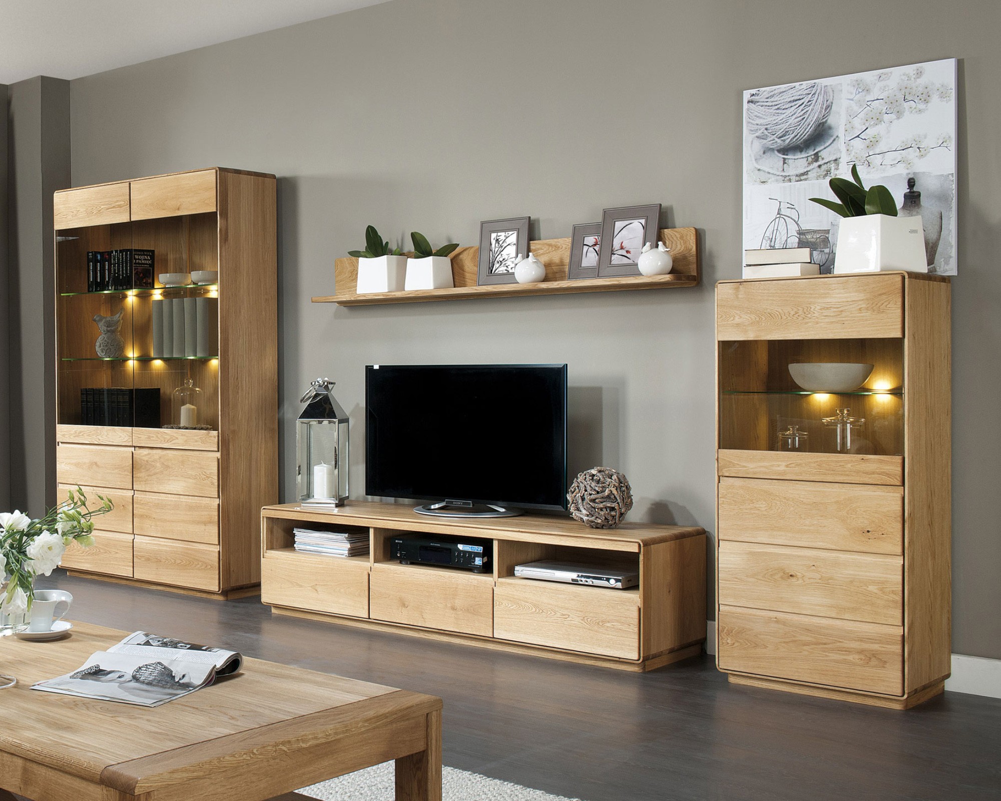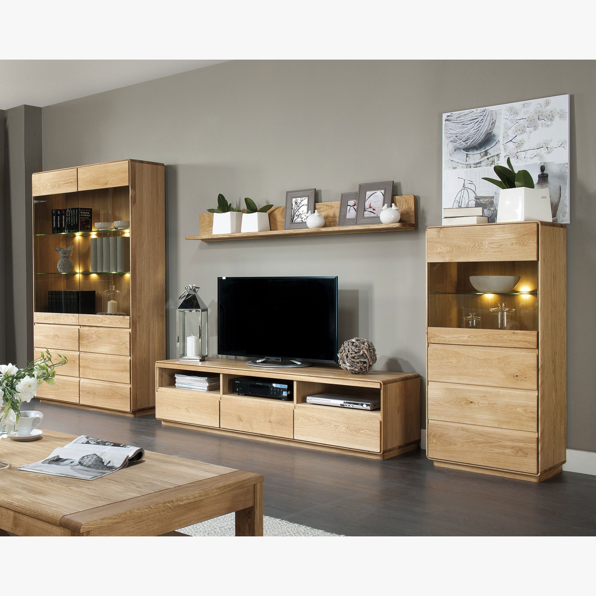 Moderne Wohnwand Helsinki Eiche Massivholz Wohnzimmerschrank