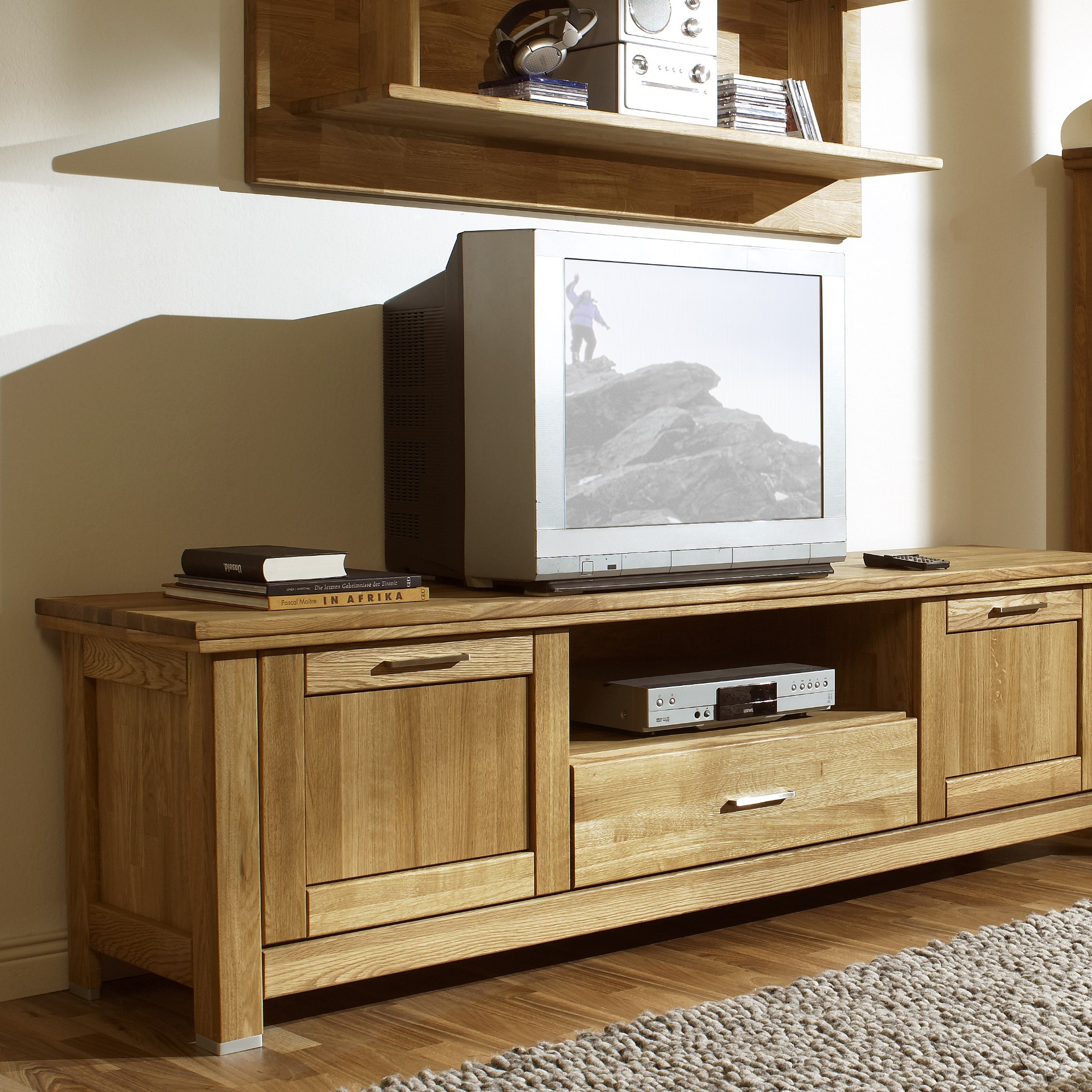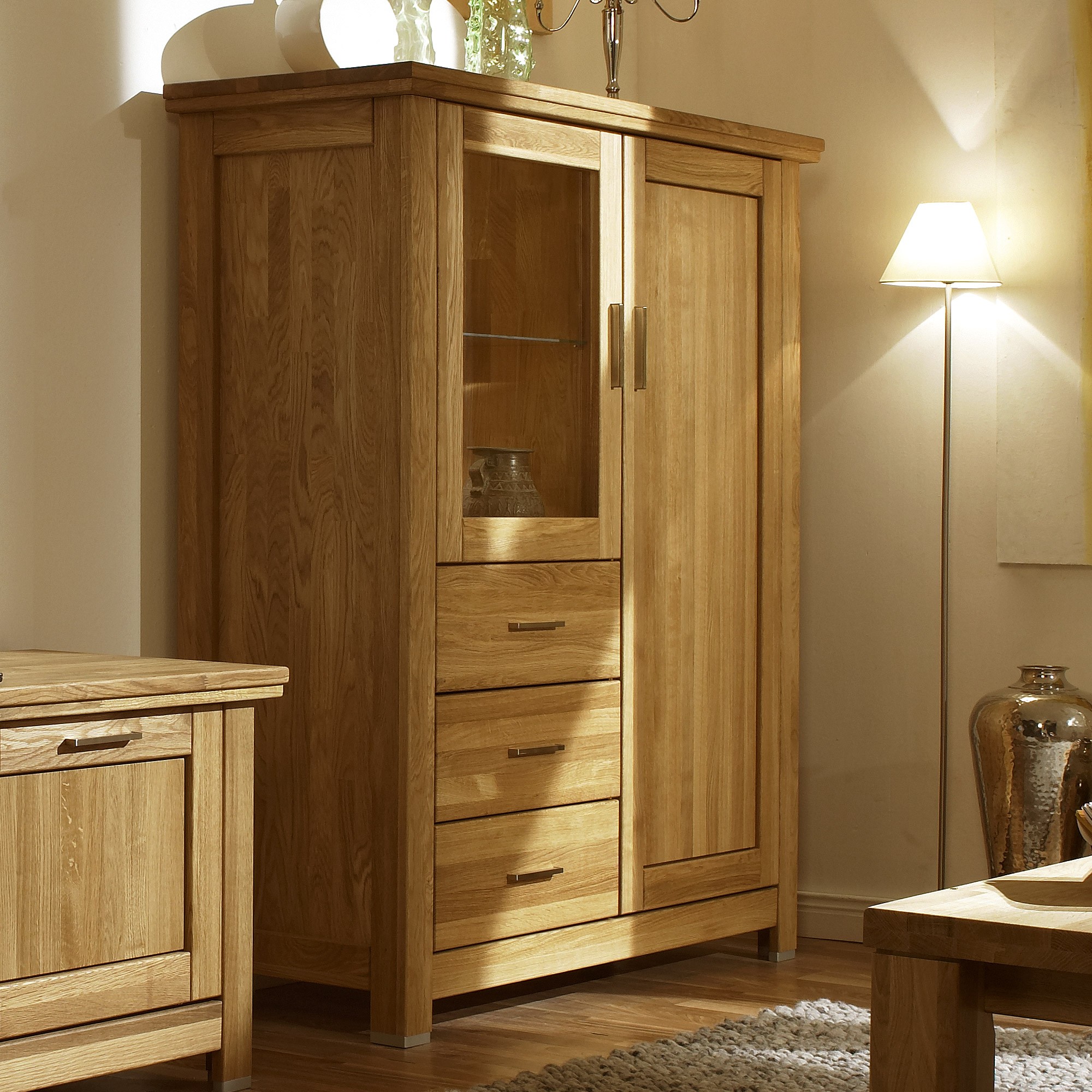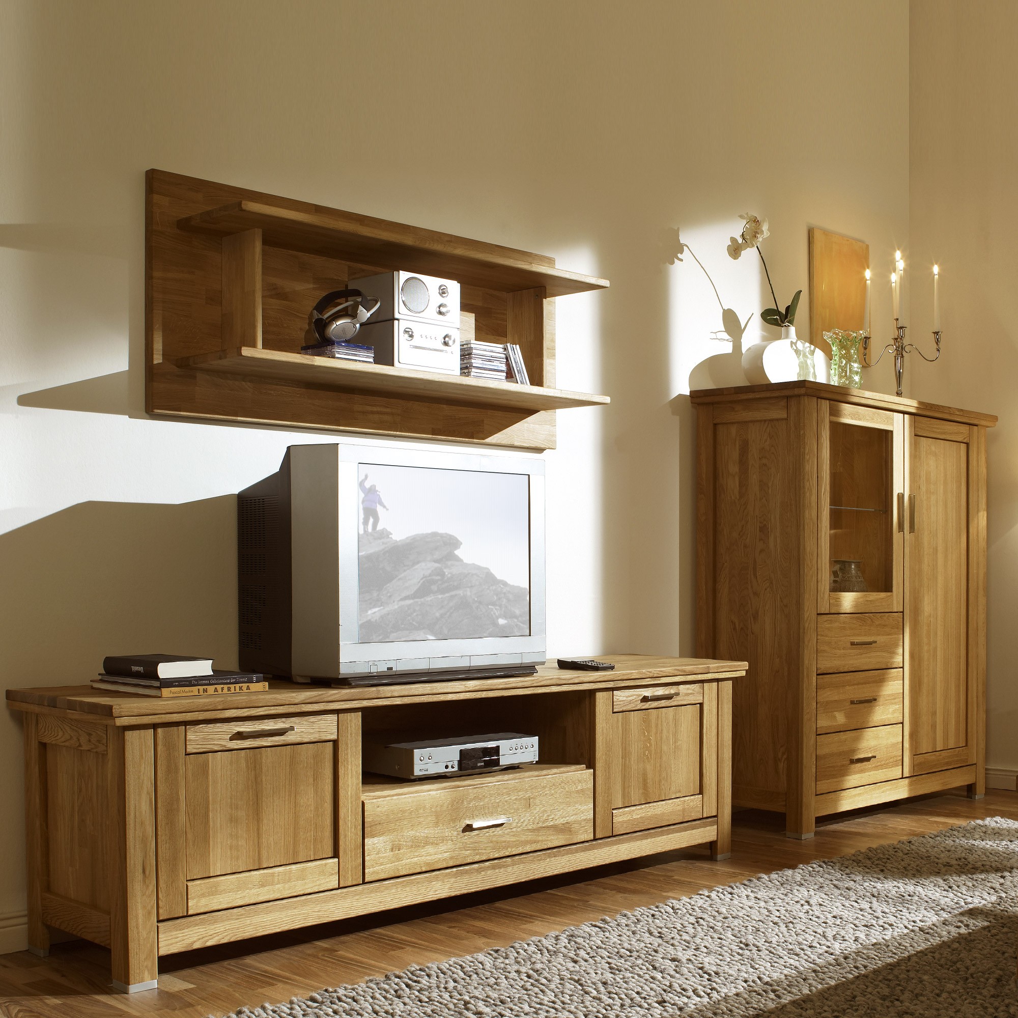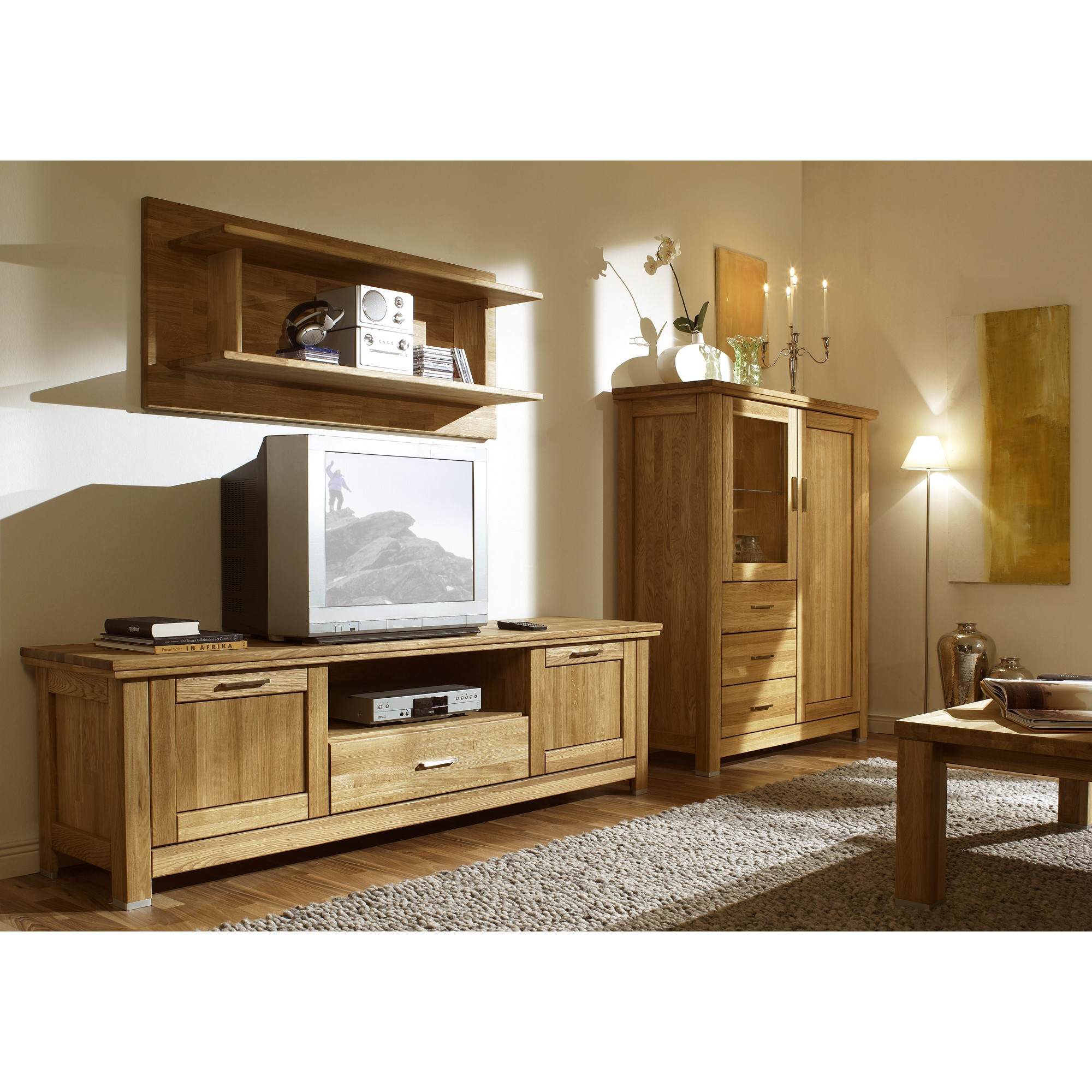 Massivholzmöbel Eiche Wohnzimmer TV-Kommode und Vitrinenset
