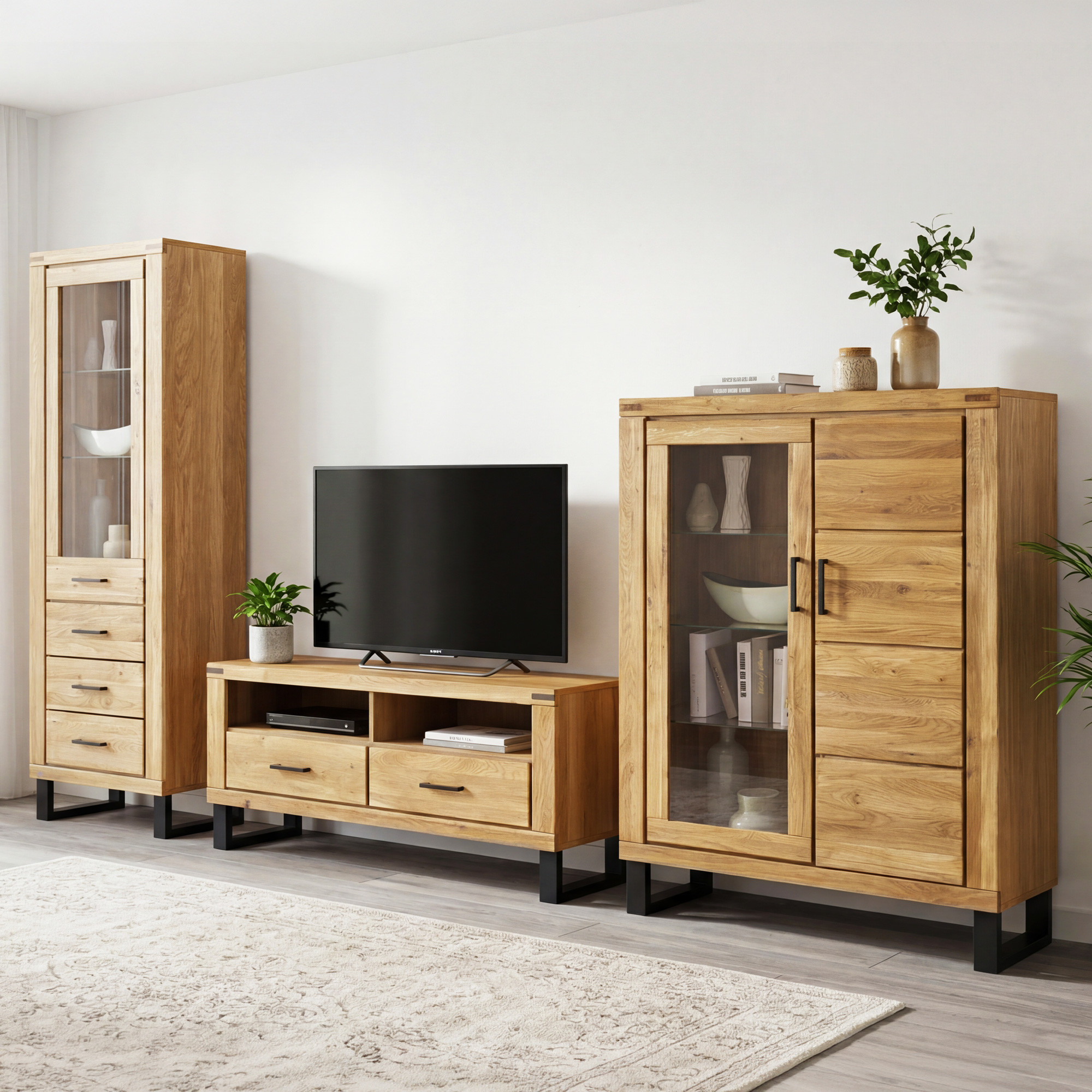 Eichenmöbel Wohnzimmer Set Martina Massivholz Vitrine natur