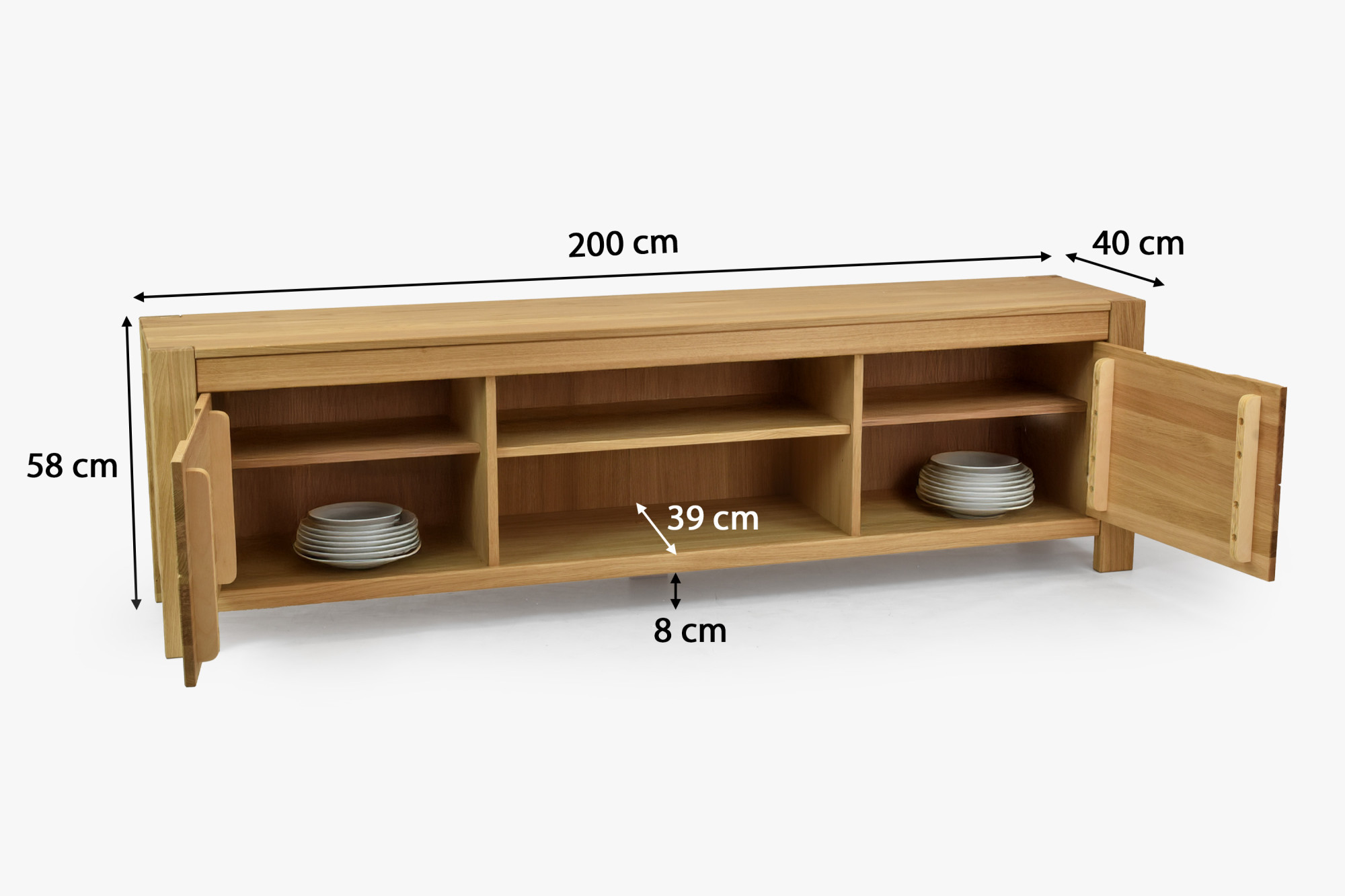TV-Kommode 200 × 58 × 40 cm – 3 Schubladen + 3 Türen mit Regalen