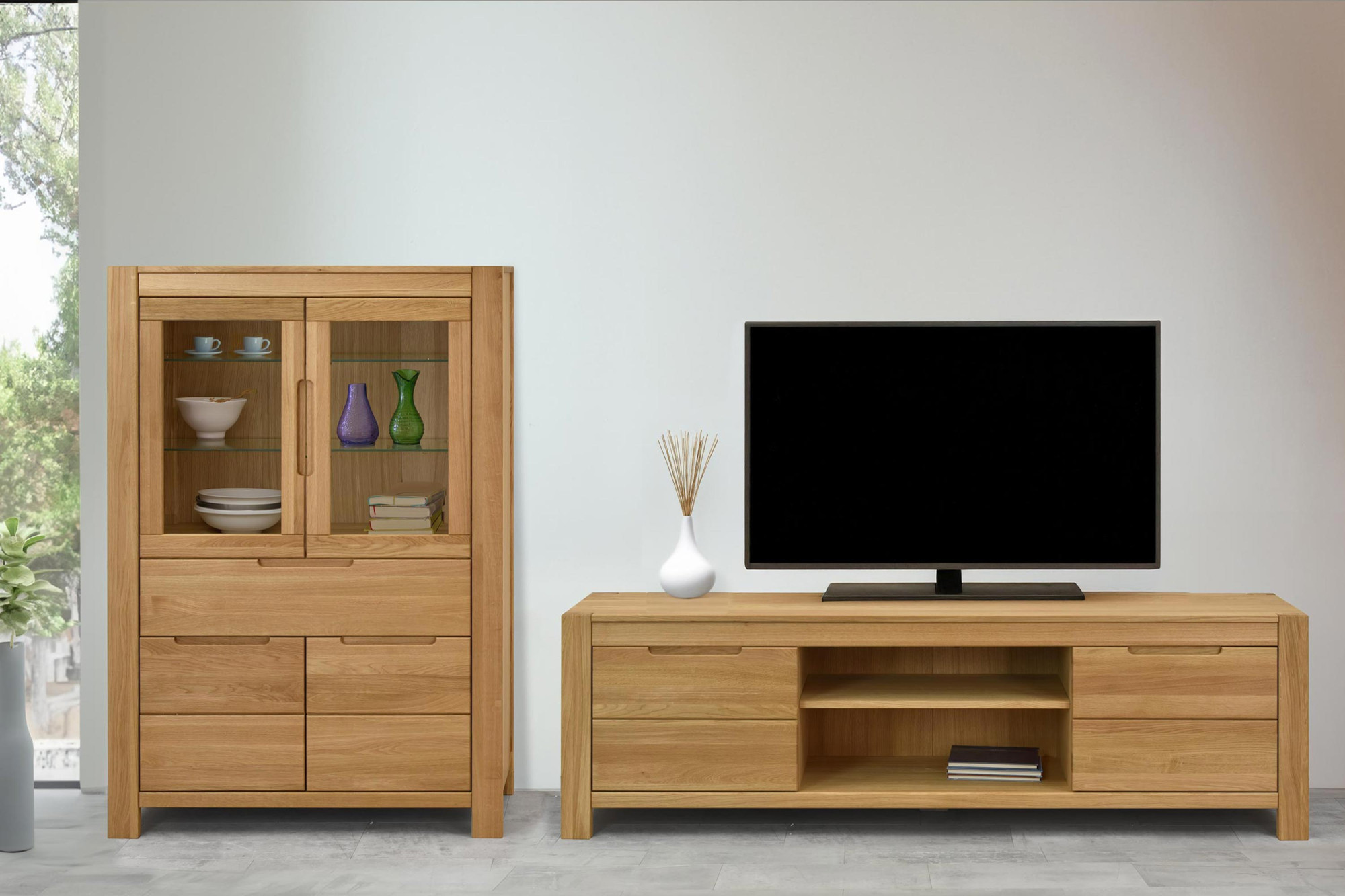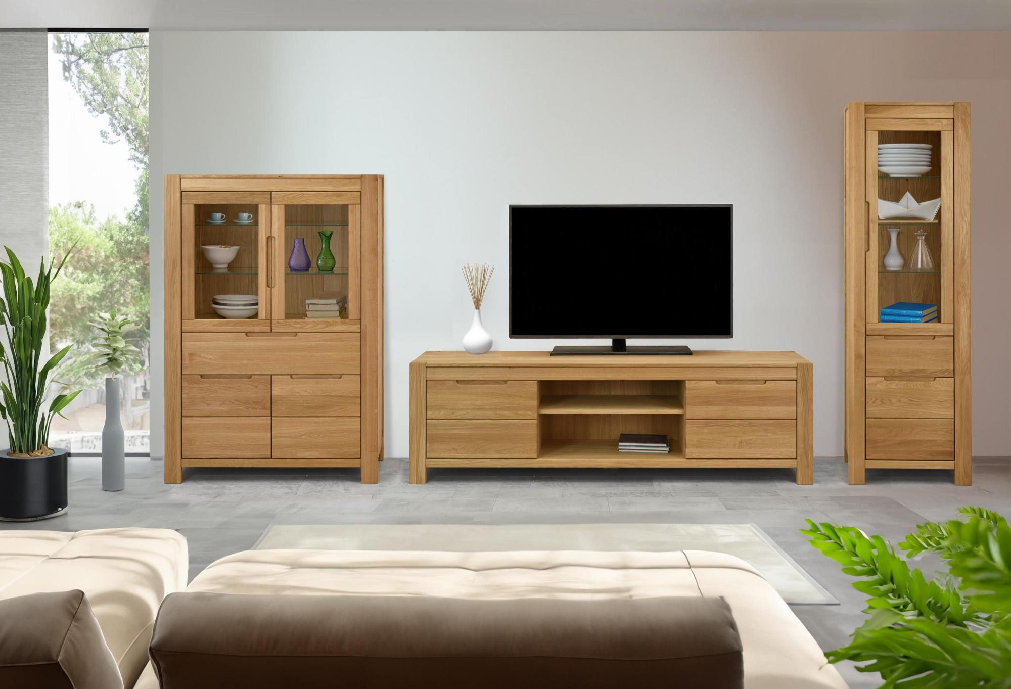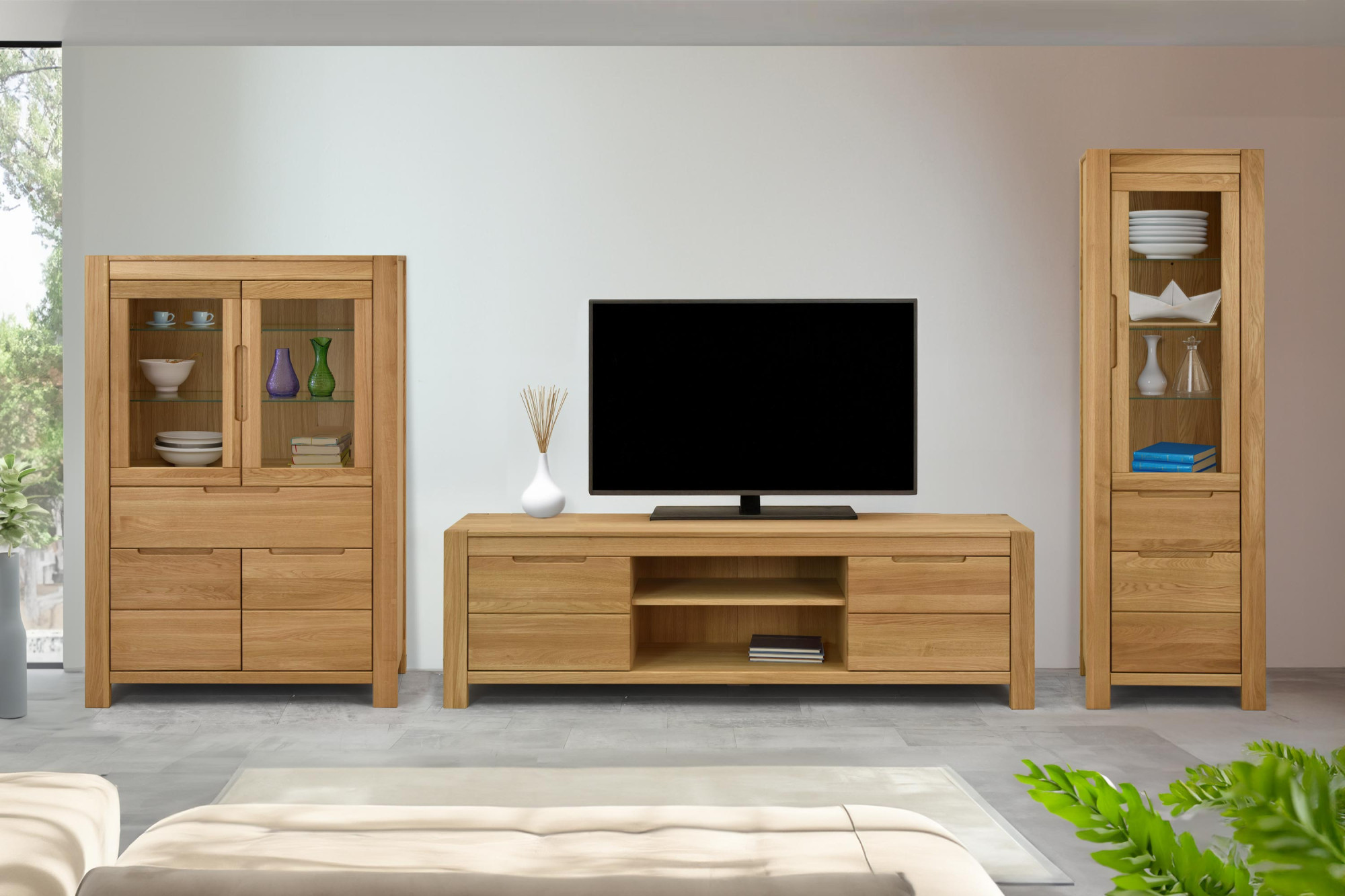 Massive Eiche TV-Kommode & Vitrine Wohnzimmer Set naturholz